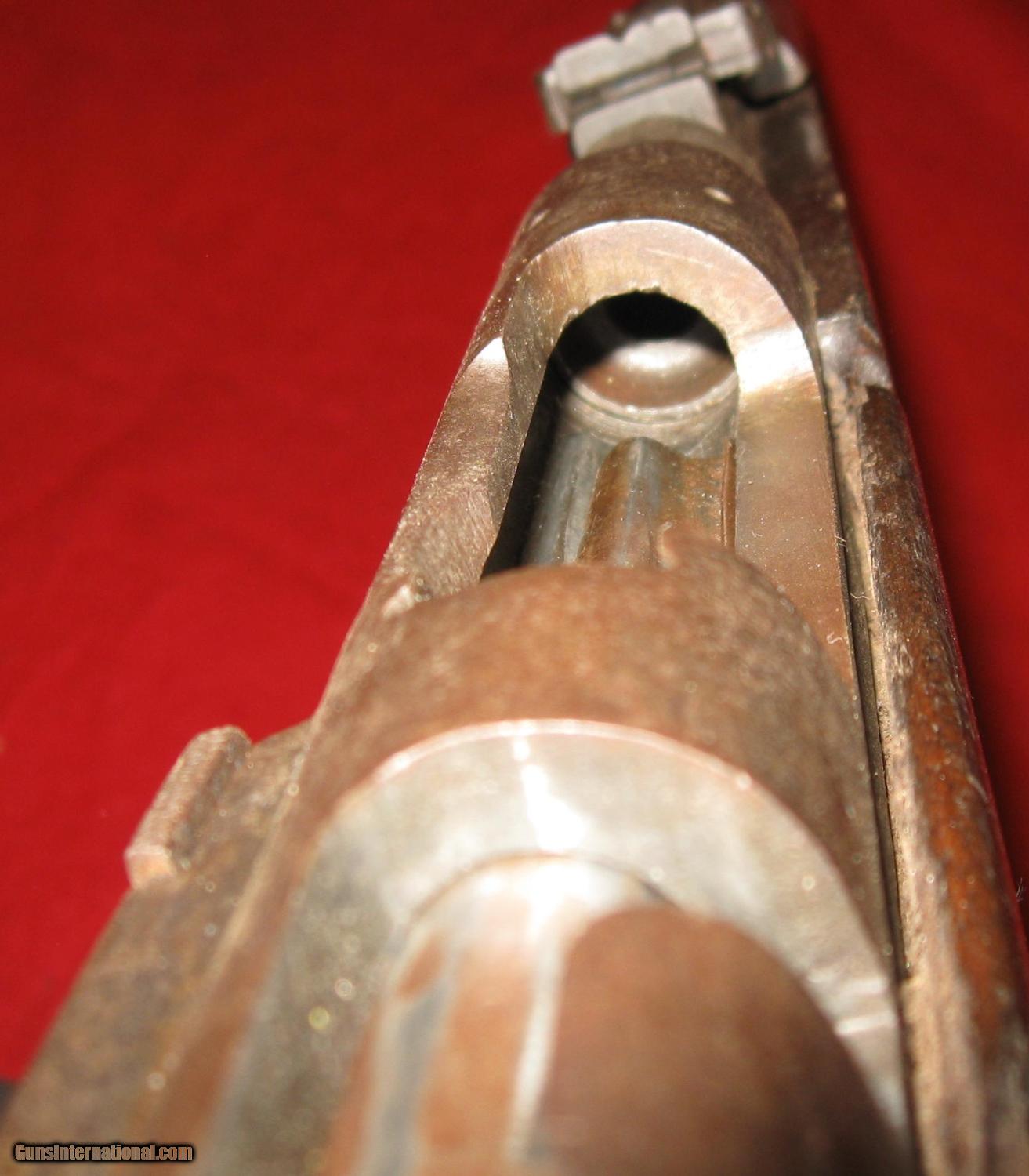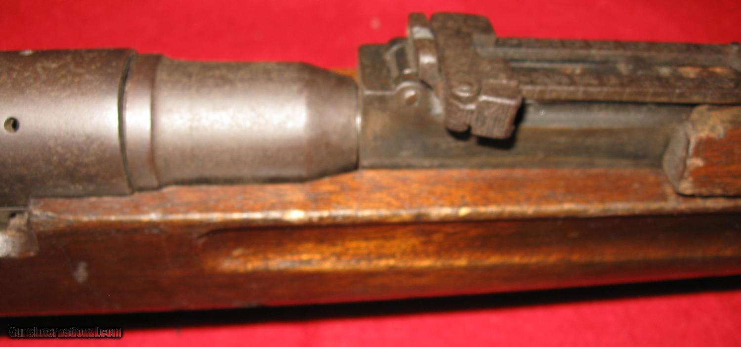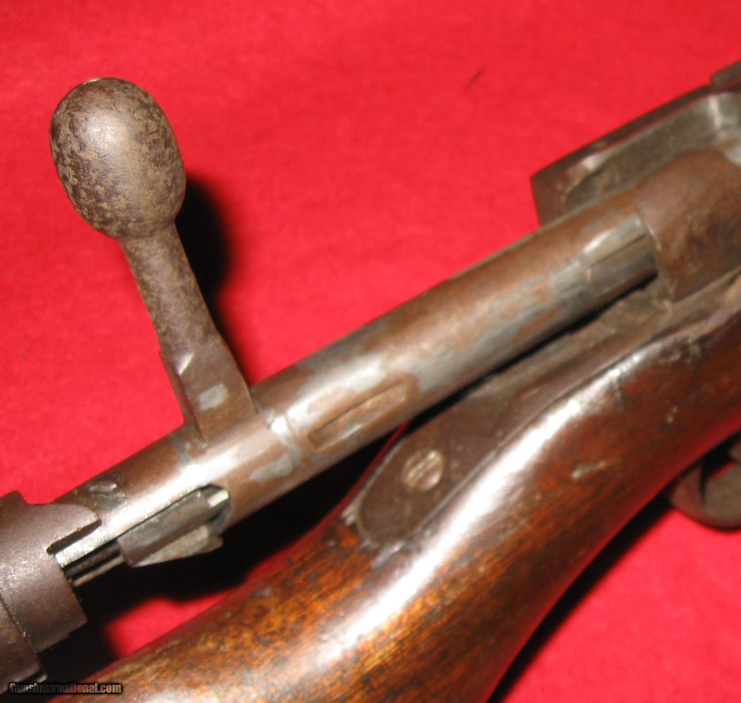 Description: sale pending-g.g.-THIS RIFLE IS A JAPANESE TRAINING RIFLE THAT WAS BUILT TO FIRE SOME SORT OF BLANK. IT IS NOT RIFLED AND THE BARREL, BARREL ADAPTOR AND RECEIVER ASSEMBLY SCREWS TOGETHER LOOSELY. IT HAS 3 N 3 9 ? STAMPED ON THE RECEIVER ON THE LEFT SIDE. NOTE WHAT LOOKS LIKE A NAIL FOR THE FIRING PIN! IT'S MISSING THE CLEANING ROD AND FRONT RECEIVER MOUNT SCREW THAT HOLDS THE RECEIVER TO THE WOOD. (ABOUT AN 8-32). IT HAS A LARGE 5 POINTED STAR ON THE RECEIVER BRIDGE. ALL THE PARTS ARE THERE AND THE ACTION CYCLES AND FIRES AND SAFES LIKE THE REAL THING. THE SIGHT IS ORIGINAL BUT LOOSE AS A GOOSE BUT PERHAPS TIGHTENS UP WITH A RECEIVER ATTACHMENT SCREW. THERE MUST HAVE BEEN SOME SHORT BLANK CARTRIDGE THAT WORKED IN IT BECAUSE ANY REAL AMMO WOULD BLOW IT UP! SO, THIS ONE IS NOT FOR SHOOTING ANYTHING AND CAN BE MAILED DIRECT TO YOU AT ACTUAL COST USPS PRIORITY OR PARCEL POST FIGURED AFTER SALE SOLD Manufacturer: JAPANESE Model: TRAINER Serial Number: 3 N 3 9 ? Condition: GOOD Metal Condition: GOOD Wood Condition: GOOD Bore Condition: SMOOTHBORE FOR BLANK FIRING Barrel Type: 31" ROUND Action: BOLT Butt Pad: ORIGINAL Finish: BLUE GONE BROWN /LIGHT RUST Sights: ORIGINAL LOOSE! Manufacture Date: ? Item Location: RI |