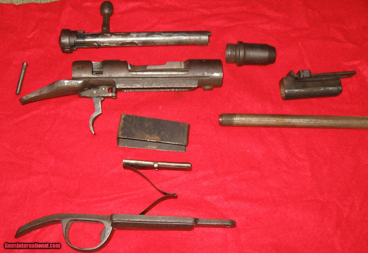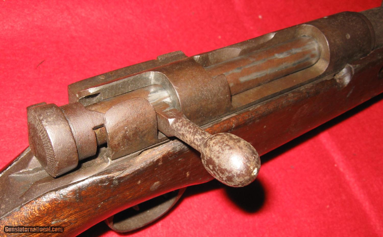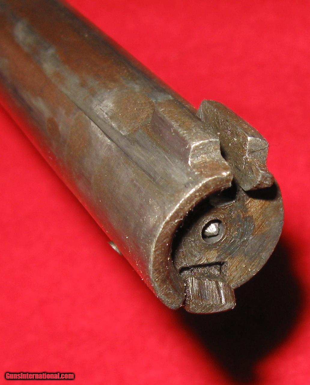 Description: sale pending-g.g.-THIS RIFLE IS A JAPANESE TRAINING RIFLE THAT WAS BUILT TO FIRE SOME SORT OF BLANK. IT IS NOT RIFLED AND THE BARREL, BARREL ADAPTOR AND RECEIVER ASSEMBLY SCREWS TOGETHER LOOSELY. IT HAS 3 N 3 9 ? STAMPED ON THE RECEIVER ON THE LEFT SIDE. NOTE WHAT LOOKS LIKE A NAIL FOR THE FIRING PIN! IT'S MISSING THE CLEANING ROD AND FRONT RECEIVER MOUNT SCREW THAT HOLDS THE RECEIVER TO THE WOOD. (ABOUT AN 8-32). IT HAS A LARGE 5 POINTED STAR ON THE RECEIVER BRIDGE. ALL THE PARTS ARE THERE AND THE ACTION CYCLES AND FIRES AND SAFES LIKE THE REAL THING. THE SIGHT IS ORIGINAL BUT LOOSE AS A GOOSE BUT PERHAPS TIGHTENS UP WITH A RECEIVER ATTACHMENT SCREW. THERE MUST HAVE BEEN SOME SHORT BLANK CARTRIDGE THAT WORKED IN IT BECAUSE ANY REAL AMMO WOULD BLOW IT UP! SO, THIS ONE IS NOT FOR SHOOTING ANYTHING AND CAN BE MAILED DIRECT TO YOU AT ACTUAL COST USPS PRIORITY OR PARCEL POST FIGURED AFTER SALE SOLD Manufacturer: JAPANESE Model: TRAINER Serial Number: 3 N 3 9 ? Condition: GOOD Metal Condition: GOOD Wood Condition: GOOD Bore Condition: SMOOTHBORE FOR BLANK FIRING Barrel Type: 31" ROUND Action: BOLT Butt Pad: ORIGINAL Finish: BLUE GONE BROWN /LIGHT RUST Sights: ORIGINAL LOOSE! Manufacture Date: ? Item Location: RI |