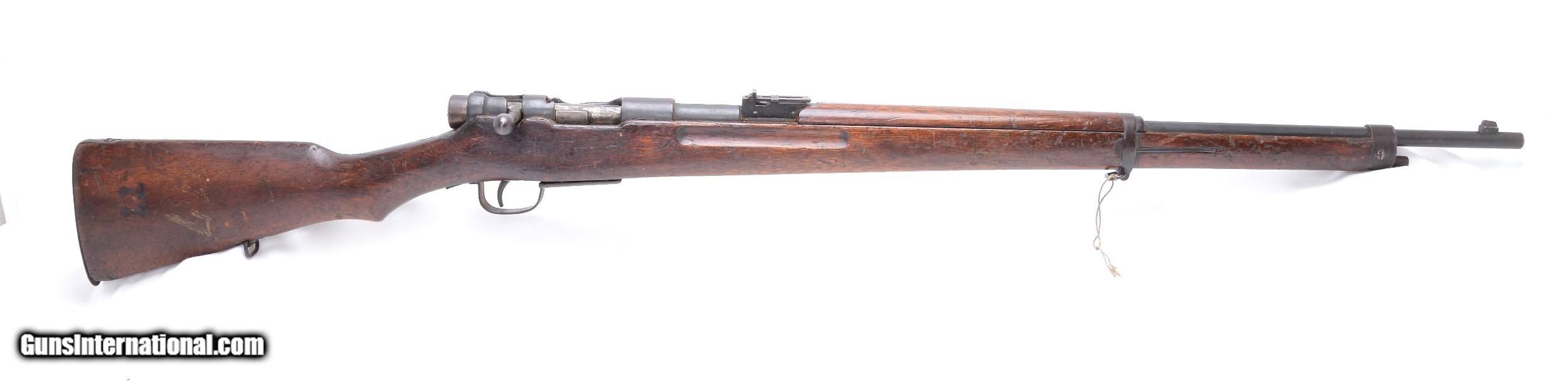 Description: Japanese smooth bore training rifle circa World War II. Smooth bore, bolt action trainer. Number 77 stamped in the stock match the “77” on the receiver. Otherwise I have not identified the stamped marking on the receiver! Overall good condition. SN: 23985 SOLD |