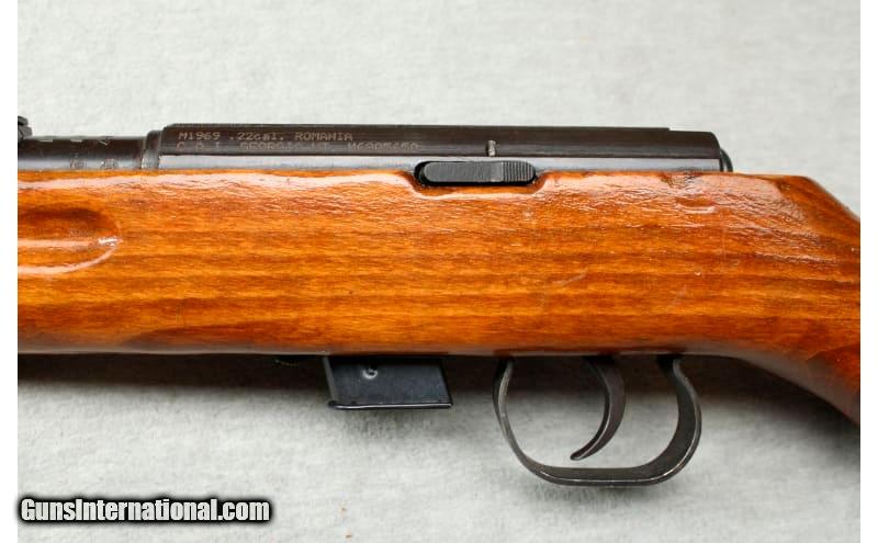 Description: Romanian made M1969 Trainer bolt action, rimfire rifle. Comes with one magazine. 23" barrel. Finish is nice showing normal wear. .22 Long Rifle SOLD Metal Condition: good Wood Condition: good Bore Condition: bright Barrels: 23" barrel Stock Dimensions: 14 Fore End: smooth wood Butt Pad: metal Weight: 5 lb - 10 oz. Sights: factory sights Item Location: La Vista, NE |