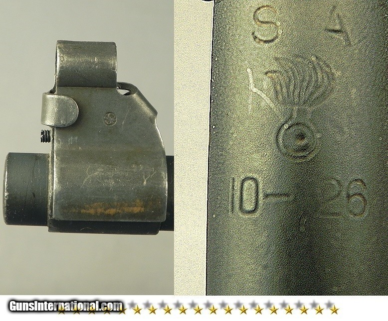 Description: #9932B, Springfield Armory 22 Long Rifle Model M1922MI.I, A Cadet Training 22 Long Rifle that was designed to mimic the M1903 Springfield for training purposes, The receiver shows a second “I” stamped next to the original “M I”, The serial number has the letter “B” added as a suffix indicating Armory rework or upgrade, All bolt markings have the improved M 2 markings, The 24 1/2" barrel is marked “S A 10 - 26” for Springfield Armory October 1926, It started life as a M-I and that the Armory upgraded it to the M-II configuration, 5-round box magazine fitted flush with the bottom of the floorplate, The receiver sight is the Lyman No. 48C and the usual military blade front sight, Walnut stock with “S. A. R.” in a square on left side of butt and “P” in a circle on the front of the pistol grip, A very course checkered steel butt plate without a trapdoor, 13 1/4" LOP, 9 lbs. 9 oz., Band front sight is that ramped with a hood, Finger groove sporter stock, Sling swivel studs with a proper type sling, Bore is bright with strong rifling, This gun remains original and is in very nice overall condition without any refinish work done on the metal or wood. SOLD Rifle Caliber: .22 Long Rifle |