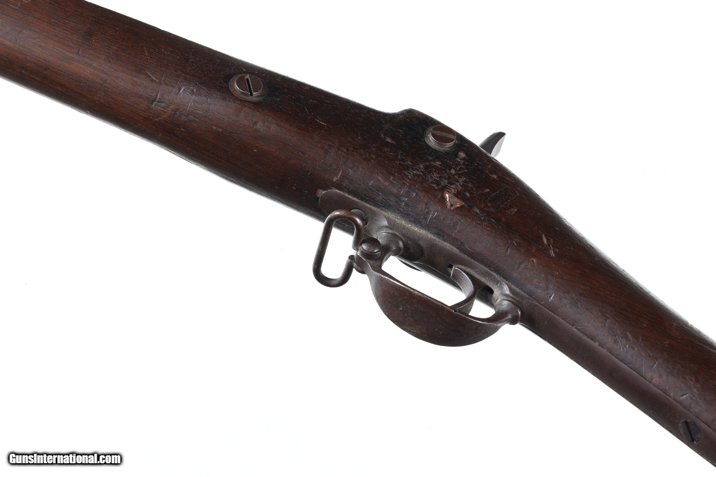 Description: Good plus overall condition with numerous handling marks with partial wooden barrel. Non Firing, functioning lock, bayonet trainer with wooden barrel replacement and 1864 dated Springfield lock. • Free Shipping, No Credit Card Fees. • Lay-a-way available for this firearm. • 1/3 Down, a 1/3 in 30 Days 1/3 in 60 Days. SOLD Antique: Yes Manufacturer: U.S. Model: Training Serial Number: NSN Barrel Length: 27 |