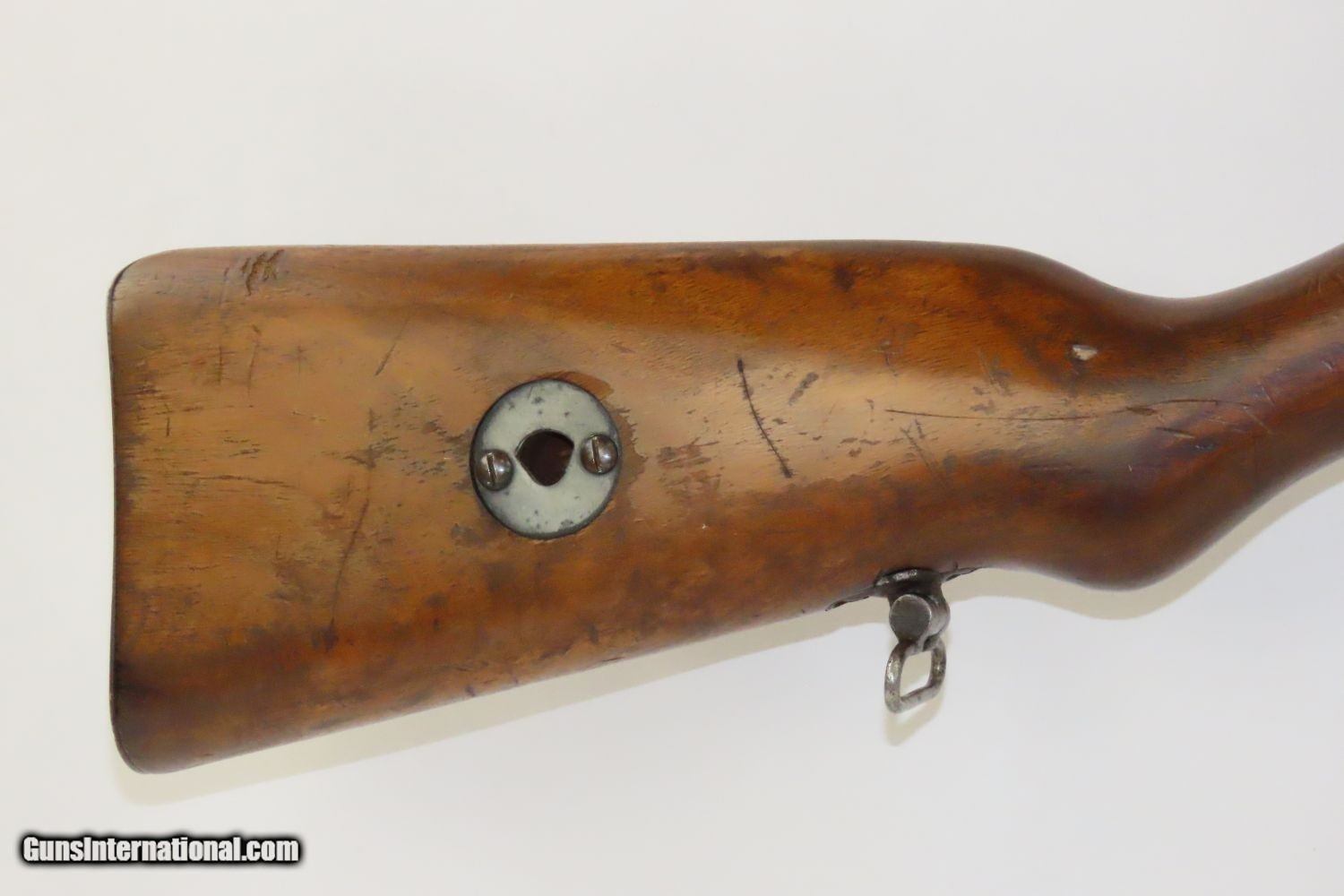 Description: WW2 German TRAINER for K98 by ERMA ERFURT SINGLE SHOT .22 LR Bolt Rifle C&R Fantastic Target Rifle for Training Marksmen & Soldiers Here we present a German Erma Erfurt Single Shot .22 LR Training Rifle from Erma Gewehrfabrik made circa the 1930s in Erfurt, Germany. Target shooting clubs were popular long before the Great War and their existence aided the Third Reich in preparing for the Second World War. There were limitations on military arms so .22 rimfire arms were the answer. This is a rifle that basically duplicates the handling of a Mauser k98. The Erfurter Maschinenfabrik (ERMA) was a German weapons manufacturer founded in 1922 by Berthold Geipel. Prior to and during World War II it manufactured many firearms, including the Karabiner 98k, the MP40 and other submachine guns. It is also noted for having produced several forms of military training rifles, including the famous EL 24 subcaliber "Barrel Insert" training devices that allowed .22 long rifle ammunition to be fired from infantry rifles such as the Karabiner 98 and Steyr-Mannlicher M1895 through use of a special action conversion kit and a thin-walled .22 caliber barrel inserted within the larger rifle's bore. The overall condition is nearing fine. Fine original blued finish. The action is robust with a smooth bolt pull. Very nice target trigger. This example has maintained a bright bore with sharp rifling. The stock is sturdy. There is a duffel cut under the barrel band and no import marks, signs of a WWII GI bringback. The leather sling is in good shape and clearly very old. This is a wonderful rifle and an awesome piece to add to your World War collection and arsenal! This firearm is classified as a Curio & Relic. Barrel is 27 inches. Caliber: .22 Long Rifle Overall condition as seen in photos. Very Fast. Very Safe. FREE SHIPPING. Will need to be sent to your local FFL or C&R licensee. This firearm is classified as a Curio & Relic. Guaranteed AUTHENTIC & Includes CERTIFICATE OF AUTHENTICITY. ancestryguns $2325 #201147 SOLD Curio/Relic: Yes |