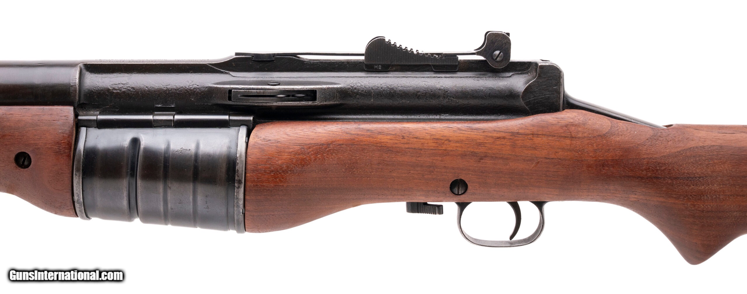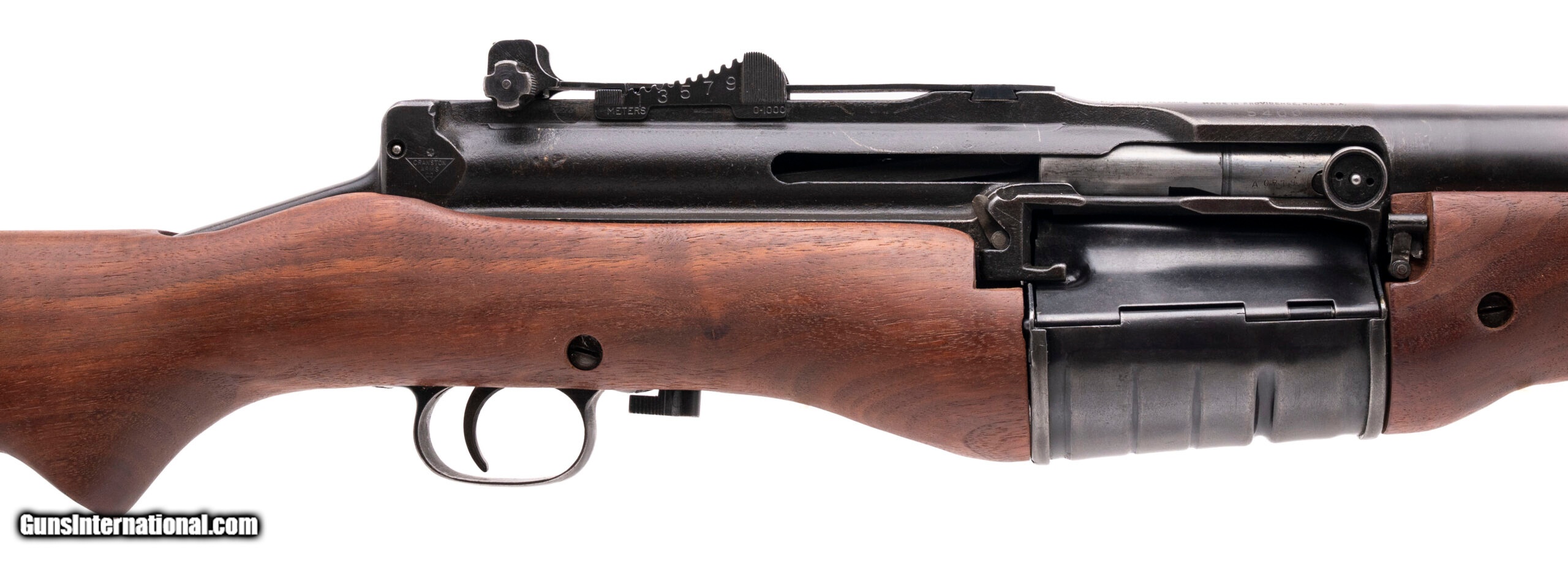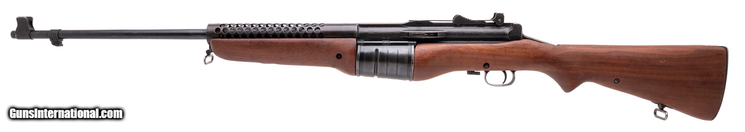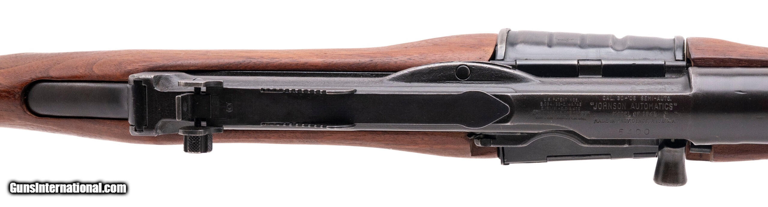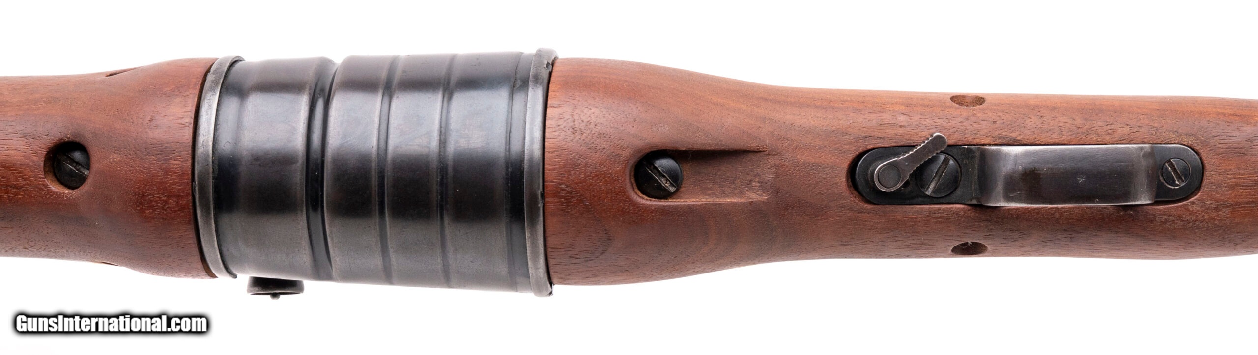 Description: "Serial No. 5400. Made by Cranston Arms in 1941 with a 22-inch barrel chambered for the .30-06 cartridge. Bore is bright with strong rifling & there is a sharp crown at the muzzle. Overall condition of the metallic parts is excellent & the action functions as it should, but the wood furniture is a new-made reproduction stock set. This rifle was made for the Netherlands Purchasing Commission, so the rear sight assembly is graduated in meters. Action is smooth and functions correctly. SOLD Curio/Relic: Yes |