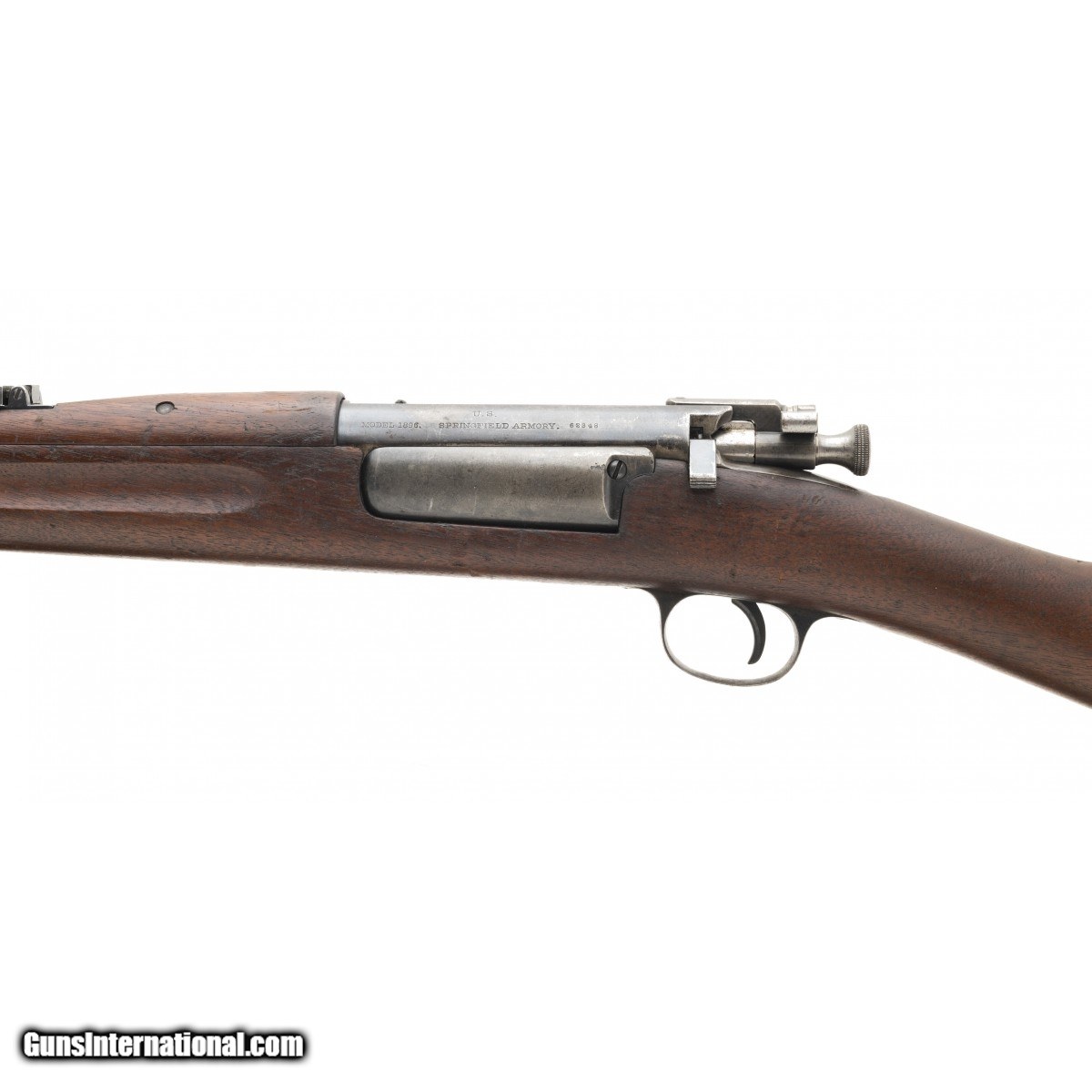 Description: " This is a standard US Model 1896 Krag rifle in good condition. The 30"" round 30US (30-40 Krag) caliber barrel has an excellent bore. The barrel is blue-brown with wear at the muzzle where a bayonet was fitted. It is equipped with the Model 1896 rear sight. The receiver has the U.S. Springfield Armory, Model 1896, and serial number, 62348. It is a mixture of blue and brown. The stock is very good with no cracks or chips and light wear. The butt plate has a rough rusted area. It is equipped with a US Model 1907 sling. The action functions correctly. This is a good example of a gun that most likely saw service in either Cuba or the Philippines. SOLD Curio/Relic: Yes |