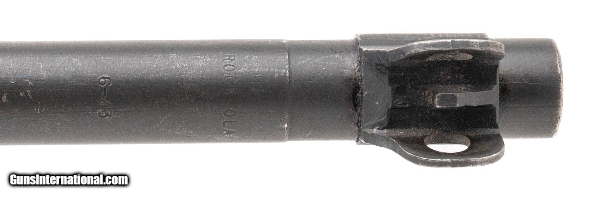 Description: "Serial No. 575933, made June–July 1943, .30 Carbine, 18" round barrel marked “ROCK-OLA / 6-43", confirming correct wartime production. This rifle is a scarce example of one of approximately 1,900 receivers originally produced by Inland and transferred to Rock-Ola, who then marked over the Inland name and stamped their own. The receiver is marked “INLAND" with a line-out, followed by “575933 / ROCK-OLA", a clear indicator of this inter-factory receiver transfer, which occurred to keep Rock-Ola production on schedule. The recoil shield is also Rock-Ola marked. The carbine has undergone post-war arsenal upgrades, including a bayonet lug barrel band marked “SI", and retains the original flat bolt. Rear sight has been updated to a Type III adjustable sight, marked “i.r.c.o.". Stock is in very good condition, featuring the early “I"-cut sling slot, with light handling impressions. Inside the sling well is marked “RMC", denoting Rock-Ola production, and faint cartouches are also present. Action is smooth and functions correctly. Rifle comes with its original box and CMP paperwork. A highly collectible and increasingly hard-to-find Inland “line-out" Rock-Ola variant, representing one of the more unique production anomalies among WWII M1 Carbines. Consignment Curio/Relic: Yes Price: $3,500.00 Contact Seller |
