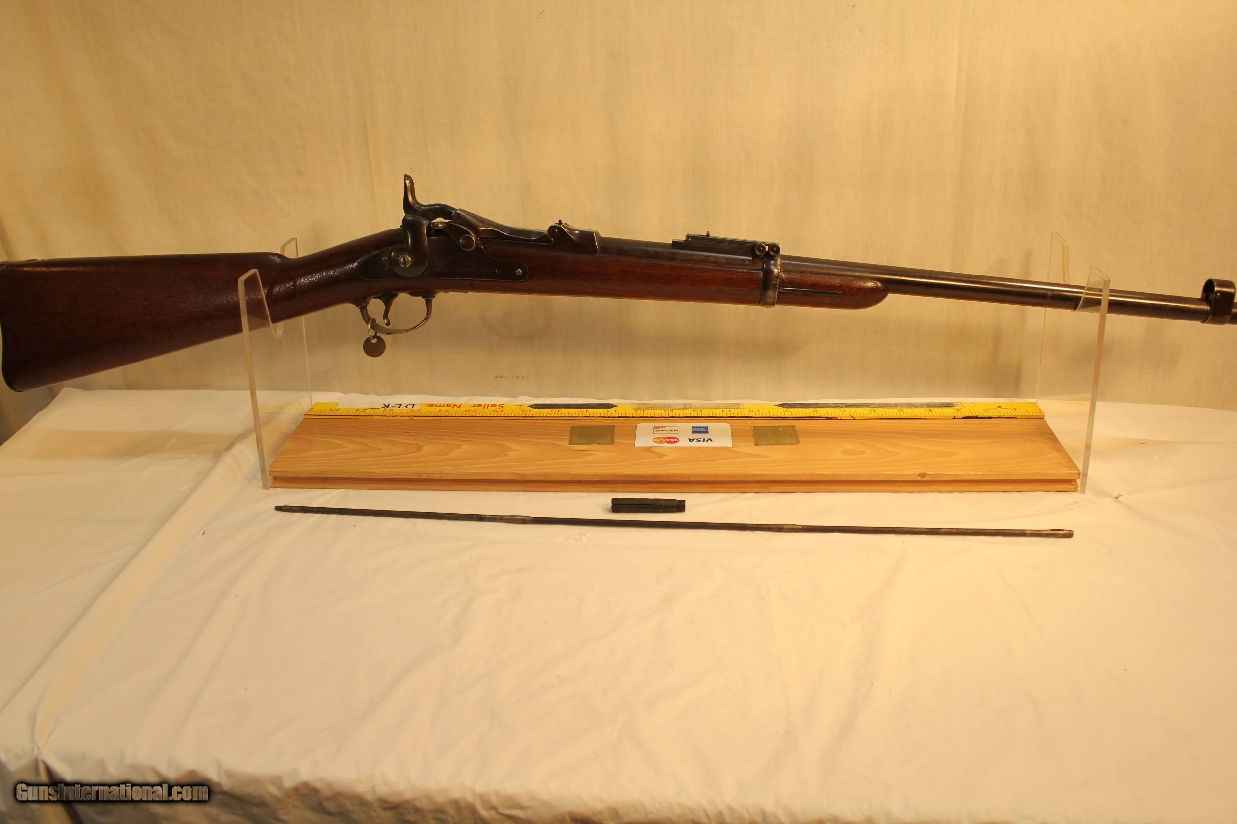 Description: A nice and unusual 1884 Springfield Trap Door Carbine with South Carolina Markings complete with the cleaning rod and ruptured cartridge extractor. It also has a hood on the front sight, something I have never seen before. It has a cartouche of 1877 indicating that the stock has been replaced sometime in the past. The bore is clean with strong rifling and is lightly oxidised without pitts. All parts appear to be correct. This gun is unusually clean and in very nice condition. Antique. No paperwork required. $50.00 Shipping via priority Mail. SOLD Antique: Yes |