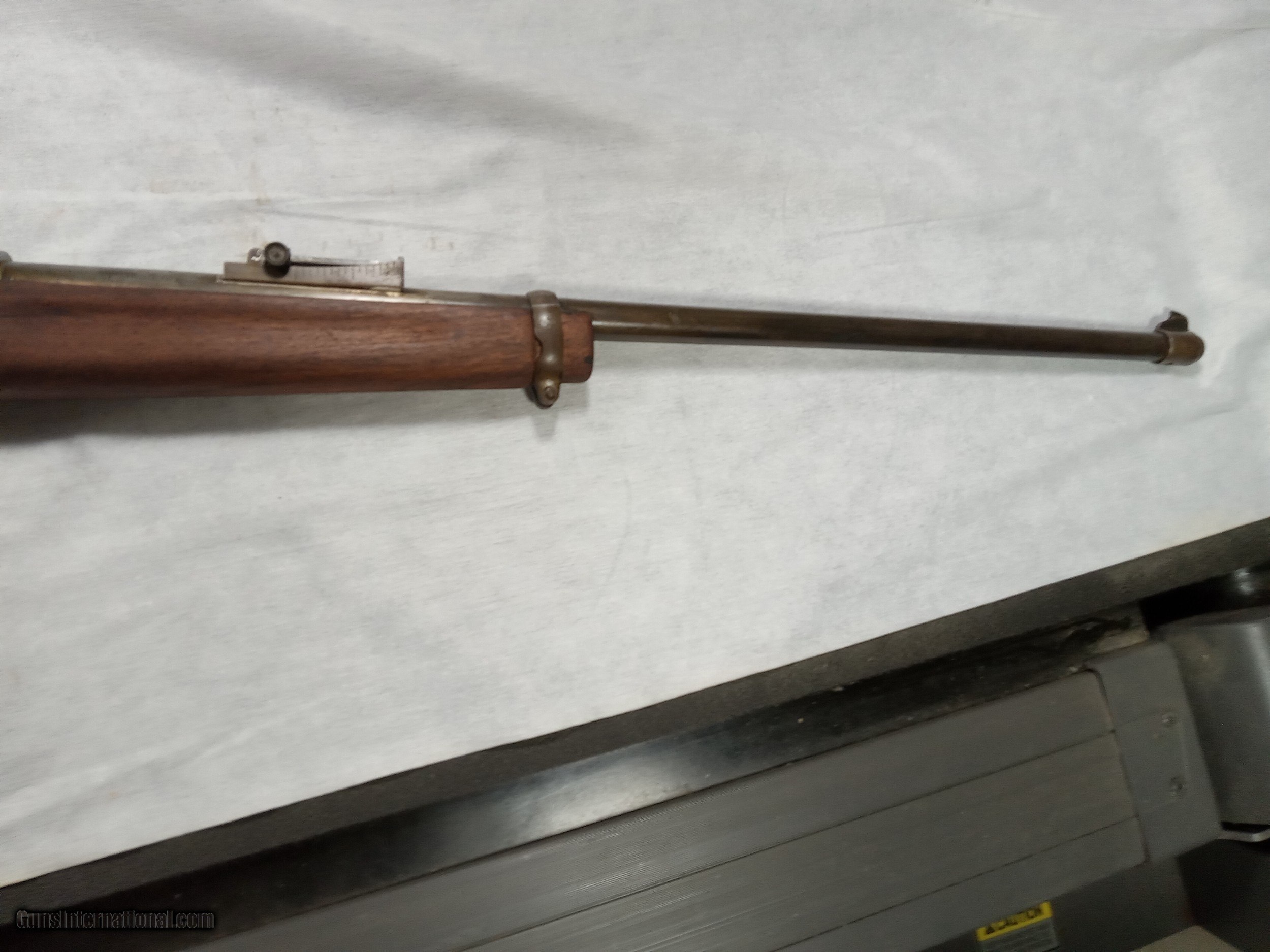 Description: krag carbine cal. 30-40 sn. 452010 this may be a cut down rifle barrel is 24 in bore is shinny rifling is thin bluing is about gone stock has a small crack see pictures 5 notches on reciver no cartouche 650 shipped SOLD |
