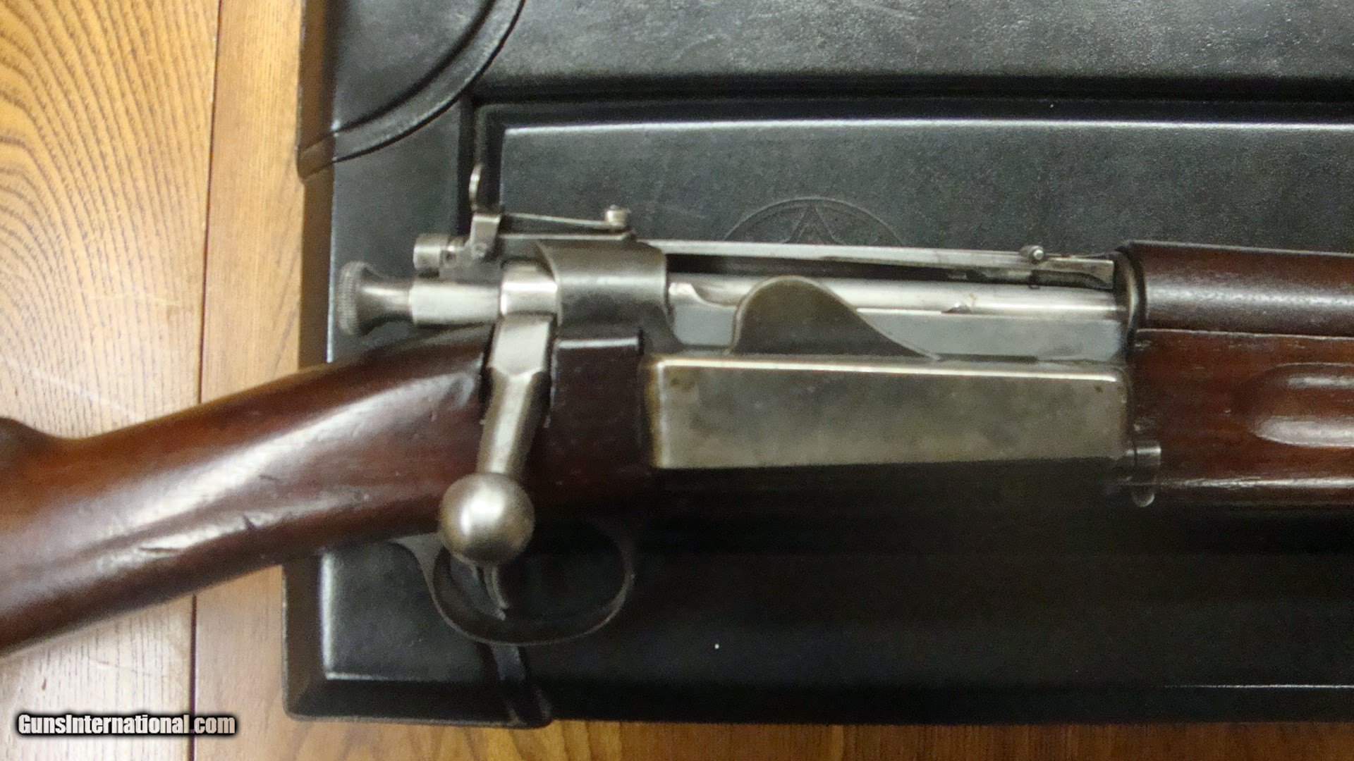 Description: 1899 US MARKED 30/40 KRAG CARBINE WITH LEROY RICE BOLT PEEP SIGHT EXCELLENT BORE NICE CLEAN RIFLE MARKINGS ON STOCK ARE CLEAR SOLD Curio/Relic: Yes |