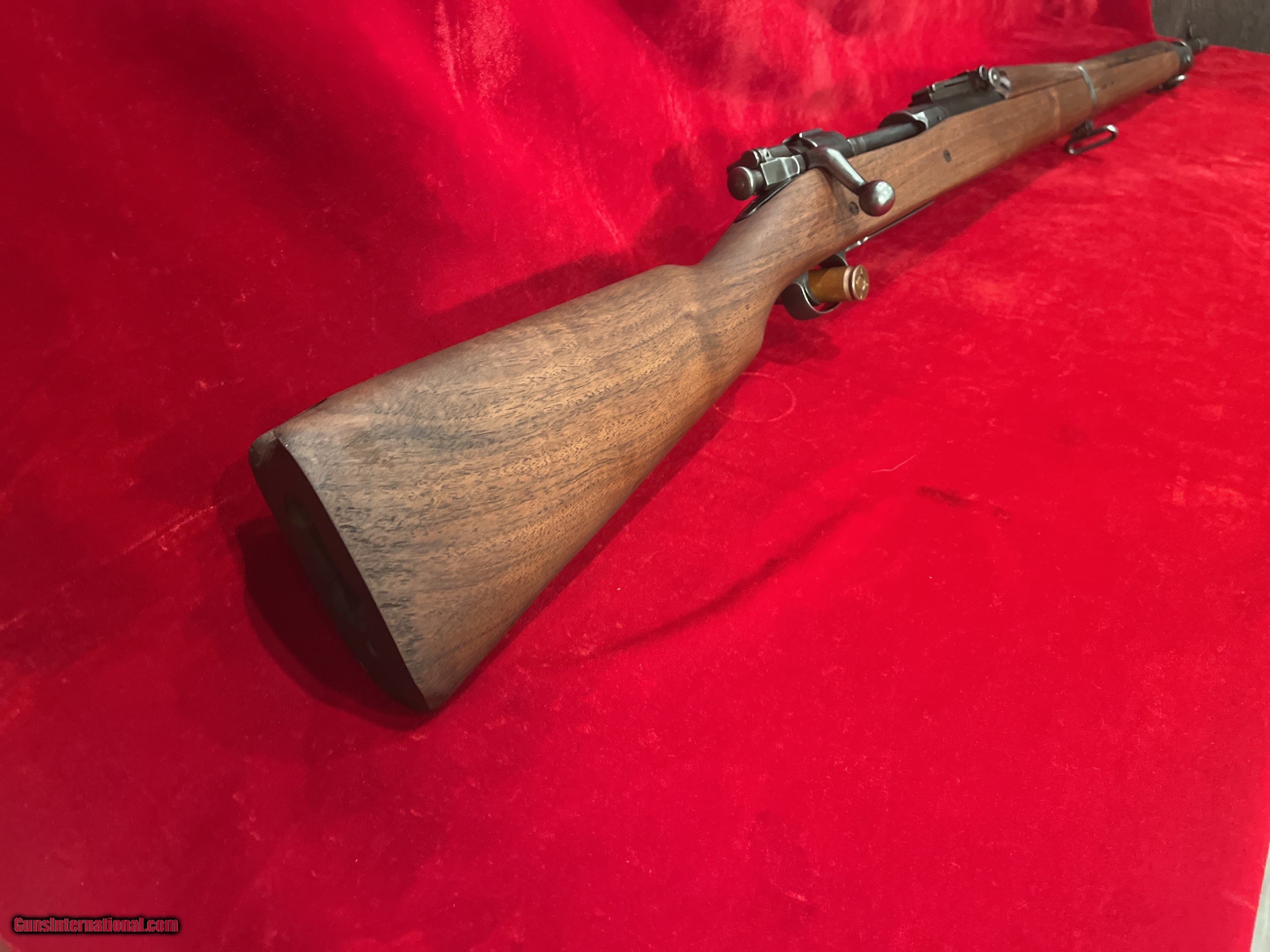 Description: Up for sale we have a very nice Rock Island Arsenal original WWI/II rifle in 30-06. Serial No. 330,XXX so well within the "safe range" for a functional firearm, appears to be arsenal rebuilt in 1944 with a new 7-44 dated barrel, .30-06, 24" round barrel dated 7-44 and SA with Flambing Bomb, Bore is excellent to mint with bright rifling visible. Sights are awesome. All there. Great original finish gun in excellent condition Stock is a new possibly Boyds or CMP replacement. Beautiful dark walnut yet to be stained. This rifle is missing the butt plate, band spring, and rear sling swivel. Appears to have been a project undergoing restoration that never quite got finished. Action functions correctly, nice WWII rework 1903! Shipping will be 60.00 for UPS ground with tracking. To purchase this firearm simply send me a message via GI with your contact info. I will respond via e-mail with all the information required to complete the purchase. If you must contact me via phone, please text. I work a full time job and its not in a gun store. Keep in mind I am on the West coast and if you call me at 4AM before I've had my coffee we will be off to a rough start. I am an FFL. I will provide my FFL with the shipped item. Total price is sales price plus shipping price plus insurance if desired (1.50 per 100 dollars declared value-optional but recommended) SOLD Curio/Relic: Yes |