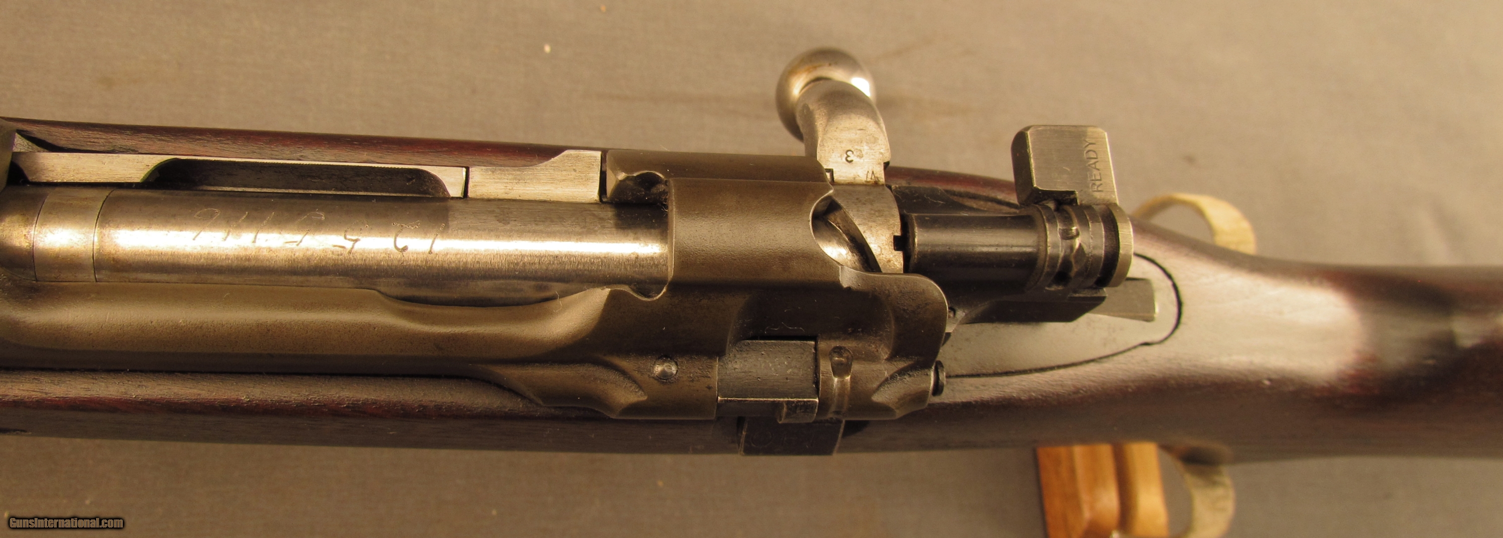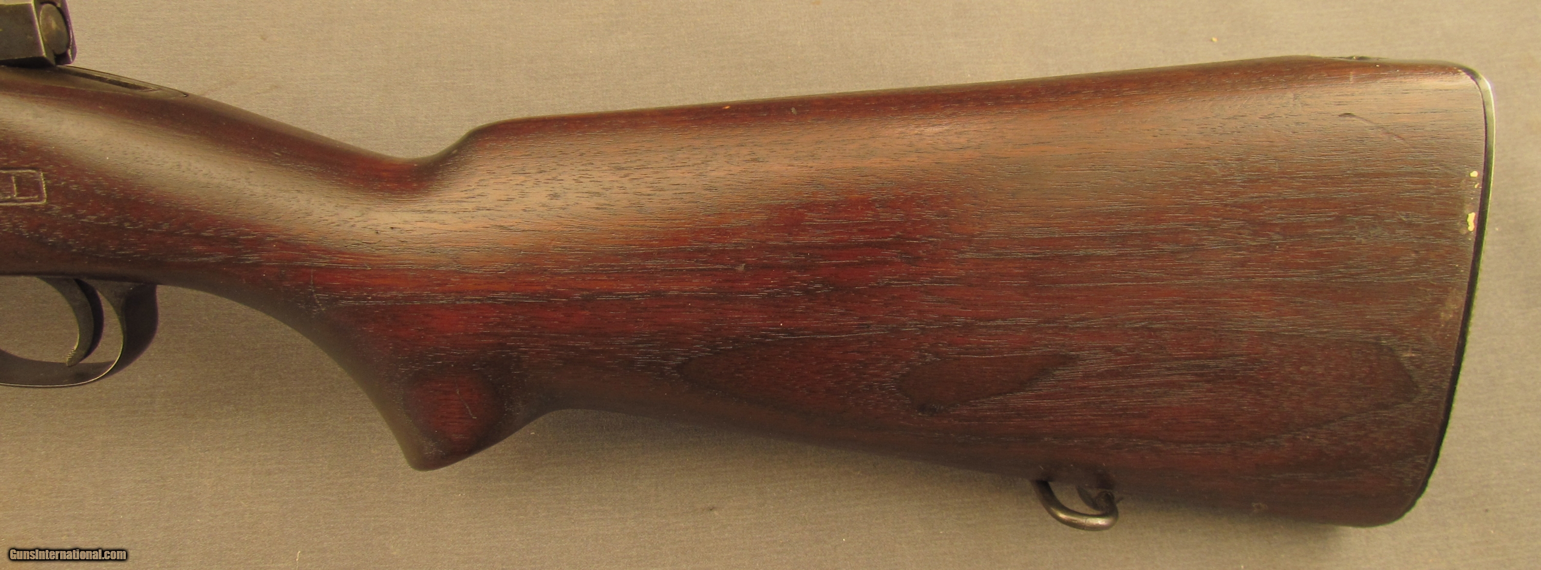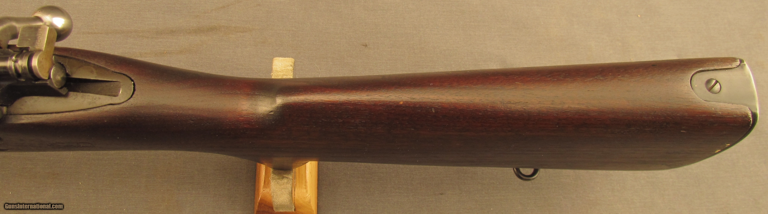 Description: Serial #1255116, .30-06, 24" Star Gauge barrel with an excellent, bright bore. This is a spectacular rifle that retains 98-99% of the original parkerized finish, and is fitted with the original, matching numbered, reversed safety and headless cocking-piece equipped bolt that still retains the original armory bright finish. The barrel has a crisp Star Gauge “turtle" mark on the muzzle, “SA/(flaming bomb)/4-29" behind the front sight base, and some very light silvering on the sides of the front sight base where the finish comes in contact with the brass P.J. O'Hare front sight protector. The rear sight likewise comes with a P.J. O'Hare hinged sheet-metal protector, and is outfitted with an oversized, knurled windage knob. The walnut stock has a few very minor handling marks scattered about the original oil finish, and both the “P (in circle)" proof and “D.A.L." cartouche are crisp and clear. The deeply checkered, NM buttplate is also in excellent condition with only some very minor silvering and some mild wear at the tips of the points. This is a simply splendid National Match rifle in correct 1929 Camp Perry specs, and would make a fabulous addition to any collection of high grade U.S. rifles. FFL or C&R SOLD Curio/Relic: Yes Manufacturer: Spfld Model: 1903 Serial Number: 1255116 Caliber Info: .30-06 Gauge Info: .30-06 |