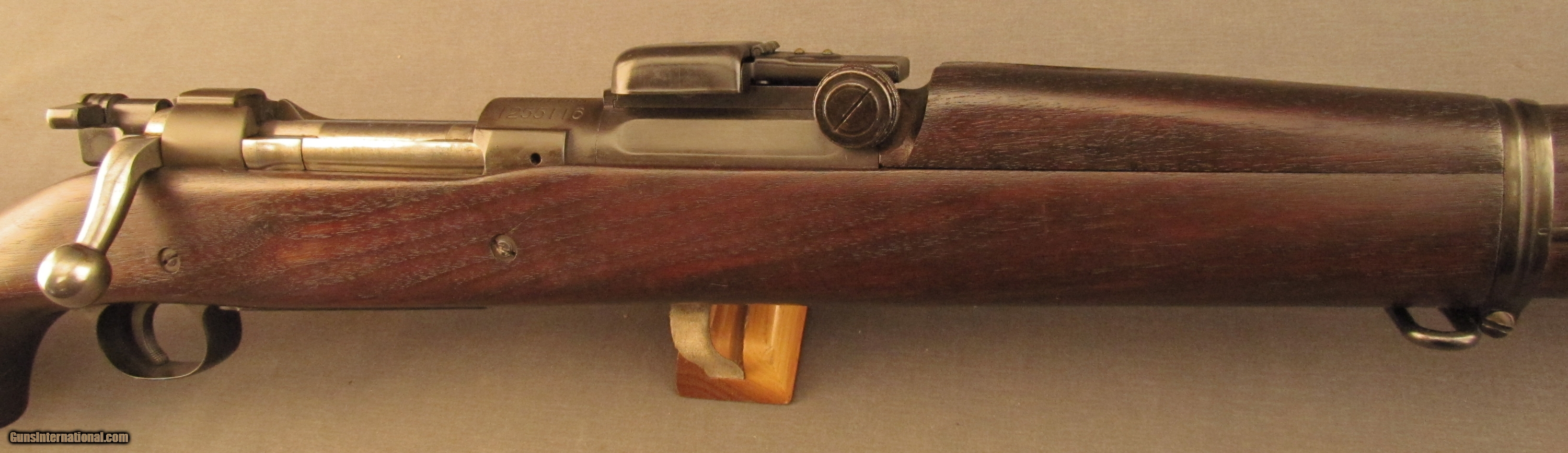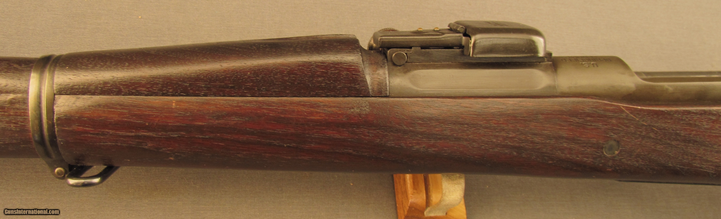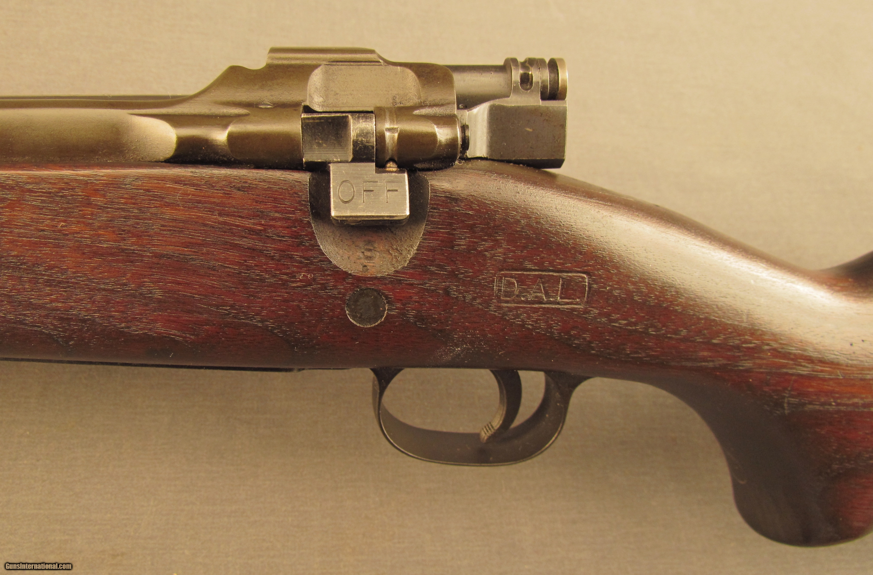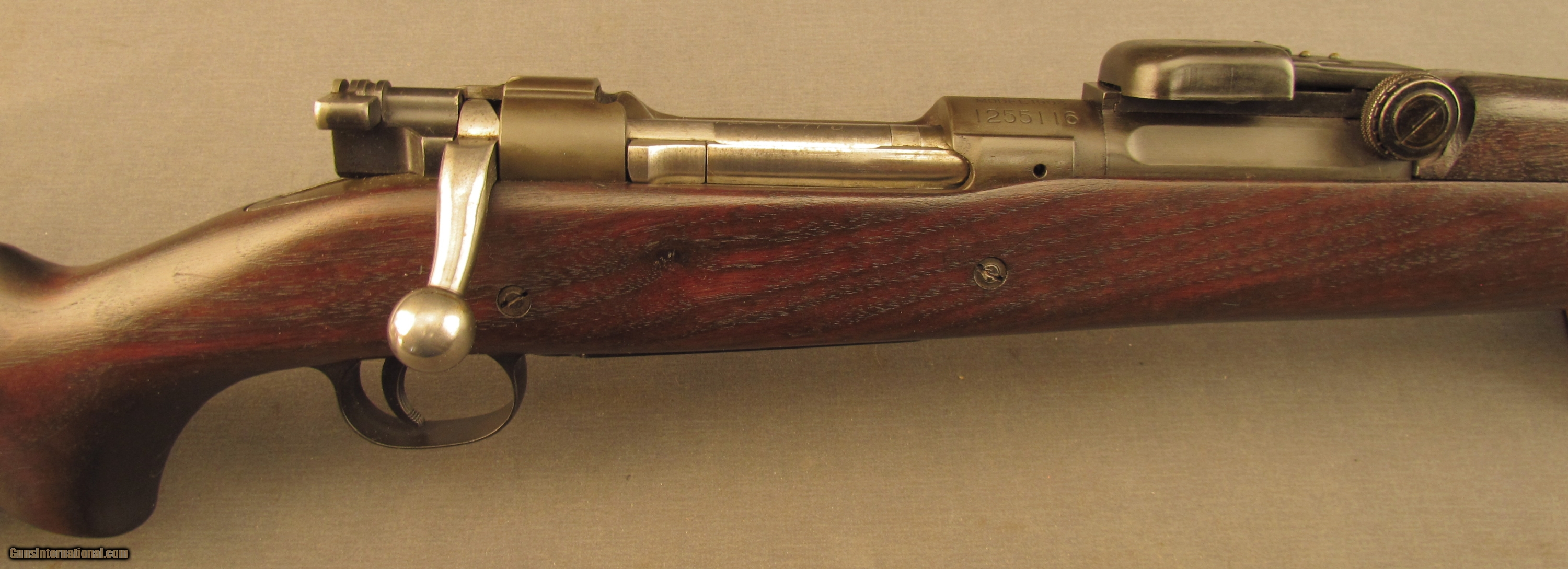 Description: Serial #1255116, .30-06, 24" Star Gauge barrel with an excellent, bright bore. This is a spectacular rifle that retains 98-99% of the original parkerized finish, and is fitted with the original, matching numbered, reversed safety and headless cocking-piece equipped bolt that still retains the original armory bright finish. The barrel has a crisp Star Gauge “turtle" mark on the muzzle, “SA/(flaming bomb)/4-29" behind the front sight base, and some very light silvering on the sides of the front sight base where the finish comes in contact with the brass P.J. O'Hare front sight protector. The rear sight likewise comes with a P.J. O'Hare hinged sheet-metal protector, and is outfitted with an oversized, knurled windage knob. The walnut stock has a few very minor handling marks scattered about the original oil finish, and both the “P (in circle)" proof and “D.A.L." cartouche are crisp and clear. The deeply checkered, NM buttplate is also in excellent condition with only some very minor silvering and some mild wear at the tips of the points. This is a simply splendid National Match rifle in correct 1929 Camp Perry specs, and would make a fabulous addition to any collection of high grade U.S. rifles. FFL or C&R SOLD Curio/Relic: Yes Manufacturer: Spfld Model: 1903 Serial Number: 1255116 Caliber Info: .30-06 Gauge Info: .30-06 |