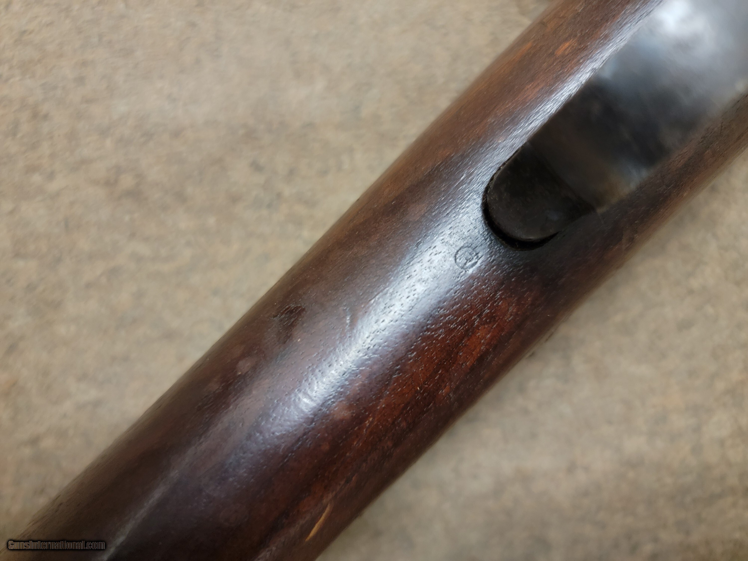 Description: From a 65 year old test gun collection, We present a, 1917, Remington Armory "NO. 3" receiver marked Mosan Nagant factory test gun. Also note a "1" factory testing mark stamped on top. Also a brass test #12 tack inbedded in the stock. Other factory testing modifications are obvious. The barrel is 25" long. The bore is mirror bright, with strong rifling. A rare Remington Military test gun for an advanced collecton. Layaway available Add 3%for CC payment C+R accepted from most states OR FFL required Questions: Mark. msbobbettkimbersinc Curio/Relic: Yes Price: $4,850.00 Buy Now Contact Seller |