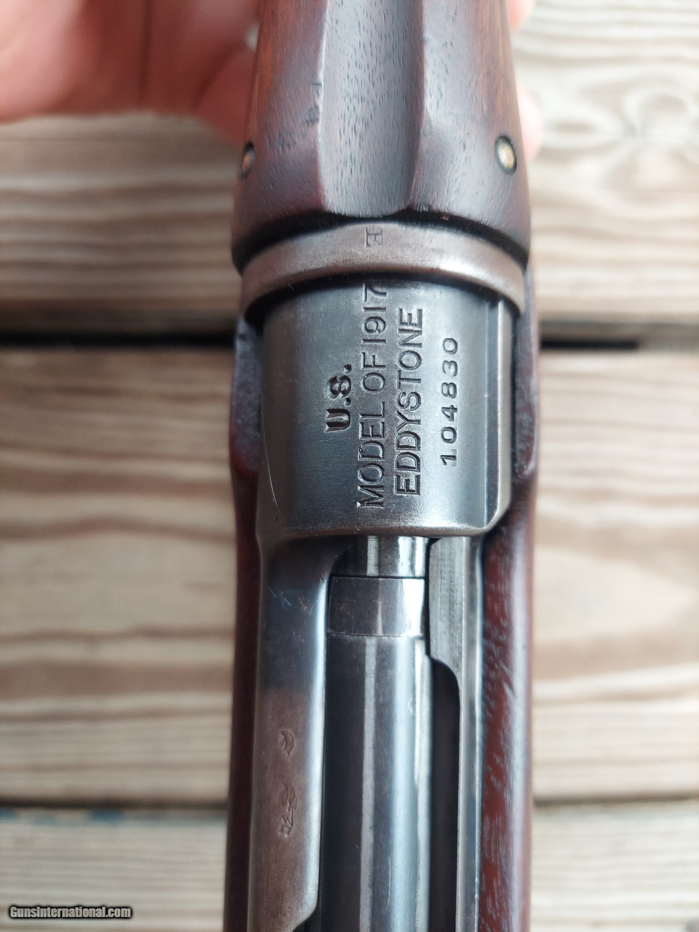 Description: I'm selling a nice condition US M1917 Eddystone. looks to be all original. Blued finish, E 10-17 barrel with strong rifling and shiny bore, all parts are marked with an E, E marked stock with no rebuild marks. Some oxidation on the barrel by marking/front sight. Comes with M1907 leather sling, Remington made 1917 bayonet/scabbard in excellent condition. Happy to send more pictures to serious buyers. Must ship to an FFL or C&R license. I accept usps money orders, personal/bank checks or some electronic payment methods. Asking $1550 shipped Curio/Relic: Yes Price: $1,550.00 Contact Seller |