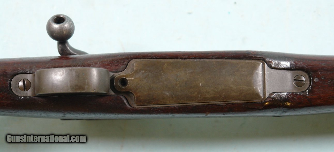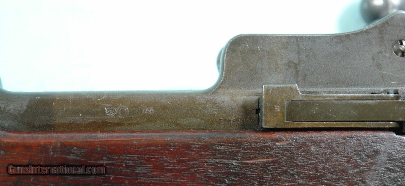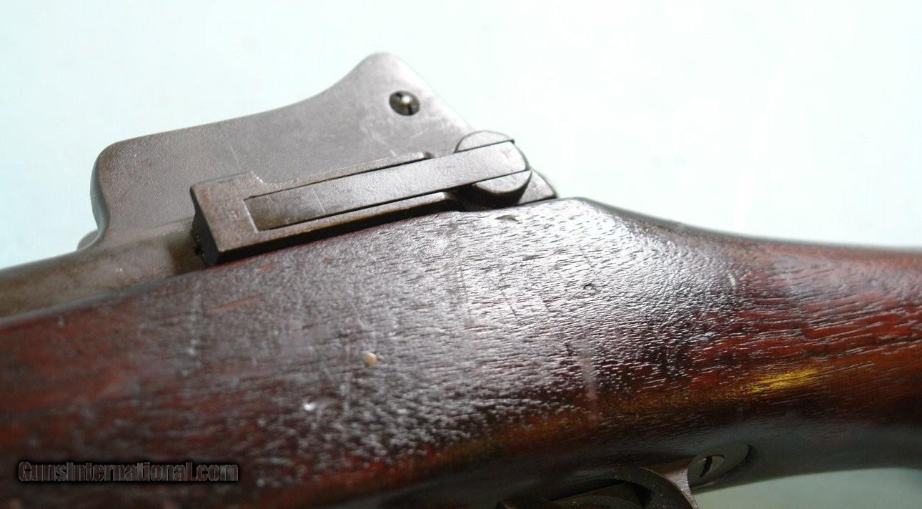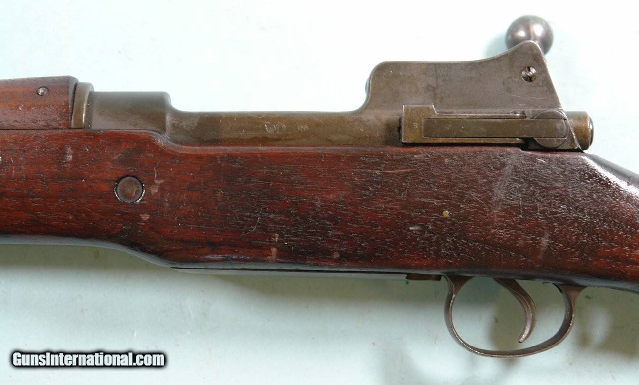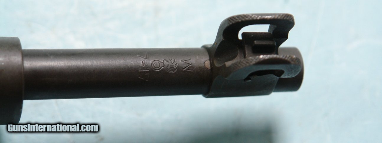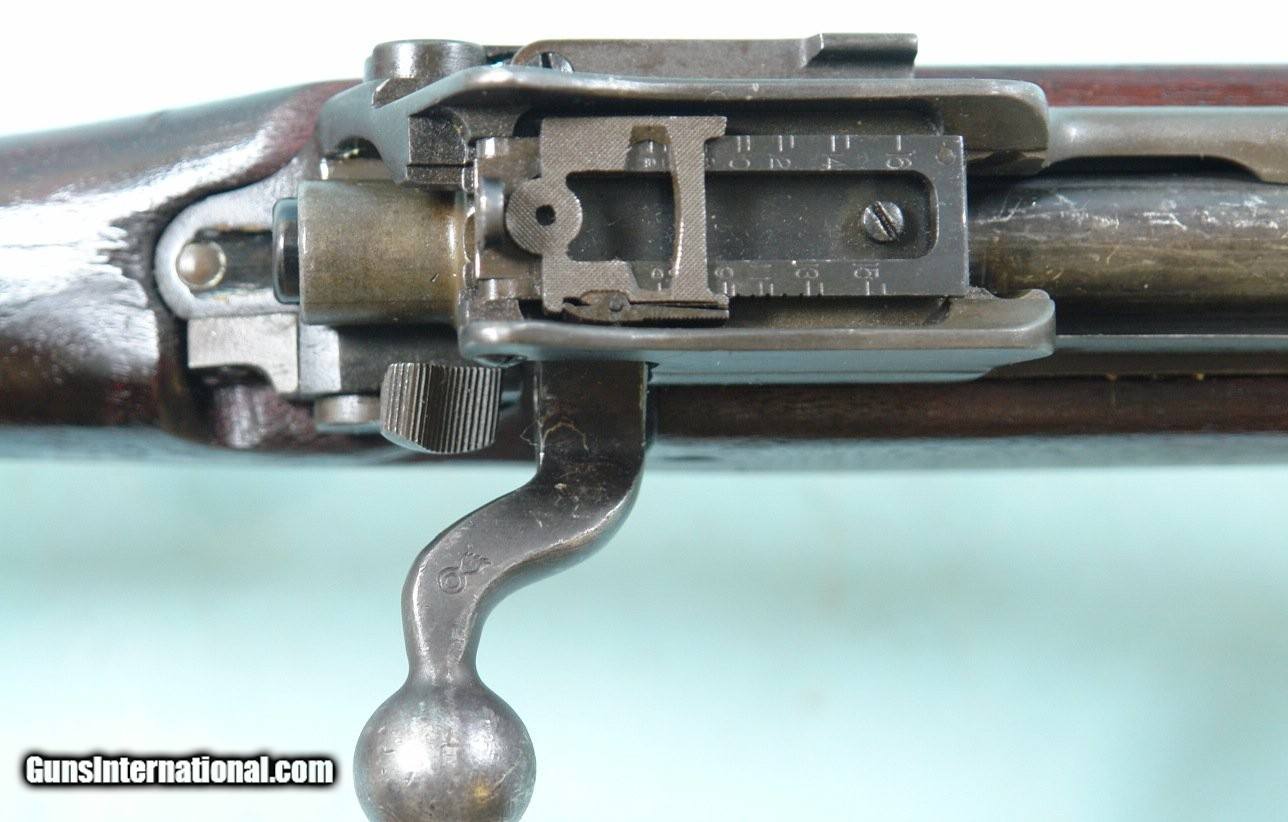Description: 33029- EARLY WWI WW1 WINCHESTER U.S. MODEL 1917 BOLT ACTION .30-06 CALIBER RIFLE SERIAL NUMBER 3408 DATE STAMPED 7-17. All original and matching with nearly all the original Parkerizing on metal and finish on wood. Ordnance “EAGLE” stamps both in front and to the rear of the trigger guard/floor plate assembly. Barrel stamped behind front sight “W/ORDNANCE BOMB/7-17”. Tight working order and mint bore. Superior early Winchester Model 1917. $2850. Curio/Relic: Yes Rifle Caliber: .30-06 Springfield Price: $2,850.00 Contact Seller |