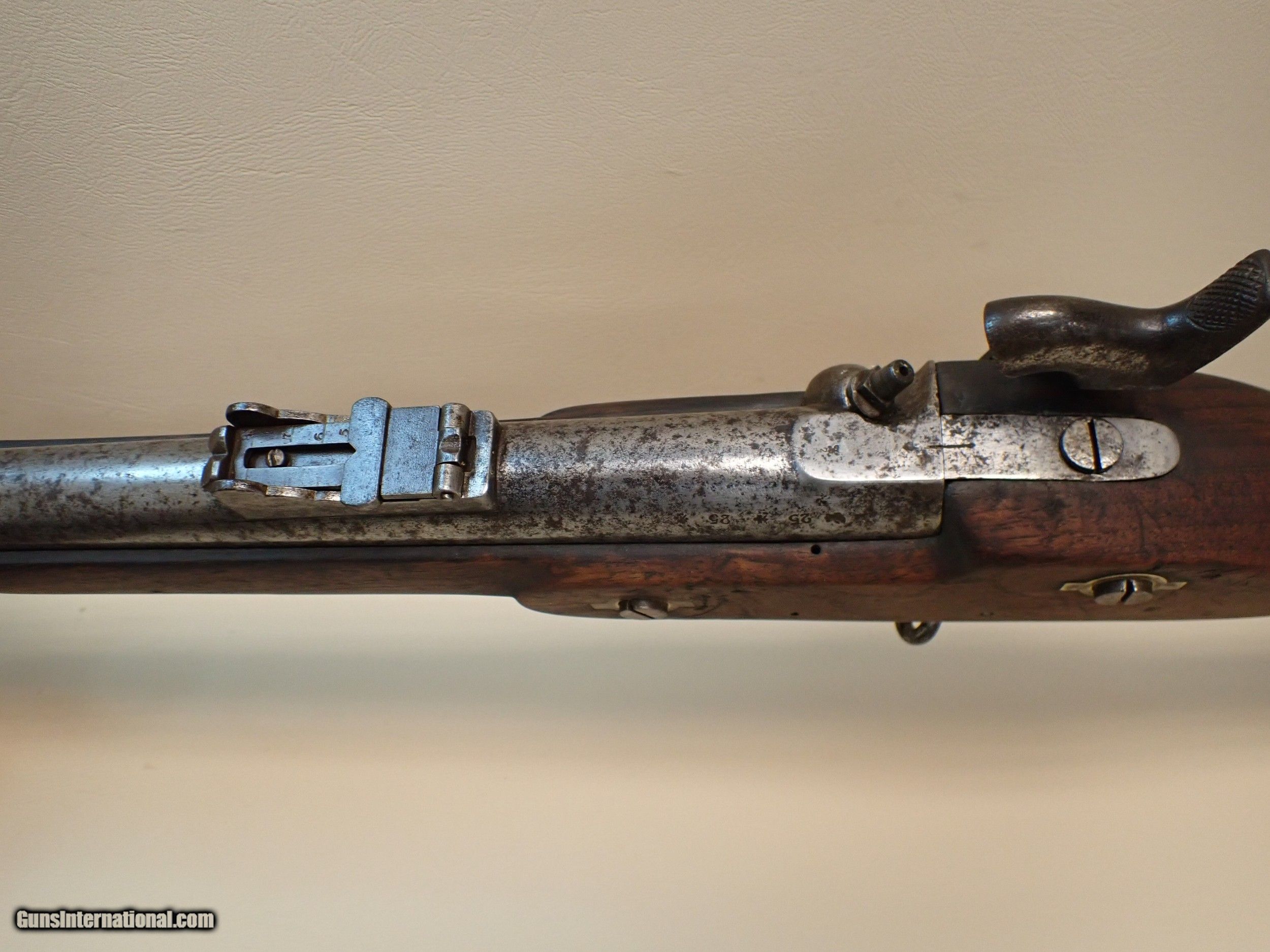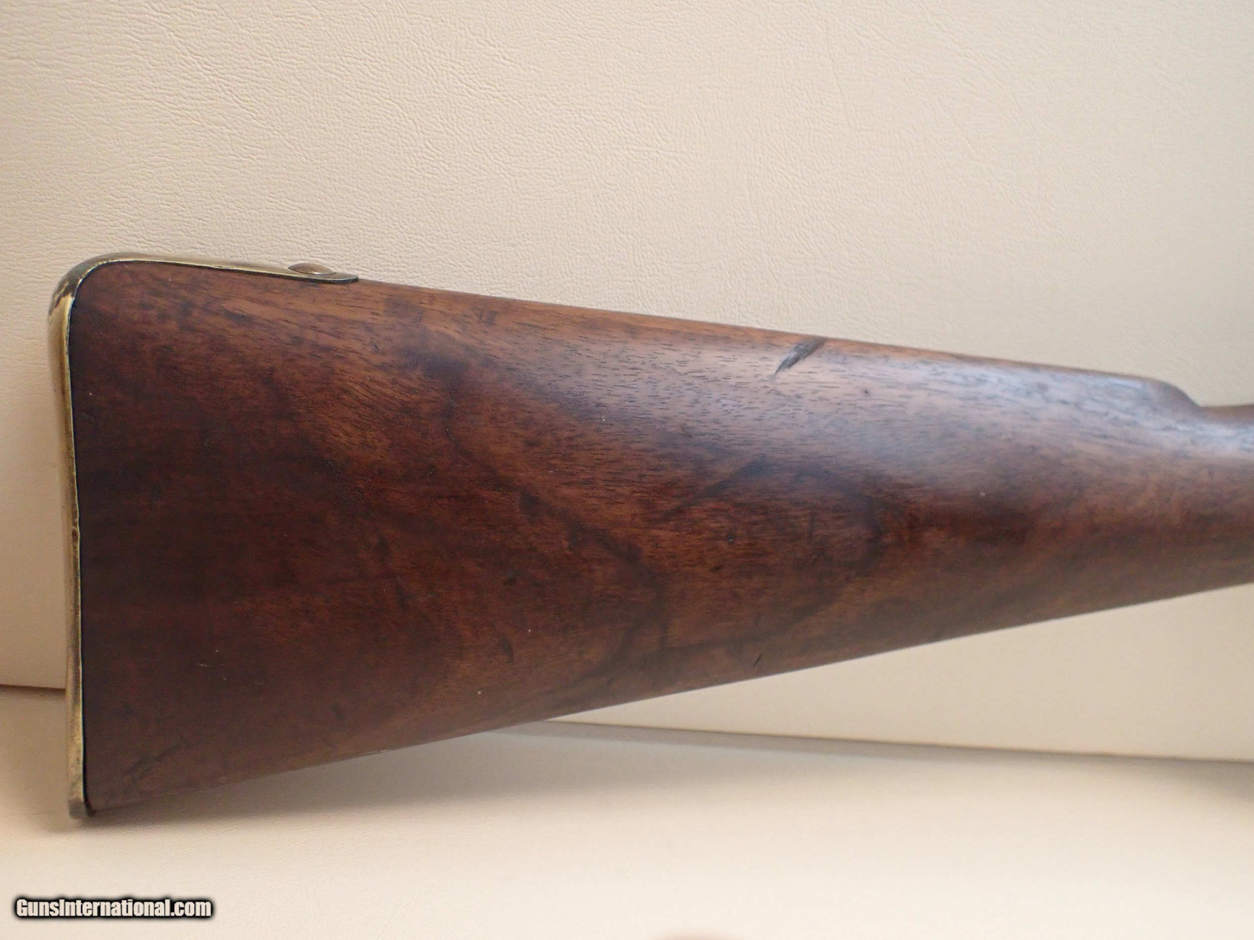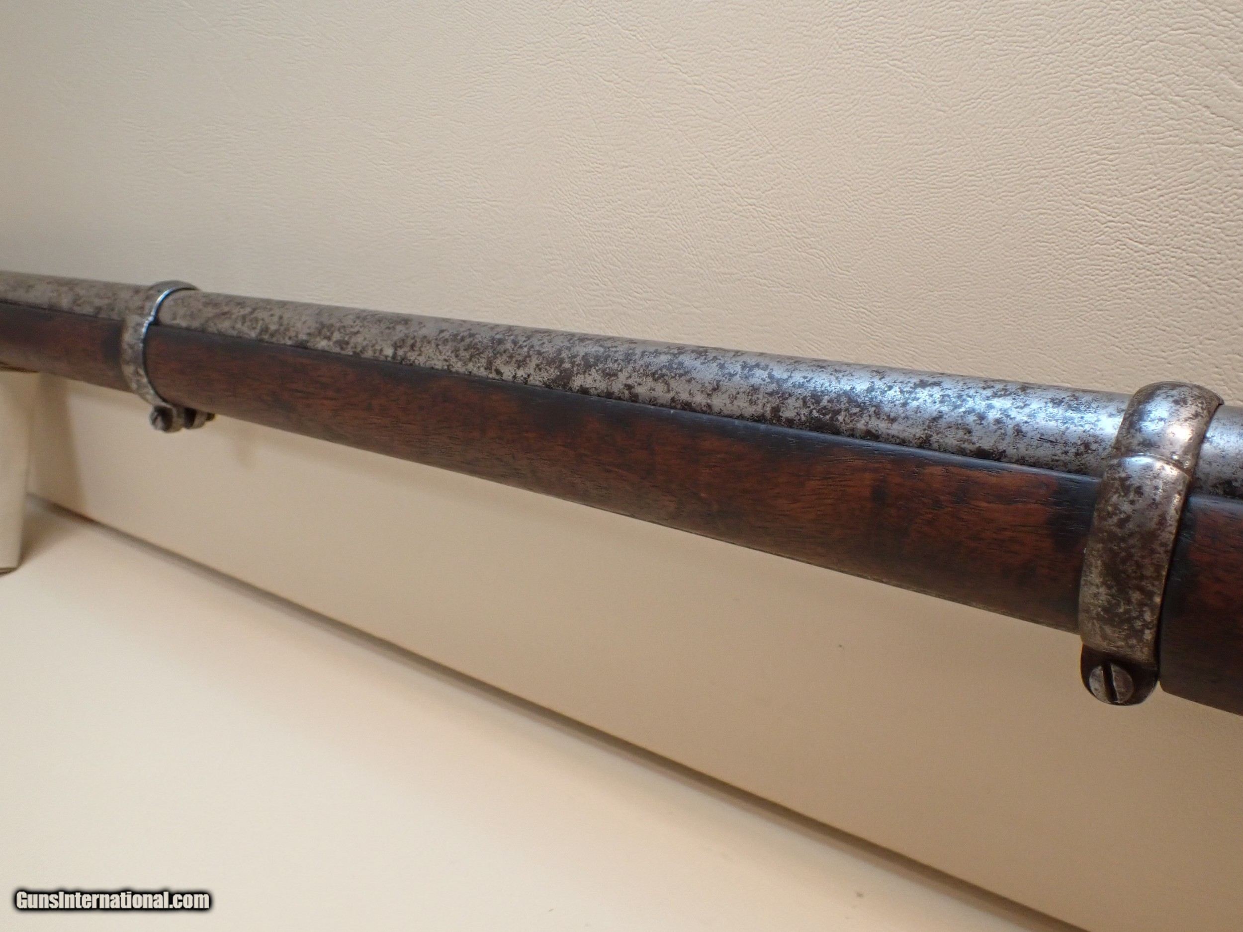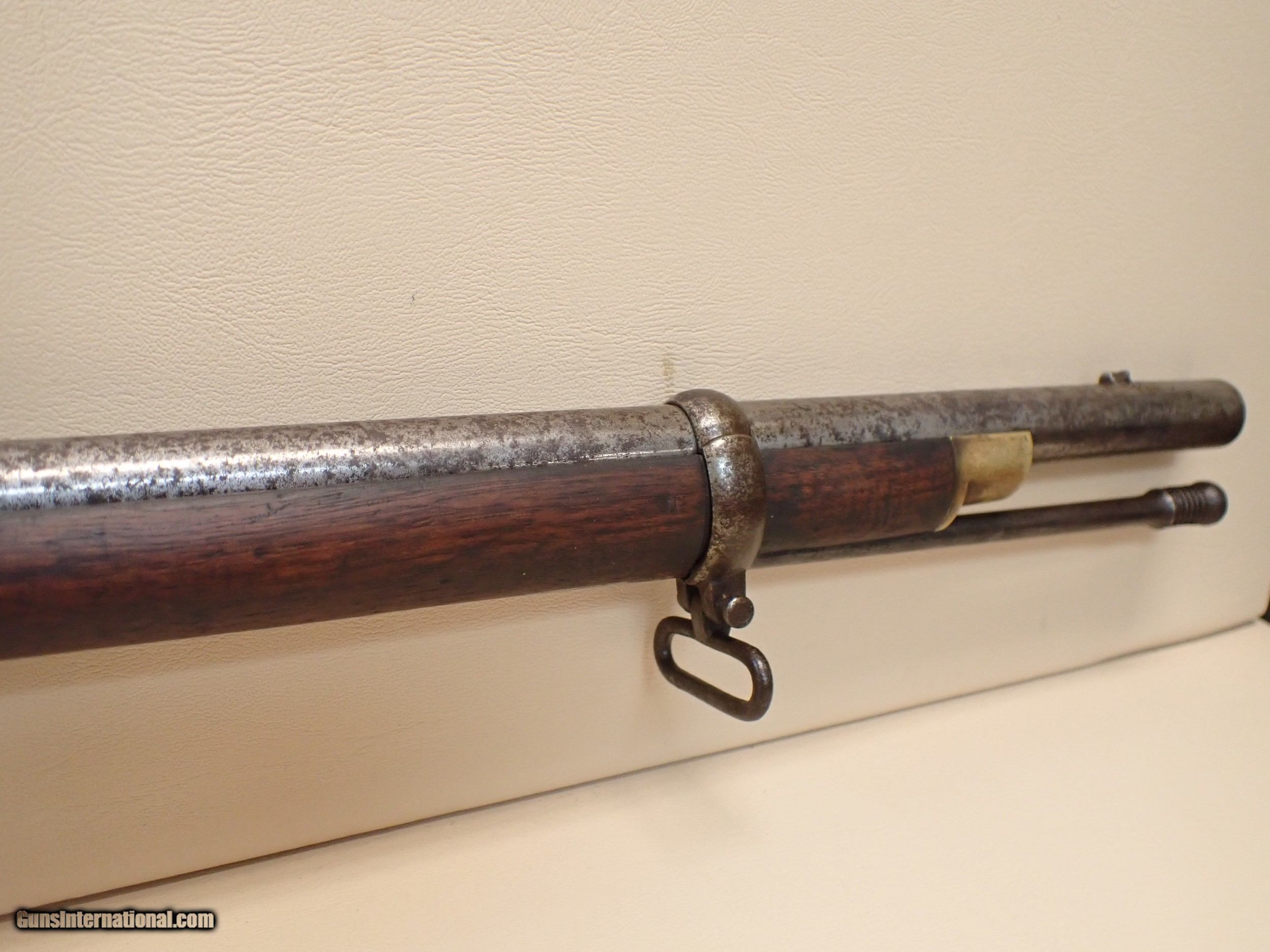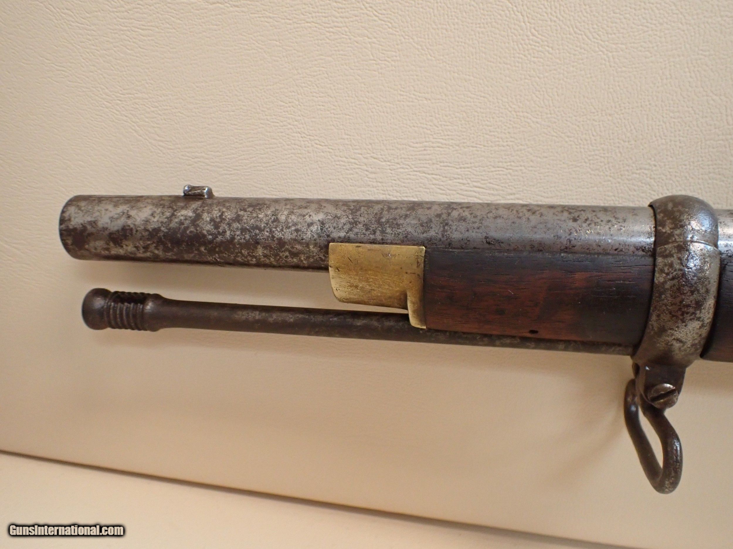Description: ***SOLD*** Tower Enfield 1862 Percussion Rifled Musket. This model of rifle was a US Import for the Union during the Civil War, and used extensively throughout the war. This rifle features a full length walnut stock with a brass butt plate, trigger guard and forearm cap, as well as three steel barrel bands, original ram rod, and a long-range capable rear sight fixture. The rifle has a Tower lock, dated 1862, with the British crown emblem without the VR, which is correct for a US Import service rifle from this era. No visible import marking can be seen on the barrel. The rifle is in good overall condition considering its' age, with finish speckling throughout the barrel and other steel surfaces, however very little evidence of deep pits. The lock is in great working order with a solid half and full cock notch lock, and the nipple is in great shape with no deformation and a clear channel. The bore still retains its rifling, with some dull spots in areas, however there is a good bit of shiny surface throughout. As shown in the photos, the front sight has sustained some damage and deformation. The rifle appears to be all original and appears to have all of its correct parts. Please refer to the photos to further assess the condition of the rifle. A wonderful collectible in great condition for its' age! No FFL required. Shipping $100.00 / UPS SOLD Antique: Yes Manufacturer: Enfield Model: Tower 1862 Serial Number: none Caliber Info: .577 |