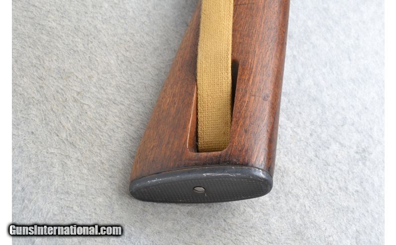 Description: This IBM U.S. Carbine M1 is a right hand semi-auto U.S. Military rifle in .30 Carbine. It has an 18 inch barrel. A blade front sight with protective sides and an adjustable aperture rear sight. The butt stock is a smooth grip hardwood pistol grip and the forearm is a smooth grip two piece hardwood. Serial Number 381241. The barrel is stamped I.B.M. Corp. No date stamp is present. It comes with a tan cloth U.S.M.C. sling. .30 Carbine SOLD Curio/Relic: Yes Chambers: Semi-Auto 15 round magazine. Metal Condition: Very good. Wood Condition: Good with handling marks. Bore Condition: Very good. Barrels: 18 inch. Stock Dimensions: 13 1/4 inches. Fore End: Smooth grip two piece hardwood. Butt Pad: Checkered steel plate. Weight: 5 Lb. 8 Oz. Sights: Blade front with protective sides. Adjustable aperture Rear. Item Location: Richfield, WI |
