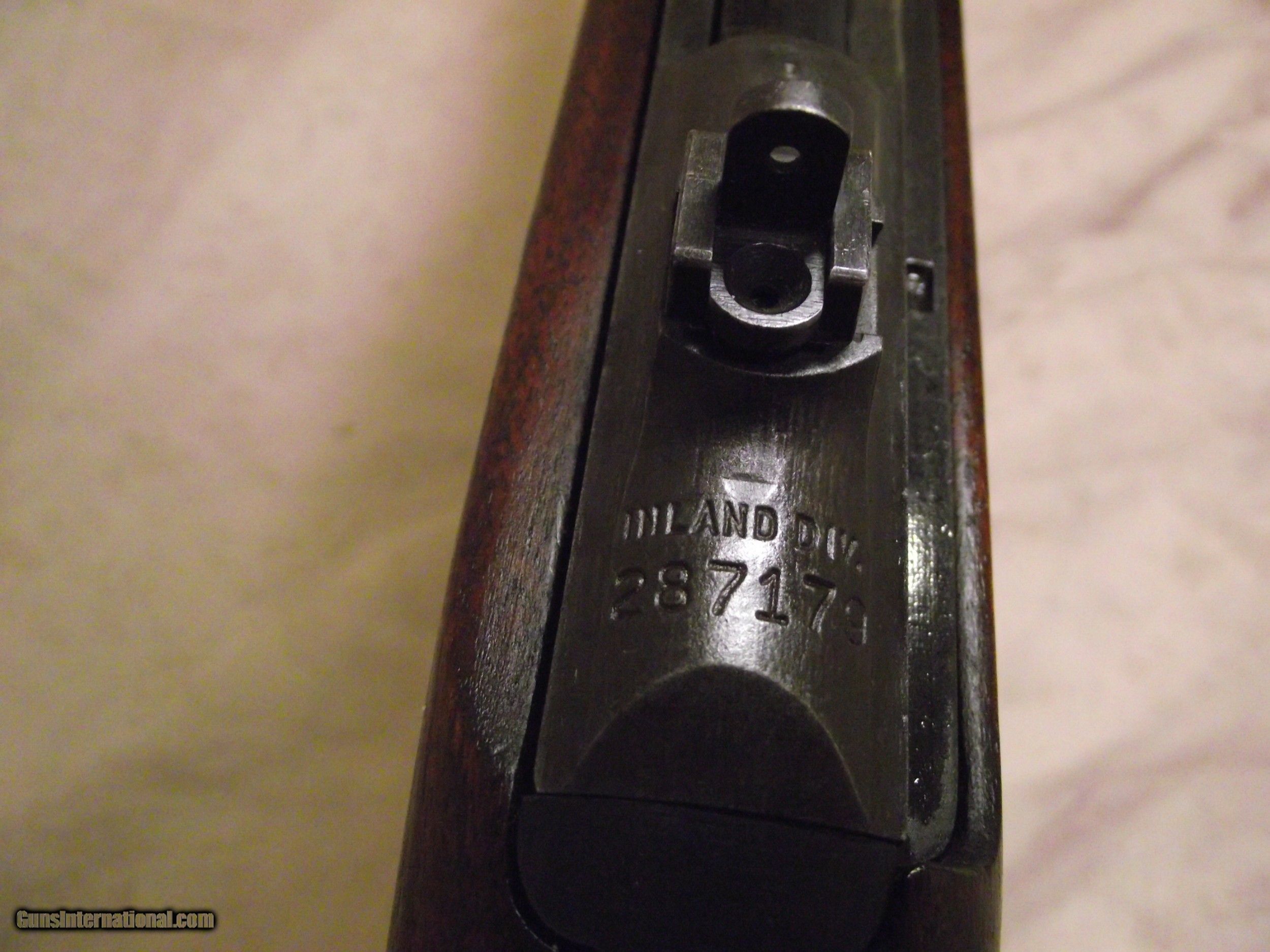 Description: It isn't often you find an M1 Carbine that is in this condition. This rifle has all of the correct metal parts, stock and hand guard, magazine pouch, sling, and carry case. I have totally disassembled this rifle to first insure integrity. Then I documented that every single part matches the specification per the USGI Ordnance Department based upon the rifle serial number, date of manufacture, part type, Inland part identification stamping, measurements, and photo and text identification; using Roger Larson's book " M1 Carbine - Comprehensive Guide" as my reference. Some "Experts" subjectively debate that using one reference for verification of these rifles lends itself to inaccuracy, but I feel that consistency in what I do simplifies and reduces the chance for making mistakes. I rely on facts not opinions when evaluating a rifle. About this Inland M1 Carbine. Serial number 287179 was produced in the first production block of M1 Carbines 712,821 before any other manufacturers began M1 Carbine production. This rifle has no import markings or rebuild stampings under the chamber, only manufacturer proof marks. The barrel is stamped 2 -43 with the production taking place a short time thereafter. As evidenced by the photo of the chamber and bore there is very little wear. The moving metal parts that make contact such as the operating slide, bolt, hammer, extractor, etc. show little wear; a sign of good maintenance. The color of the metal parts matches very well throughout for a rifle this age. No rust or pitting is evident. The stock is an Oval I-Cut dark walnut with the signature Inland large cross cannons cartouche on the right butt stock and IO stamped in the sling well and underside of the hand guard. It started out as a high wood stock but was trimmed to a low wood likely due to the thin wood next to the slide which easily cracked. There are no cracks and only one small dent in the wood on the underside next to the trigger guard. Not only is this rifle 100% correct but the Sling, Oiler (stamped II), dual Magazine Pouch with two UI stamped type 1 Inland 15 round magazines, and Zippered Canvass Carry Case are WWII correct; NOT REPRODUCTIONS. These are expensive and hard to find items. Take a look at the pictures. I have available the data sheets that document all of the parts to this rifle being 100% correct. If you are seriously interested in checking it out before making a buying decision I have 208 photos of it as well that I can email as many as you would like to you. This rifle is close to original as you will find. Not all the parts are what it left the Inland factory with but any that were replaced were done so with correct USGI Ordnance Department Inland specified parts; NOT REPRODUCTIONS. This rifle is being sold in compliance with all state and federal firearms sales and shipping regulations. I will ship it to you insured for the purchase price FREE to a currently valid FFL of your choice within the 48 contiguous states. Although this rifle is fully functional it is being sold with no expressed or implied warranties. NO TRADES considered. Accepted method of payment is USPS Money Orders or Bank verified funds. SOLD Curio/Relic: Yes Rifle Caliber: .30 Carbine Manufacturer: Inland Model: M1 Carbine Serial Number: 287179 Barrel Length: 18 Bore: Excellent Chambers: Excellent Ejectors: Excellent Condition: Very Good Metal Condition: Very Good Wood Condition: Excellent Bore Condition: Excellent Barrel Type: Blued machined Action: Semi- Automatic Stock: Dark Walnut Fore End: Two rivet deep groove Butt Pad: Original USGI Finish: WWII Oiled Weight: 5.6 lbs. Sights: Dual Aperture Fixed Rear Manufacture Date: 1943 Extras: WWII original USGI oiler, two UI stamped magazines, dual magazine butt stock pouch, and sling Case: Original USGI heavy canvass zippered carry case Item Location: Texas |