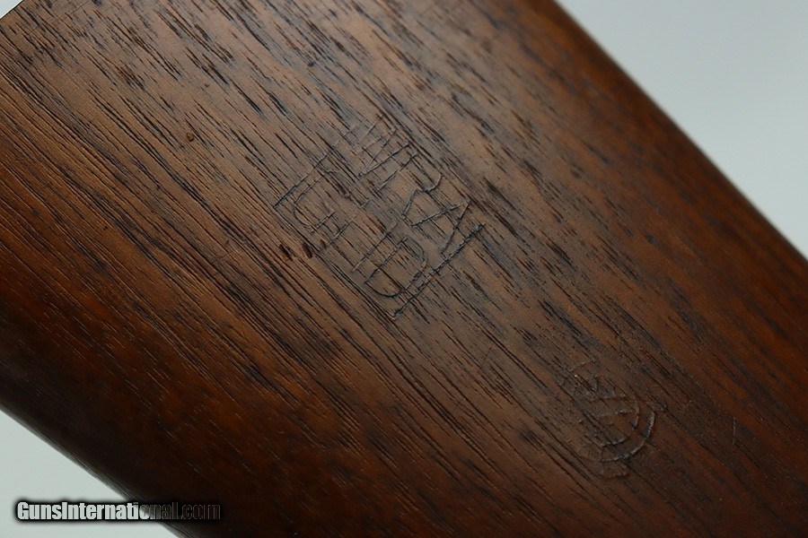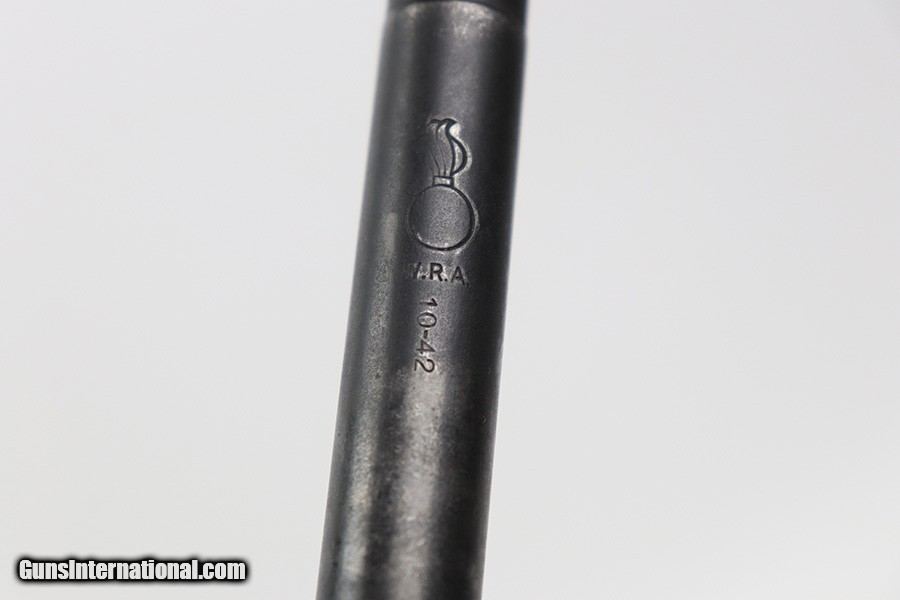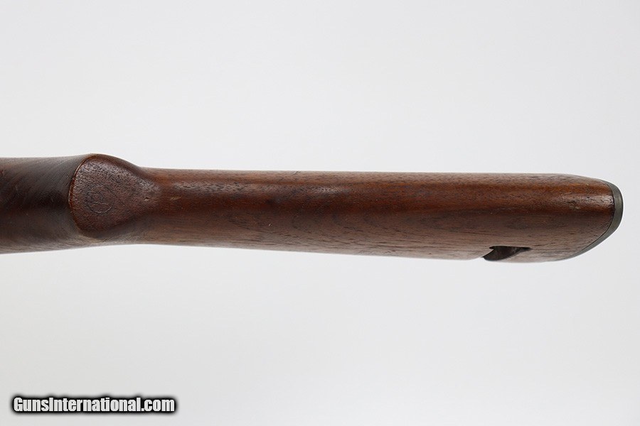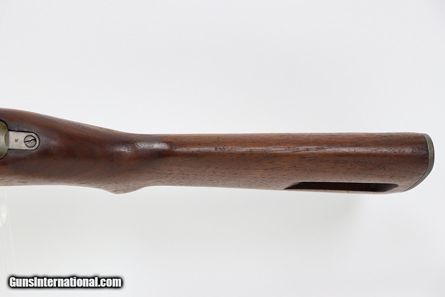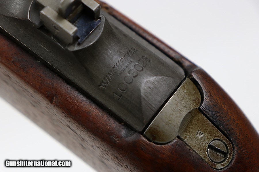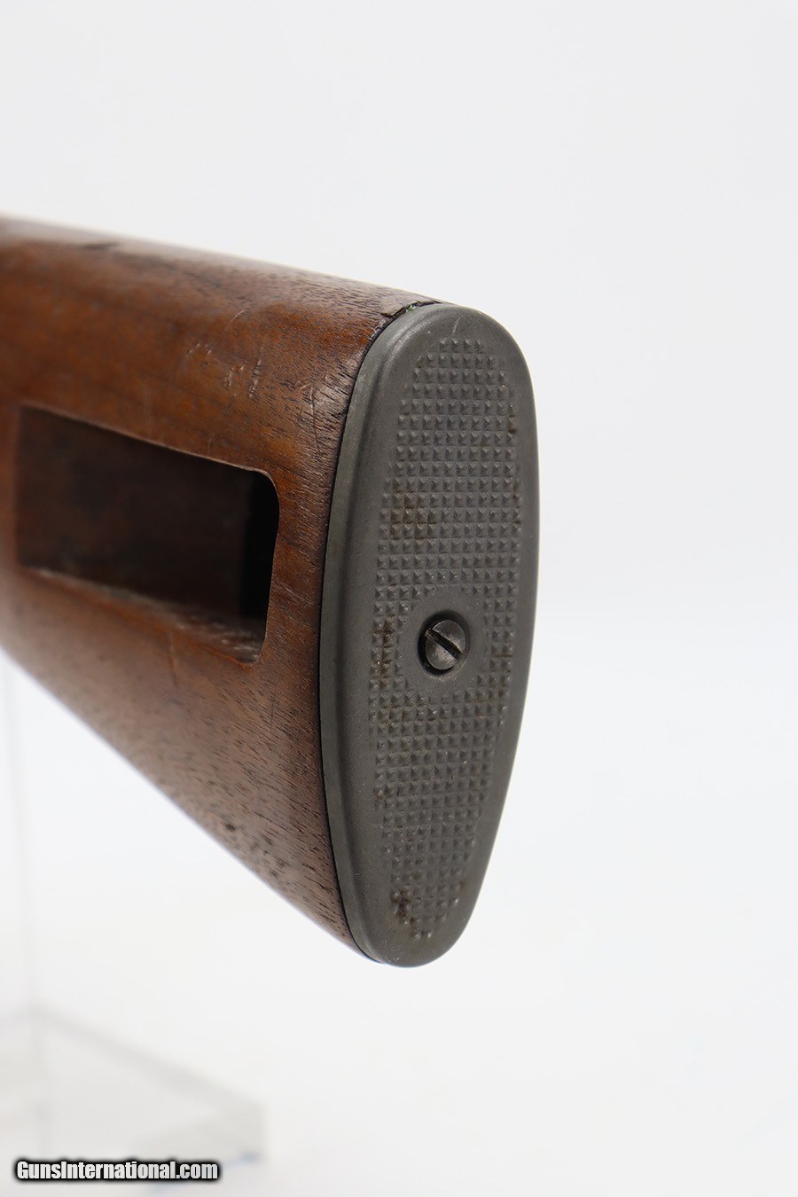 Description: This is a very rare and early Winchester M1 Carbine, one of the first ~3,000 ever produced! A full parts list is included in the photos of this listing, but it's got many rare, early parts. Proper front sight with rounded milling, and many other Type 1 pieces. While Canfield's book states that the mag catch should have serrations and the rear sight should have a script S, we have observed other early examples with the block S rear sight and flat mag catch. Otherwise, all parts are totally "by the book". The finish is original with nearly all of the wear on the barrel. Excellent bore. Stock has a small chip on the right side wall but is in great condition otherwise. SOLD Curio/Relic: Yes Rifle Caliber: .30-06 Springfield |
