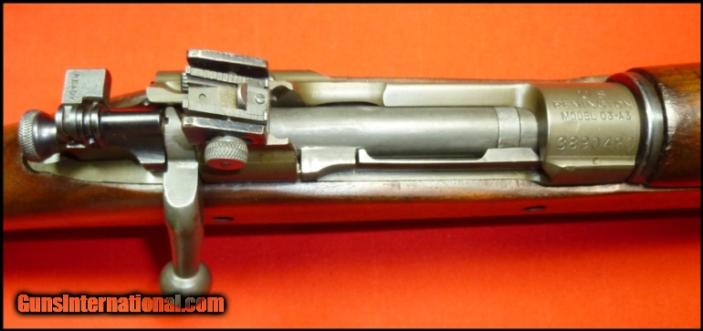 Description: Remington 03-A3 military rifle in 30/06 caliber. Receiver S/N 38904XX; arsenal rebuild. Remington barrel dated 6-43. No visible cartouches on nicely refinished stock. No rust, bright bore. $695 plus $45 shipping. Certified funds or credit cards; add 3% for CC's. SOLD Curio/Relic: Yes |