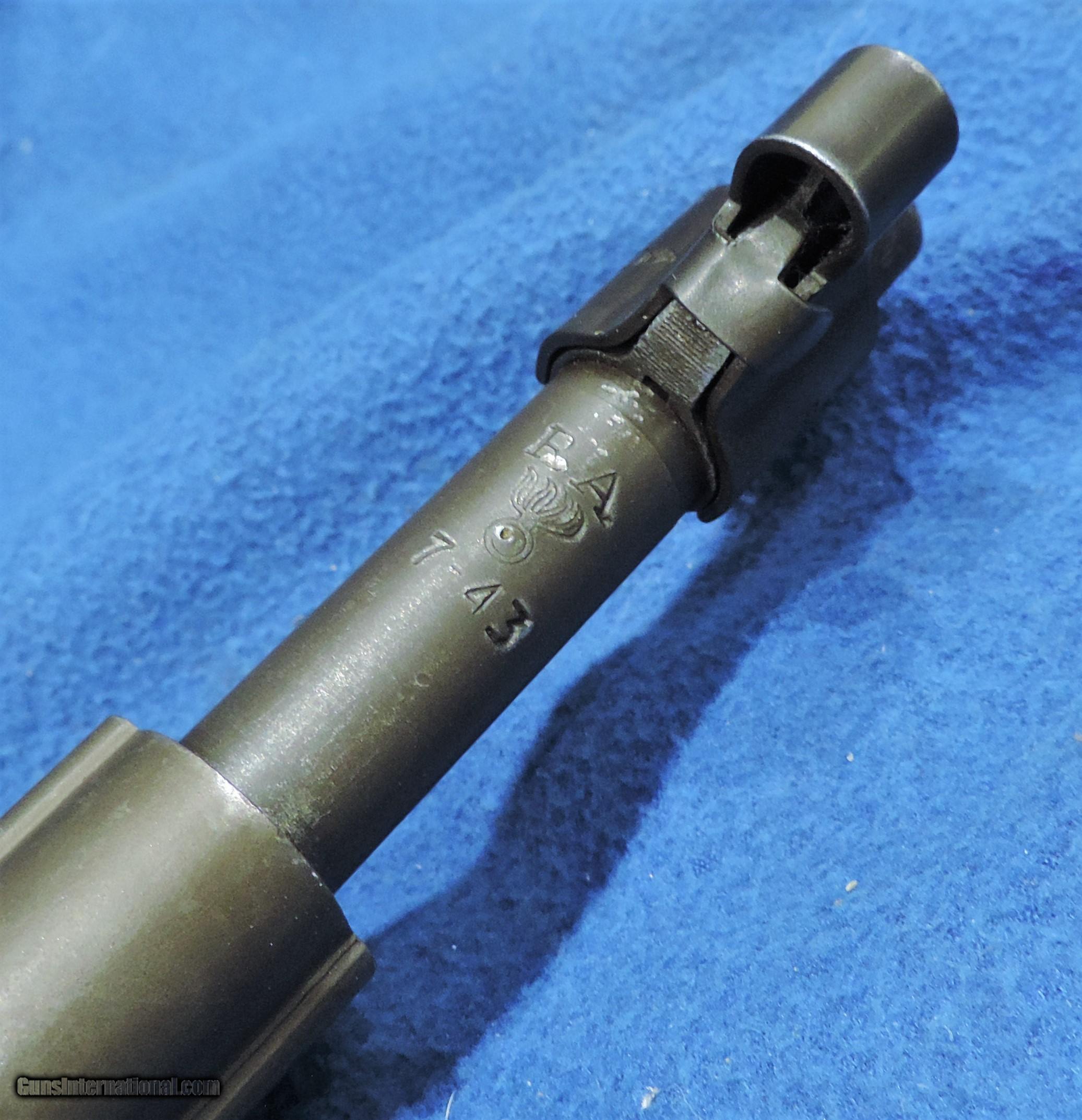 Description: Inv. 7372 Remington 1903A3, Cal .30-06, Ser. 3855553. The barrel of this beautiful rack Queen is dated 7-43. This cutie is as close to un-issued as you wil ever. find. The original dark gray Parkerizing is at the very least 98-99%. The little loss there is, is from some bolt movement and sharp edge silvering. No rust, scratches or even pin pricks. The area in front of the magazine has all the correct factory stamps. The bolt rails, bolt face and feed ramp show very little if any use. All parts match and are Remington coded. The walnut stock and handguards are just as minty with about 99% of the original lacquer. No cracks or chips missing. The left side of the receiver is stamped with the Remington inspector's [FJA], the grip is stamped, Circle P and P/Serif. The is bore is 4 groove and super. Mirror bright with scalpel sharp rifling. Not a touch of frost anywhere. It comes with a correct front sight cover and a proper canvas sling. You can pay a lot more but you can't buy better than this "Rack Queen". And it comes with our "Purchase Satisfaction Guarantee.......Shipped.....$1195. To purchase this firearm or if you want to request more information contact us at: Email ckguns[at]ymail[dot]com Phone 201-512-0002 Cell 201-575-6838 FAX 201-215-4759 We accept most major credit cards. Prices shown are Discounted 3% for Cash or Check. The buyer must be familiar with all the laws governing the purchase and the ownership of firearms in their own city and state. The Yankee Armorer, Inc is not responsible for any failure to comply with or observe these laws. The Yankee Armorer, Inc will only ship after full payment and receipt of all required documents. Shipping: Add $35.00 for handguns, $45.00 for long guns. New Jersey buyers are subject to a 7% sales tax. The Yankee Armorer, Inc offers a 3 day inspection period with full refund upon return of intact firearm and in the original condition. The Yankee Armorer, Inc offers a no interest lay away program - 25% down; 25% in 30 days; 25% in 60 days; and full payment in 90 days. Any violation of this policy is subject to restocking and forfeiture of all payments. Any variation from this policy must be agreed to in advance. Unshipped Cancelled sales are subject to a 20% restocking fee. Be advised that all firearms sold by The Yankee Armorer, Inc. or the Gun Exchange, LLC (SELLER) are sold as collector’s items. They have not been fired or tested for safety and must be examined by a license gunsmith prior to use. By purchasing any item from the (SELLER), you are agreeing to hold the (SELLER) free from any damages or lawsuits of any nature. Any item left for transfer or storage will be charged to $25.00 per month, per item from the day of its receipt. Any variation from this policy must be agreed to in advance. Store hours 10:00 am to 5:00 pm Tuesday -Saturday. It's always best to call for appointment. Store 201-512-0002, cell 201-575-6838. SOLD Curio/Relic: Yes Manufacturer: Remington Model: 1903A3 Serial Number: 3855553 Caliber Info: .30-06 |