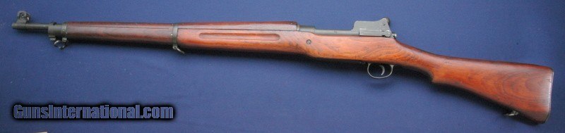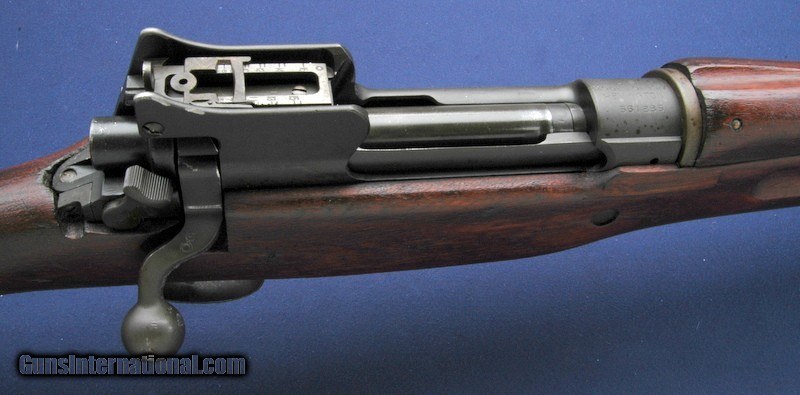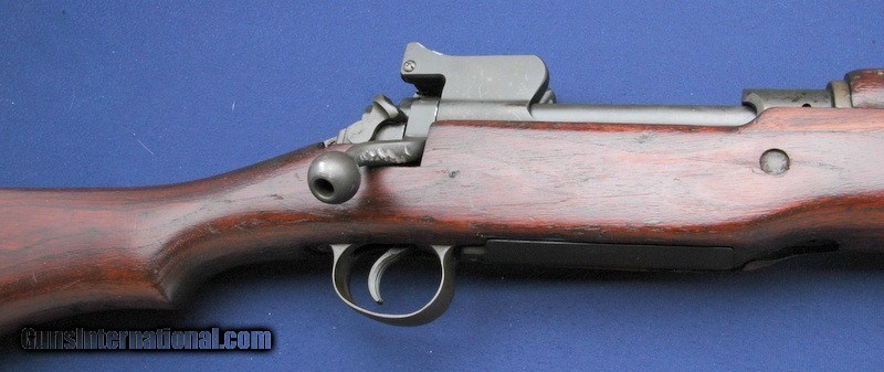 Description: Original configuration Remington Model 1917 rifle, chambered in 30-06. Barrel date is 9/18, R over flaming bomb over 9 18. On the stock right behind the trigger is visible the stamp of an eagle's head with the beak to the left. R stamp at the very front of the stock under the barrel. Bolt is R marked as well with the flaming bomb as is the left side of the action (flaming bomb). Bore is bright and clean with strong rifling. I doubt very much that this rifle has been shot much. Unfortunately there are some hammer strikes on the bolt handle. Looks like a case may have ruptured and the bolt was jammed and someone took a hammer to it to drive it out. Priced accordingly. Otherwise this appears to me to be a very lightly used, original parts, original stock and original finsh 1917. In order to protect your investment, all long guns over $500 must be shipped in a hard case. Minimum shipping at this level is $55 and includes the hard case. Shipping cost could increase depending on value or weight of the firearm. For long guns less than $500, we still recommend the purchase of a hard case, again to protect your investment. These numbers are for shipping to the lower 48. There is also a 3% surcharge for customers using a credit card on internet sales. If you pay with a personal check, you can expect us to hold the item for up to 10 days to make sure the check clears. Thank you! SOLD |