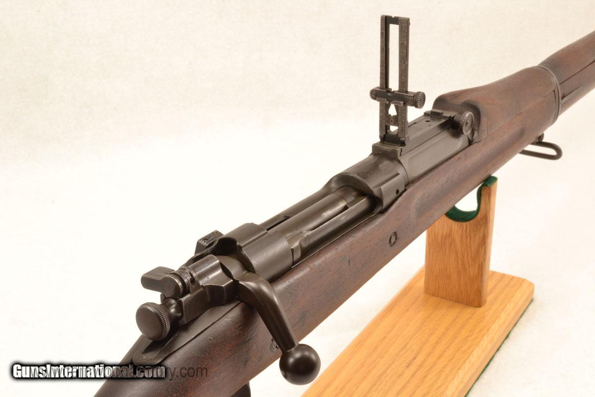 Description: SOLD WWI production Rock Island Arsenal M1903, manufactured 1918, serial number 268xxx. No import marks. This rifle is in excellent used condition, with no pitting anywhere. 4-groove RIA 1-18 barrel with excellent bore. All parts are described below and shown in photos. This is a “low number” 1903 rifle, and is offered for sale to be included in a collection, not to be fired. Rock Island M1903 sn 268xxx Specs: Receiver: manufactured 1918, labeled “U.S. ROCK ISLAND ARSENAL MODEL 1903. 268xxx”. Gas port hole on right side. Excellent condition with no pitting, lettering and serial number are very sharp. Barrel: marked “RIA 1-18” with flaming bomb, proof mark “P” and “C102”. 4-groove rifling, bright bore. Front sight: 3-piece 1903 type, unmarked Rear sight: elevator, 2700 yard scale, knobs dished Trigger: serrated type, unmarked Sear: round front, unmarked Bolt: straight handle type, unmarked on top of bolt handle, Punch mark underneath. Marked “J5” on safety lug, small gas port. Extractor: unmarked with gas port Extractor collar: milled, unmarked Bolt sleeve: unmarked Firing pin/cocking piece: 1917-18 type, unmarked Striker: unmarked. A previous owner has ground off the tip of the striker. Safety: READY/SAFE in serif lettering, unmarked on edge Trigger guard: milled 1903 type, no extra trigger pin, unmarked Floorplate: milled 1903 type, unmarked Band spring: milled, unmarked Bayonet lug/front band: 1903 type, marked “H” on lug Barrel band: milled 1903 type, marked “U” Magazine cutoff: unmarked on edge, ON/OFF in serif lettering, ON face polished bright Follower: milled, unmarked Follower spring: unmarked Stock: straight, walnut, finger grooves, two recoil bolts. Has 7/16” circled “P” and “21 behind trigger guard, not real sharp but visible. “RI” on forend tip. “1134” stamped on left side in an unusual typeface. No inspector stamp visible. No cracks, fewer than average dings/scratches, nice appearance. Handguard: walnut, no cracks, same condition and appearance as stock Rear swivel: milled 1903 type, unmarked Buttplate: uncheckered with trap TERMS: Payment