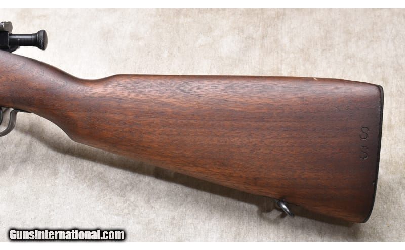 Description: The receiver S/N dates to 1943 and the barrel is stamped with "SC 4-43." In total, Smith Corona manufactured around 240K rifles for the war effort, and, presumably, a few typewriters as well. .30-06 Springfield SOLD Chambers: 5 Metal Condition: Very good. There are a few minor handling marks. Wood Condition: Very good to excellent. There are very few marks on the stock. There are no cartouches but the stamped "S over S" at the butt plate. Bore Condition: Shiny with good rifling. Barrels: 24-inch Triggers: Factory trigger. Stock Dimensions: 13-inch LOP. Fore End: Nearly full-length military stock with heat shield. Butt Pad: Steel plate with storage port. Weight: 8 lb - 11 oz Sights: Military post and notch. Item Location: Rogers |