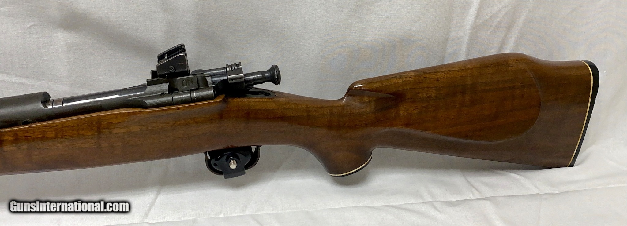 Description: Guns Listing ID: 356329 Smith-Corona model 03-A3 bolt action rifle. A little history Remington began manufacture of Model 1903 rifles in fall 1941. Initially, the new Remington ’03s were very similar to the rifles made at Rock Island Arsenal in the late World War I period. Shortly after Remington started its new ’03 production line, America was officially at war with the Axis powers, and the expected huge demand for more rifles became a stark reality. Remington sought to increase production by reducing cosmetic touches such as careful polishing of the metal prior to Parkerizing and eliminating some non-essential features. By early 1942 the company had made some 649 changes in ’03 manufacture to speed production and reduce costs. While these changes were marginally helpful, further modifications of the basic design were deemed necessary. These changes included less machining to the rear sight fixed base, elimination of the bolt stop, replacement of some milled parts with stamped, sheet metal components and elimination of the grasping grooves on the rifle’s stock. The rifle has some stains on barrel and small scratches 0617797 SOLD Manufacturer: SMITH-CORONA Model: 03-A3 Caliber Info: 30 06 Condition: Used - Non-Certified Barrels: 24 BARREL Finish: BLUED |
