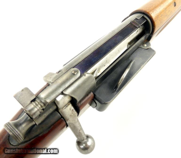 Description: Springfield 1898 .30-40 KRAG caliber rifle. Cavalry carbine made in early 20th century. Stock has no marking. Very sound shape with nice look. Barrel has nice blue, as does band. Nice shootable bore visible rifling darkness in grooves. Muzzle may have been re-crowned sometime in service life. SOLD |