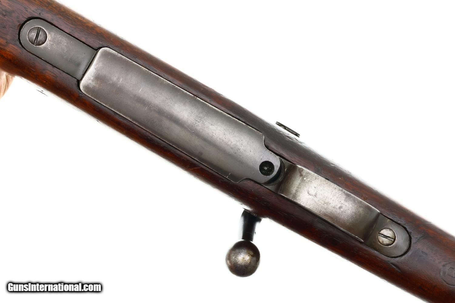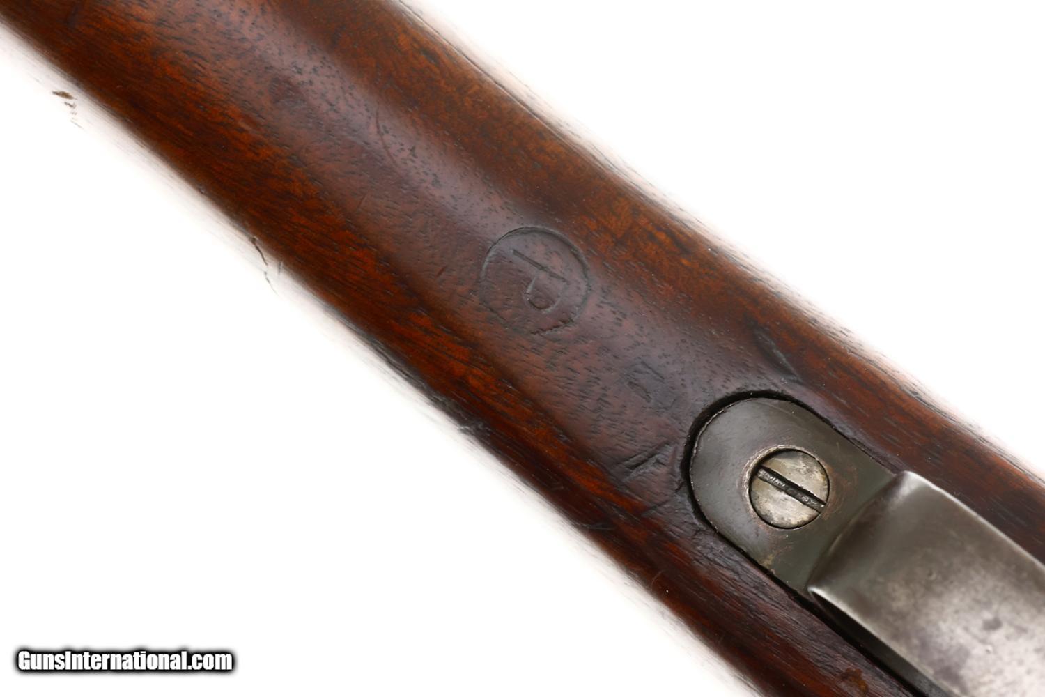G-VG as rebuilt by Raritan Arsenal in New Jersey, often during World War II, with the "P" potentially pointing to an inspector (like Peterson) or "Proof. Now with considerable fading of the finish around receiver, magazine floorplate, and trigger guard. The reworked stock is oil stained with handling marks, a tiny chip at toe. Bright bore with sharp rifling. Correct manual mechanics. An interesting Springfield 1903 rifle that was later reworked/rebuilt by Raritan Arsenal in New Jersey.