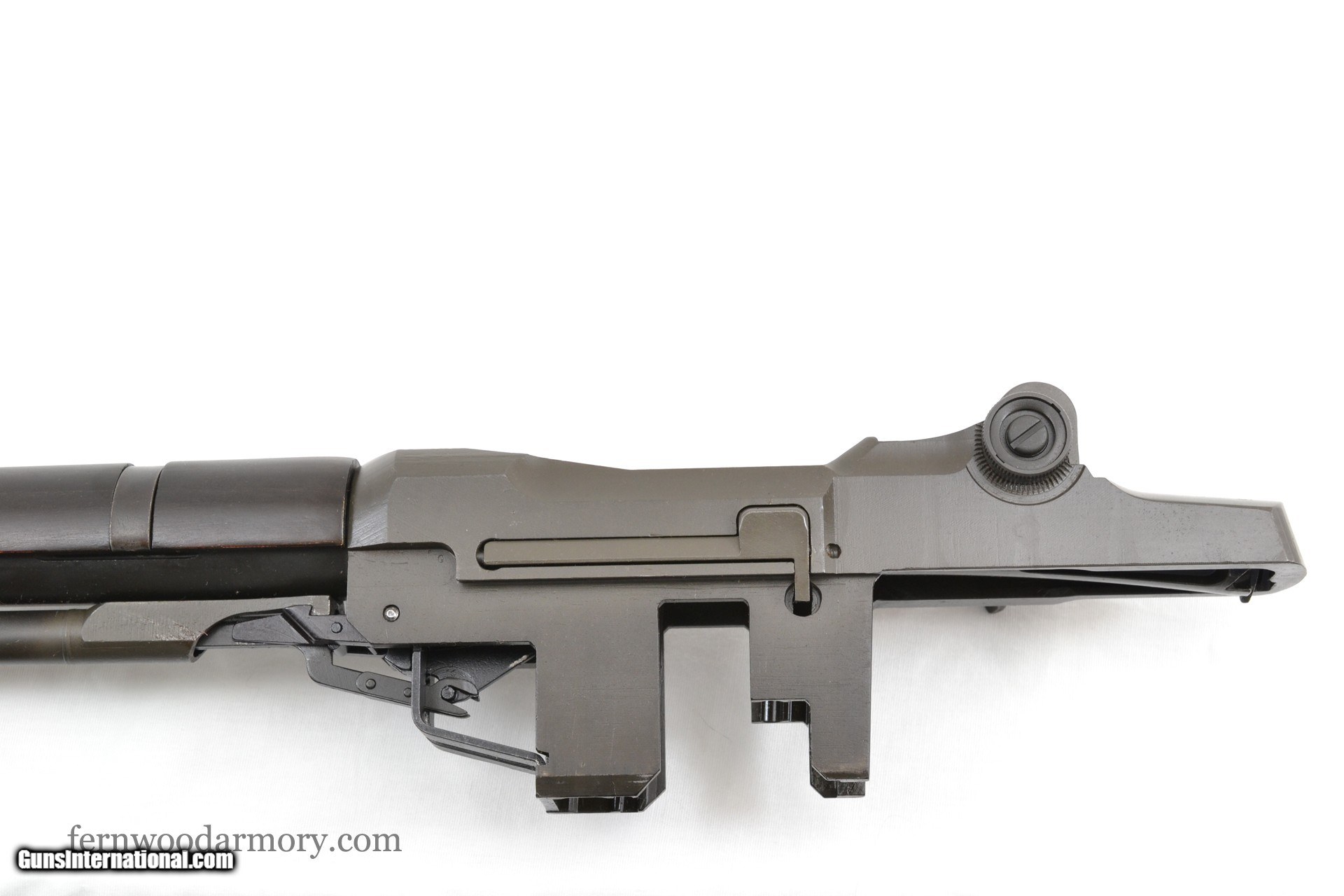 Description: SOLD Springfield Armory M1 Garand. Serial number 5801846, manufactured about 1955. Barrel is a very desirable 1965 Springfield, with a mint bore and excellent gauge numbers, see details below along with description of all parts. No import marks. Commercial replacement stock. This rifle is in excellent used condition. The rifle has been disassembled, cleaned and lubricated. Parts were clean for photos, coated with oil and greased where appropriate when reassembled. We did test fire the gun, and it cycled through a clip fine, ejecting it at the end. Canvas sling and two M1 enbloc clips (no ammo) are included. Rifle will ship in a hard case. C & R eligible. Free Shipping. No credit card fees. See additional terms below. SPECS: ·Receiver: marked “F 6528291” on leg, heat lot A5B, no pitting, apparently refinished at rebuild but color is exactly the same as an original receiver. Marked on top with serial number and “U.S. RIFLE CAL. 30 M1 SPRINGFIELD ARMORY”. ·Barrel: marked “SA 6535448 11 65 BU27A217B” with proof mark “P”, “M” and small stars and eagle. Bore, crown and rifling are excellent. Chrome pads at gas port, chamber in the white. Barrel gauges 1 at muzzle, and 1 ½ at throat ·Barrel band: two-piece flat top with roll pin ·Clip latch: late square front type ·Op rod: flat side marked “6535382 SA” ·Op rod catch: early WWII WRA, marked “A” ·Bullet guide: stamped with notch ·Follower: late type, marked “11” ·Follower arm: no bevel ·Follower rod: long fork, riveted ·Bolt: marked “6528287-SA A15” ·Sight knobs: postwar T-105 type, elevation WCE, windage DRC ·Rear sight cover: late type with ribs ·Rear sight aperture: double track ·Trigger housing: marked “D28290-12-SA”. ·Trigger guard: WWII SA milled type ·Trigger: late type, no extra hole ·Hammer: marked “C46008-3 SA” ·Hammer spring plunger: WWII type with wings ·Gas cylinder: wide sight platform, flat on top of rear ring, punch mark on bayonet lug. GC finish very good Front sight: .63 wide ·Gas cylinder lock: postwar “high hump” type ·Gas cylinder screw: cross slot poppet valve type, marked “P” ·Stock and handguards: commercial reproduction, some kind of hardwood that is probably not walnut, may be hackberry, we are not sure. Nice finish, but not super-smooth – good for grip. Does not have the holes in the stock behind the buttplate trapdoor that military stocks have. ·Sling: new repro TERMS: We are an FFL dealer. Guns listed for sale on Guns International are also for sale in our online store. We may remove the listing here at any time. Firearms ship to FFL dealers, and/or C & R license holders if applicable. Free ground shipping for lower 48 states. Contact us for quotes to Alaska and Hawaii. All firearms ship insured for full value with signature required. Return policy for used guns: 3 day inspection, starting when firearm arrives at FFL. Buyer is responsible for return shipping, insurance required. $35 restock fee. Questions: email us or call 888-319-4811 Mon-Fri 9-5 Eastern SOLD Curio/Relic: Yes Manufacturer: Springfield Armory Model: M1 Garand Barrel Length: 24 Inches Manufacture Date: 1955 Extras: 2 M1 enbloc clips, sling Case: yes |
