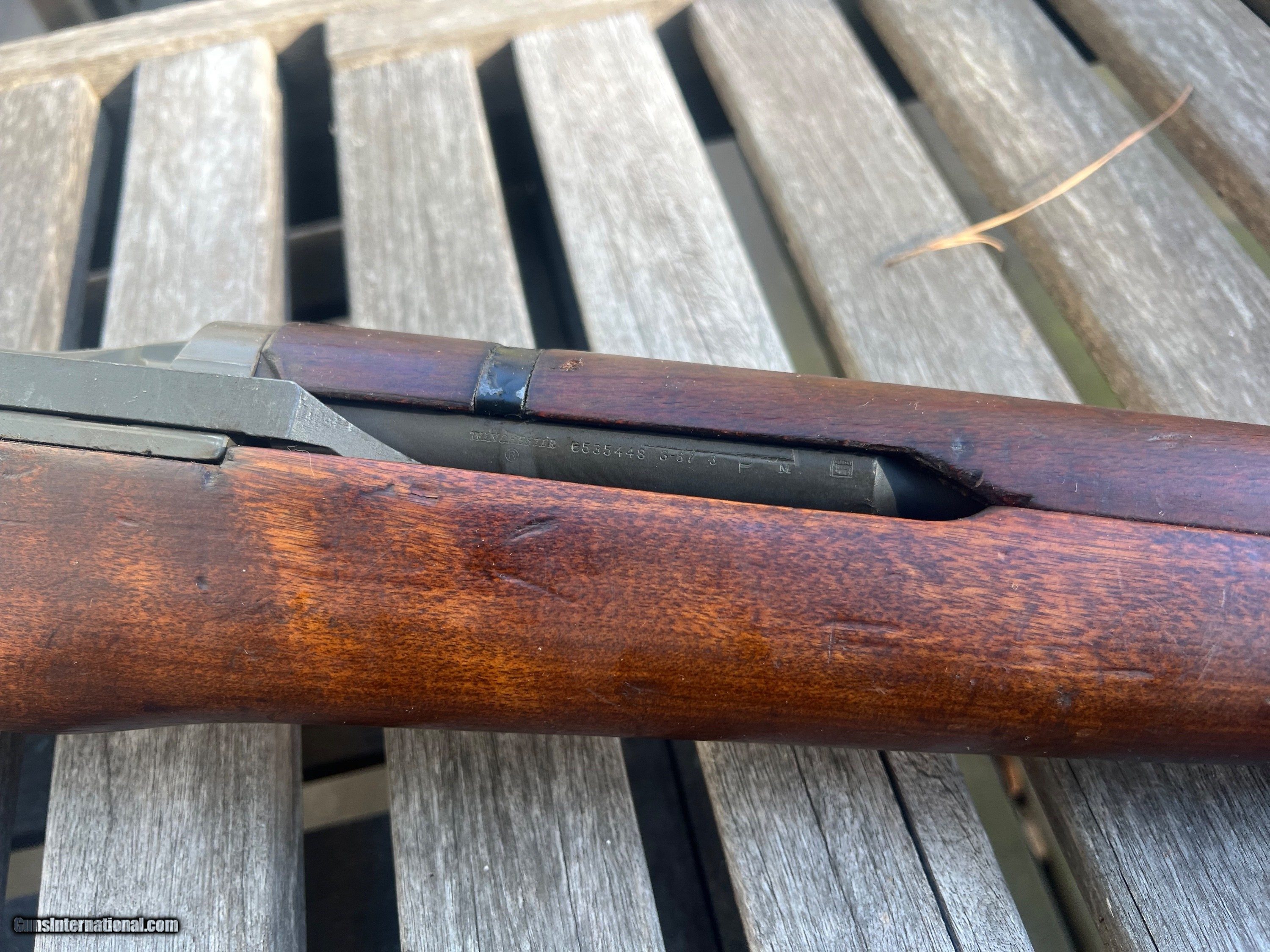 Description: Early Springfield Armory M1 Garand bearing serial number 4600xx, placing it firmly in the first major wartime production period of World War II. Rifles in this early serial range represent some of the earliest Garands produced for U.S. forces, manufactured as America was rapidly expanding arms production prior to full wartime deployment. This rifle is fitted with a Winchester-manufactured barrel dated 1967, marked accordingly with clear proof marks and U.S. arsenal inspection numbers, reflecting a documented U.S. military arsenal rebuild during its service life. Such rebuilds were standard practice and are an authentic part of the Garand’s history, often performed to keep earlier receivers in service rather than retiring them. Early Springfield receivers paired with later Winchester replacement barrels are desirable to many collectors as they demonstrate the continued military use and refurbishment of early-war rifles through the post-war era. The presence of intact proof stamps and arsenal markings supports the rifle’s authenticity and military provenance. This rifle is marked with the EXEL/GARDNER MA. The M1 Garand is one of the most iconic U.S. service rifles ever produced—famously described by General Patton as “the greatest battle implement ever devised.” Early serial-number examples like this are increasingly scarce, particularly those that remain complete, unmodified, and properly marked. An excellent opportunity to acquire an authentic early-production Springfield M1 Garand with a documented arsenal history, well suited for a serious U.S. military collection or historically focused display. Disclaimers: Note: As with all vintage firearms, this rifle to be inspected by a qualified gunsmith prior to firing. There will be a $55 shipping charge added to the final sale price. When buying a firearm, you are required to purshase shipping insurance. We are not responsible for lost packages if no insurance is purchased. We do not test these firearms. Have them checked by a licensed gunsmith before operation. We are not responsible for any injury or misuse. Curio/Relic: Yes Rifle Caliber: .30-06 Springfield Price: $2,199.99 Shipping: $55.00 Contact Seller |
