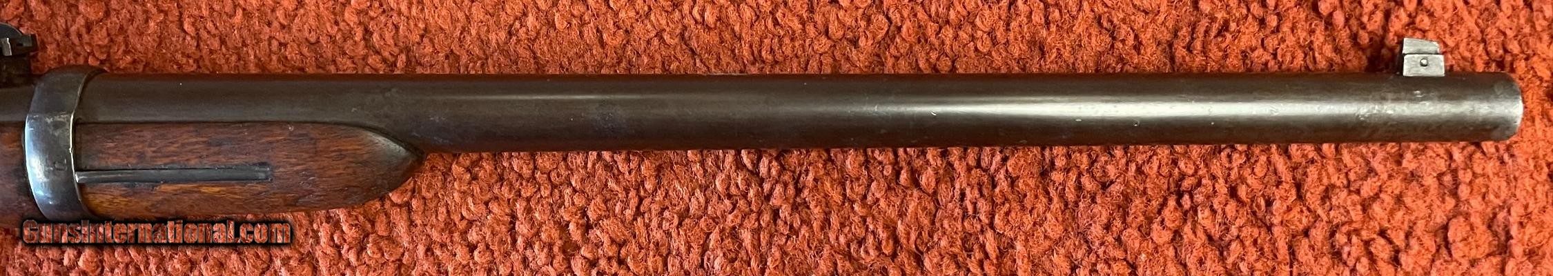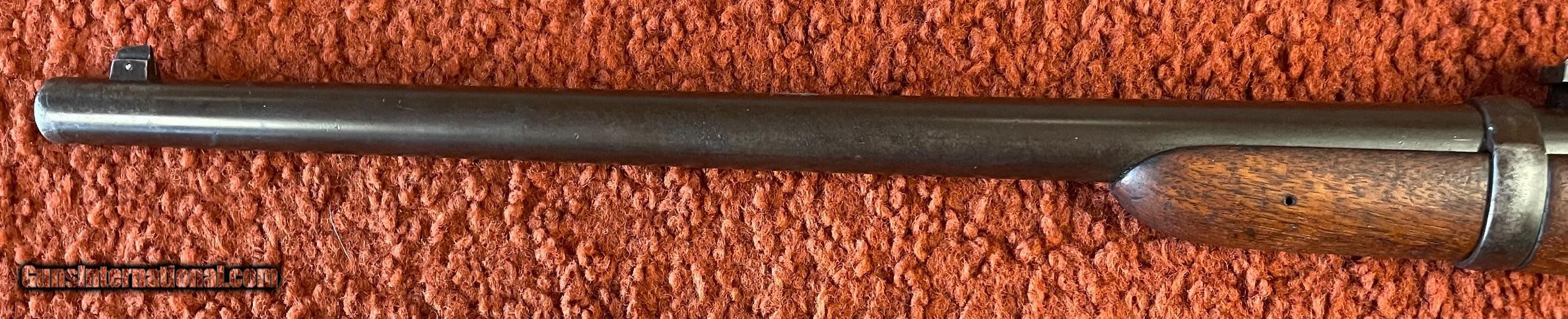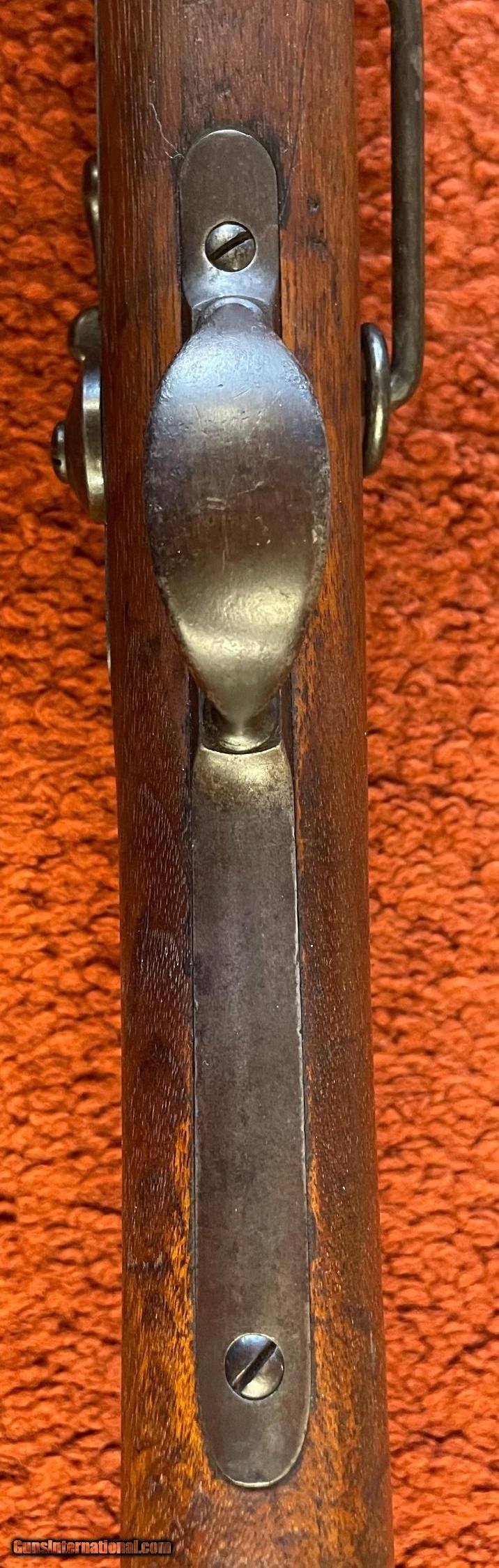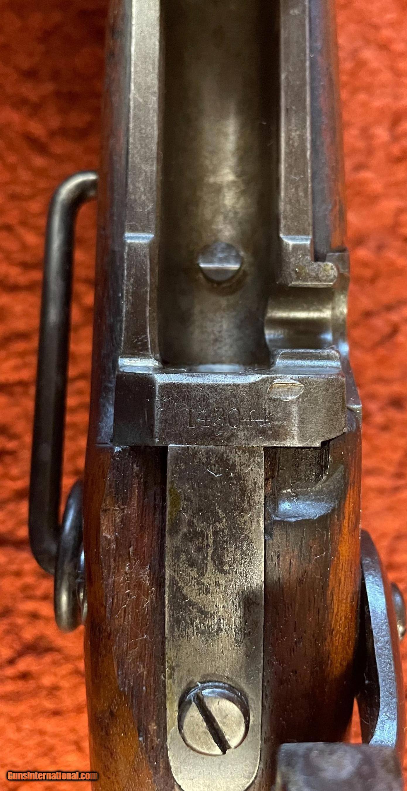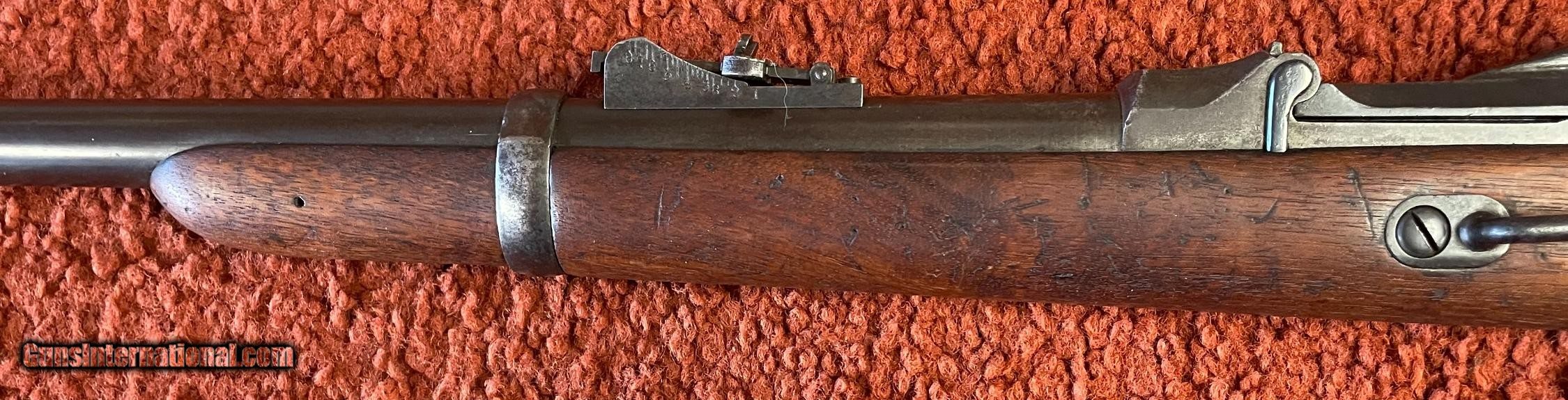Description: The bore has good rifling with scattered corrosion. The action is excellent. The rear sight is a correct carbine sight marked " C " on the base and the ladder SOLD Antique: Yes Manufacturer: Springfield Armory Model: 1879 Carbine Serial Number: 142044 Barrel Length: 22 |