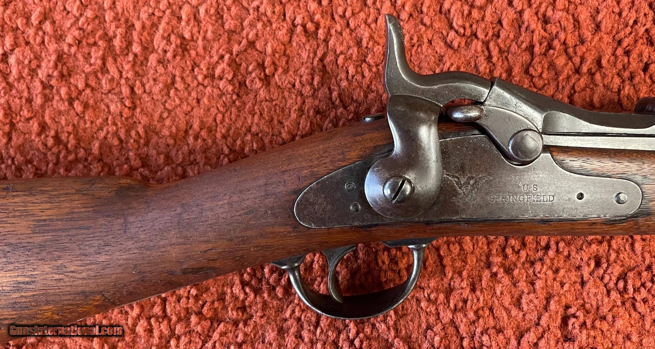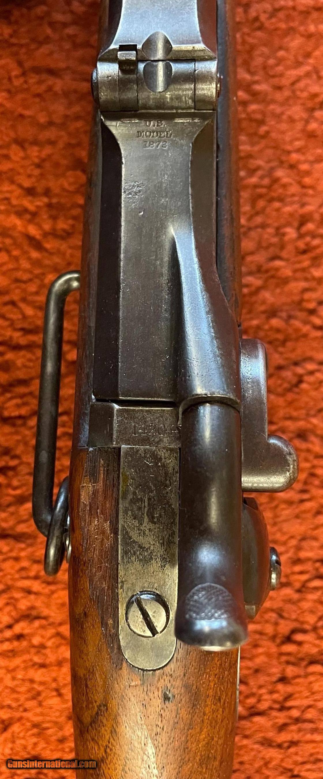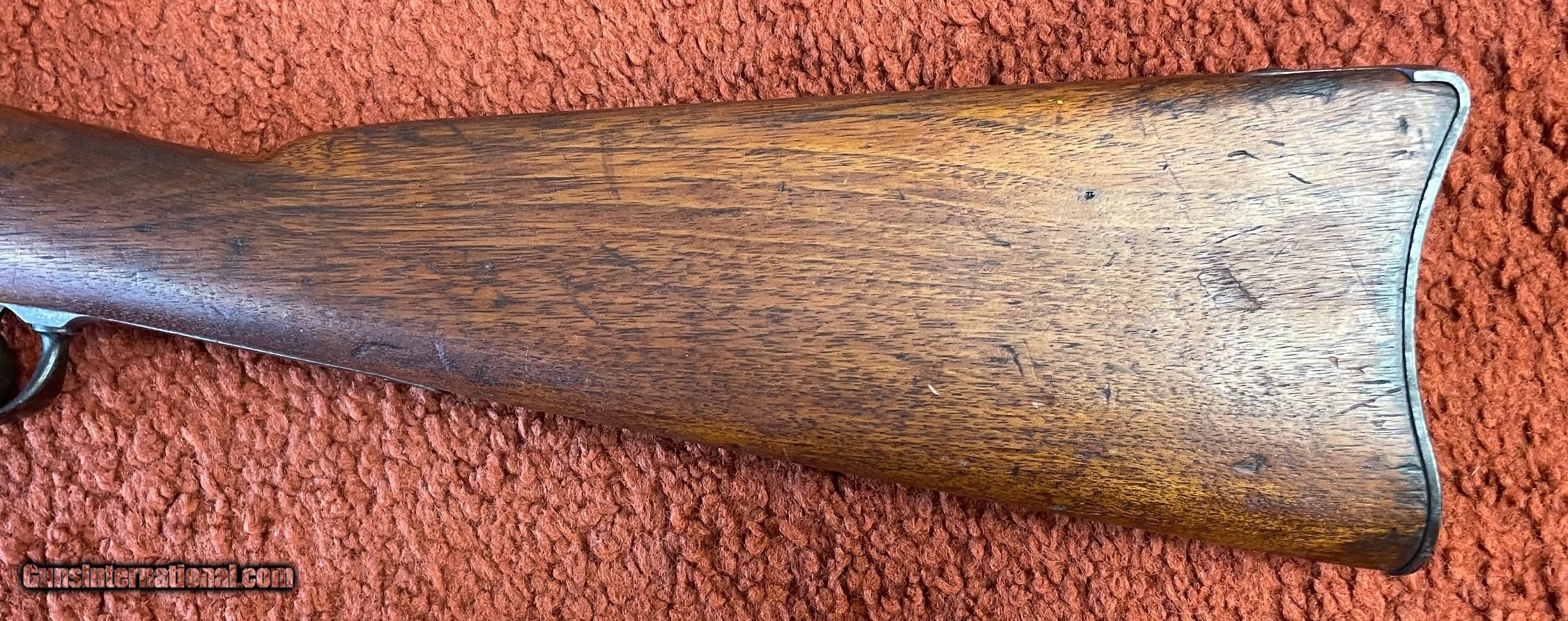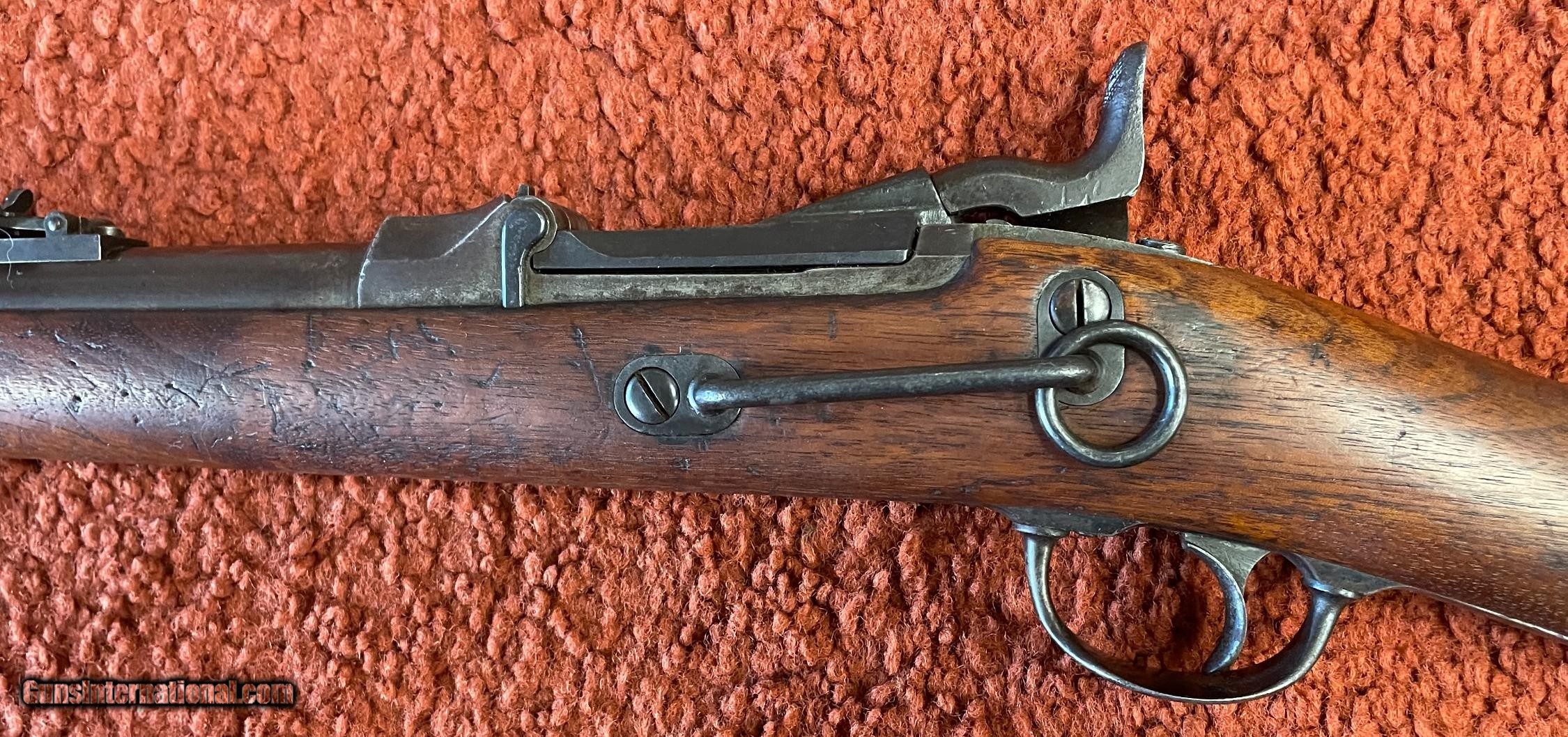Description: The bore has good rifling with scattered corrosion. The action is excellent. The rear sight is a correct carbine sight marked " C " on the base and the ladder SOLD Antique: Yes Manufacturer: Springfield Armory Model: 1879 Carbine Serial Number: 142044 Barrel Length: 22 |