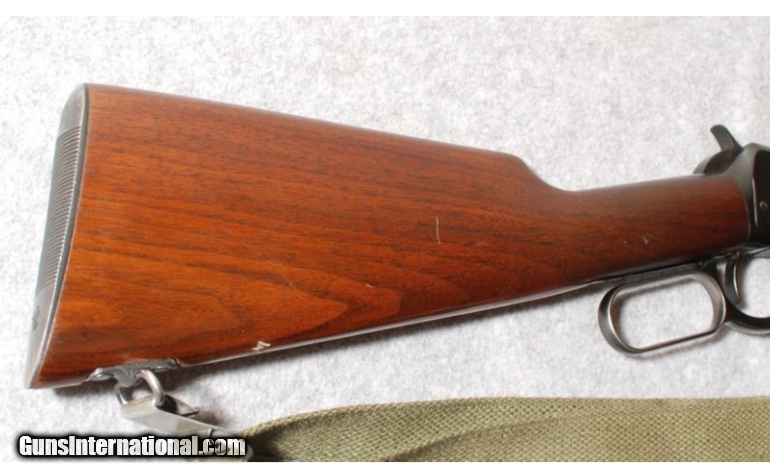Description: A Winchester Model 94 with "U.S." and the U.S. Ordnance insignia stamped on the receiver. SOLD Manufacturer: 1942 Caliber Info: .30-30 Winchester Metal Condition: Bluing worn and faded, some scratches, evidence that there was once a receiver sight on the rifle. Wood Condition: Scratched and dented, the number '429' is engraved on the stock near the toe. Bore Condition: Shiny, rifling sharp Barrels: 20 Stock: Walnut Fore End: Walnut Butt Pad: Steel plate Weight: 7 lbs. Sights: Graduated rear, hooded bead front Extras: Web sling, letter documents. Item Location: Rapid City, SD |