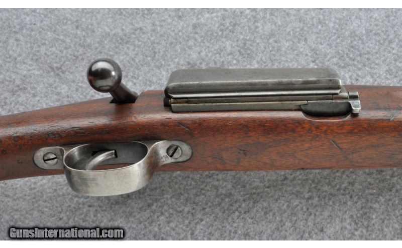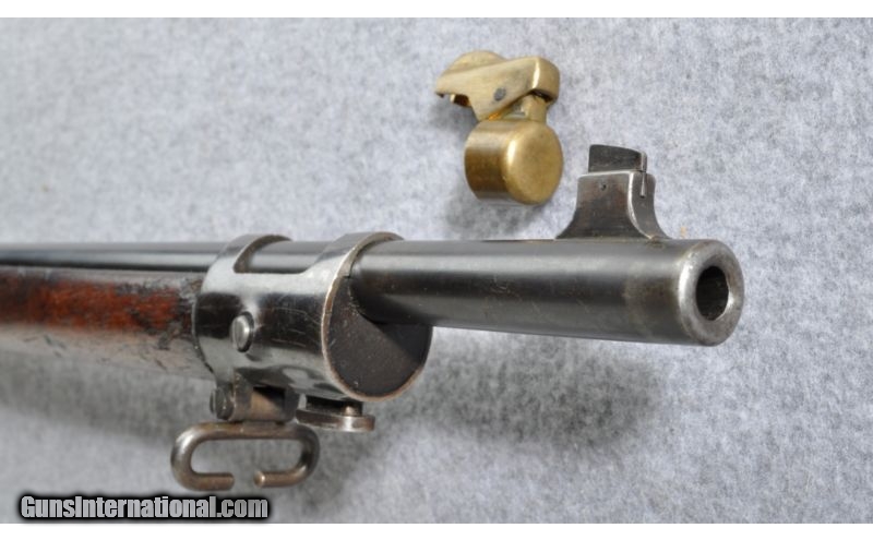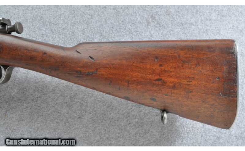 Description: SOLD Curio/Relic: Yes Manufacturer: 1900 Caliber Info: .30 Army (.30-40 Krag) Metal Condition: Satin grey patina showing scattered surface pitting Wood Condition: Various scratches, dents and gouges but overall the wood is sound with no noticable cracks Bore Condition: Very good, bright with strong rifling and a few small pits near the muzzle Barrels: 30 Stock: Uncheckered Straight Stock Military Configuration Stock Dimensions: 13.5" LOP Fore End: Full length with two barrel bands, bayonet lug, sling swivel and stacking swivel Butt Pad: Metal with trap Weight: 8 lbs 14 oz Sights: Pinned blade front, Adjustable leaf rear Item Location: Grand Junction, CO |