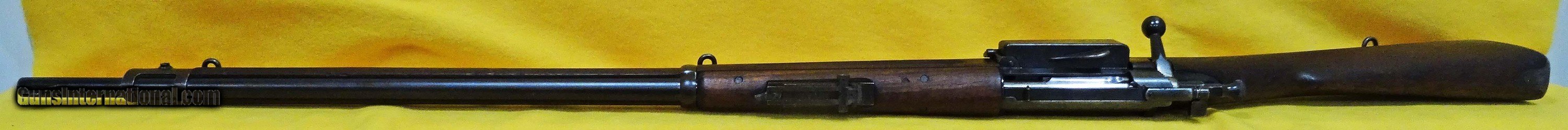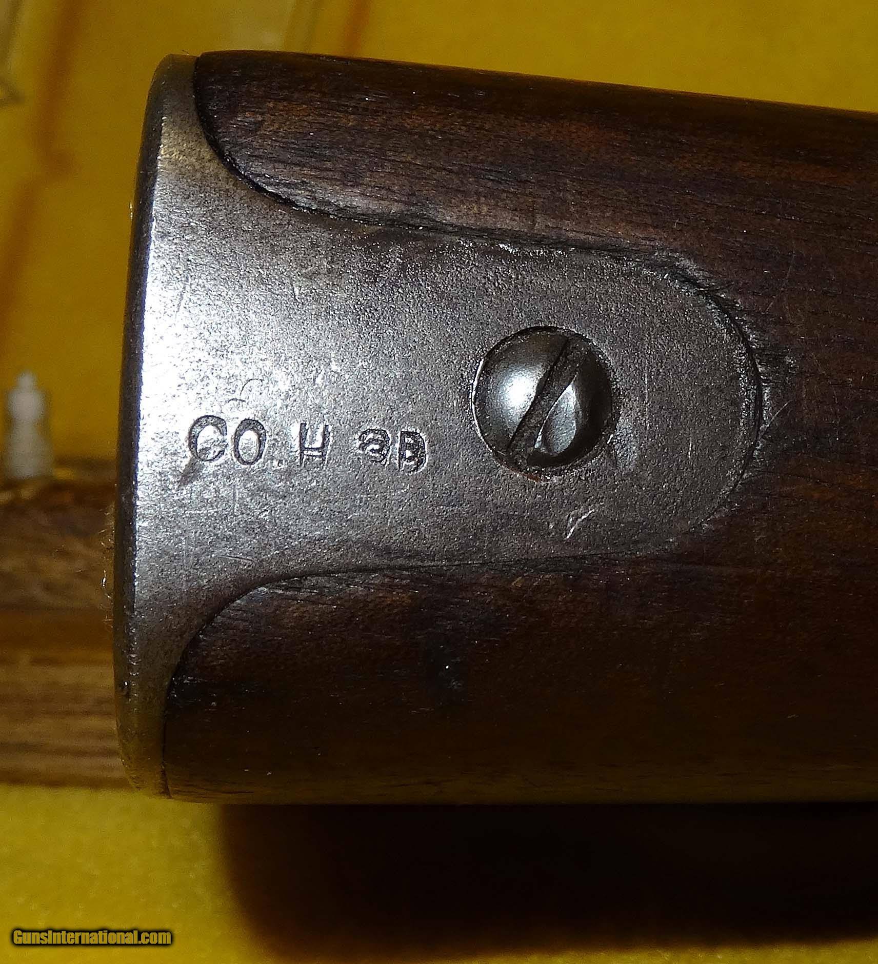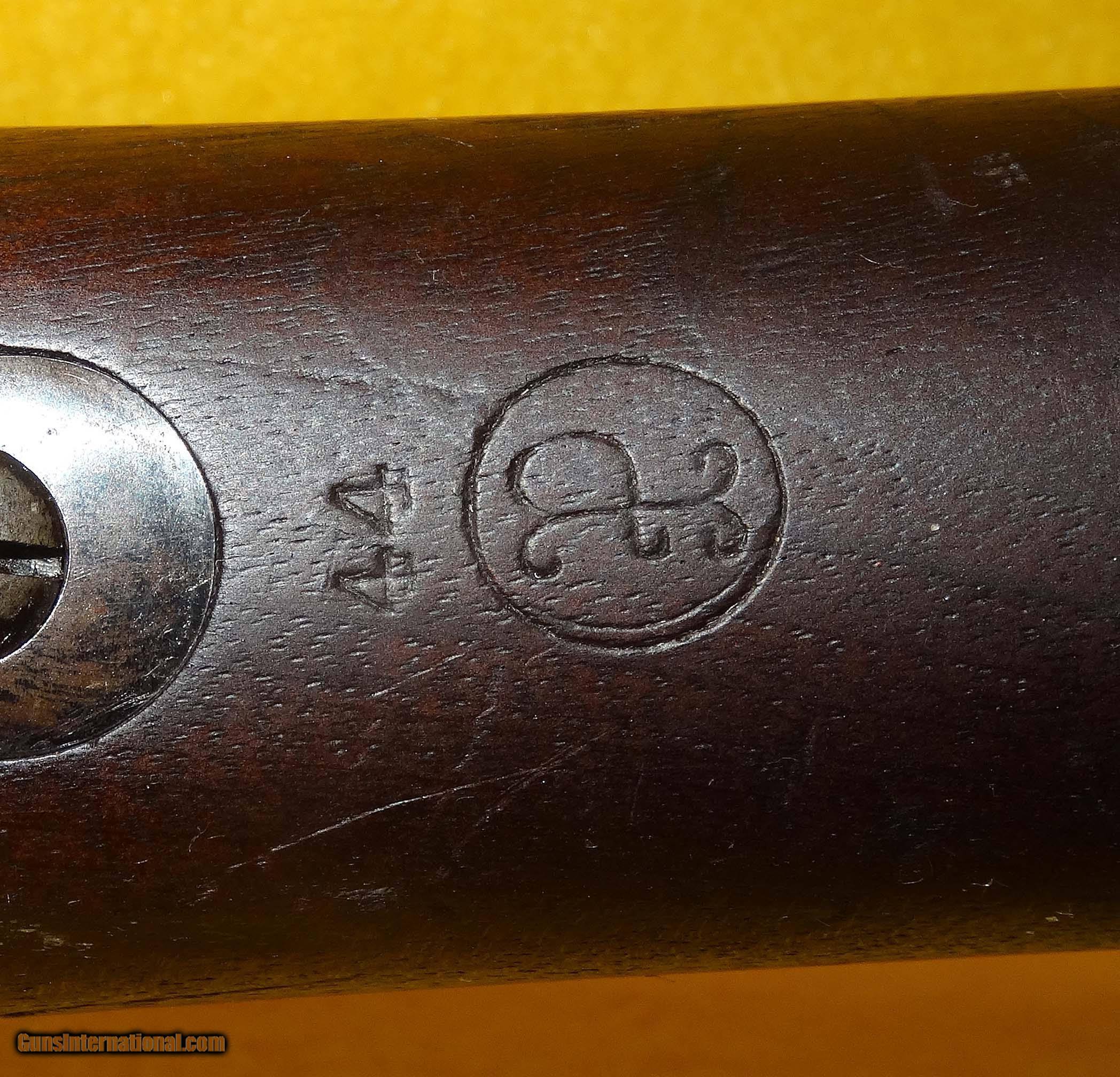 Description: U.S. SPRINGFIELD ARMORY 1898 (KRAG) IN 30-40 CAL., WITH 30" BARREL. COLOR BLUE. CONDITION 75%. SERIAL NUMBER 385079. U.S. SPRINGFIELD MODEL 1898 KRAG-JORGENSEN IN .30-40 KRAG CALIBER, THIS FIREARM HAS BEEN IN A U.S. ARSENAL FOR THE LAST 100 PLUS YEARS AND NEVER IN CIVILIAN HANDS, COMES WITH A BRIGHT SHINY MIRROR BORE, NICE (P) PROOF WITH 1902 CARTOUCHE, 1901 REAR WINDAGE LADDER SIGHT, STOCK CONDITION IS GOOD WITH SERVICE WEAR, METAL FINISH IS 80% WITH NICE PATINA, OVERALL CONDITION IS 75%, OUR STOCK # D634. OUR OLD STOCK # YA12549 SOLD |