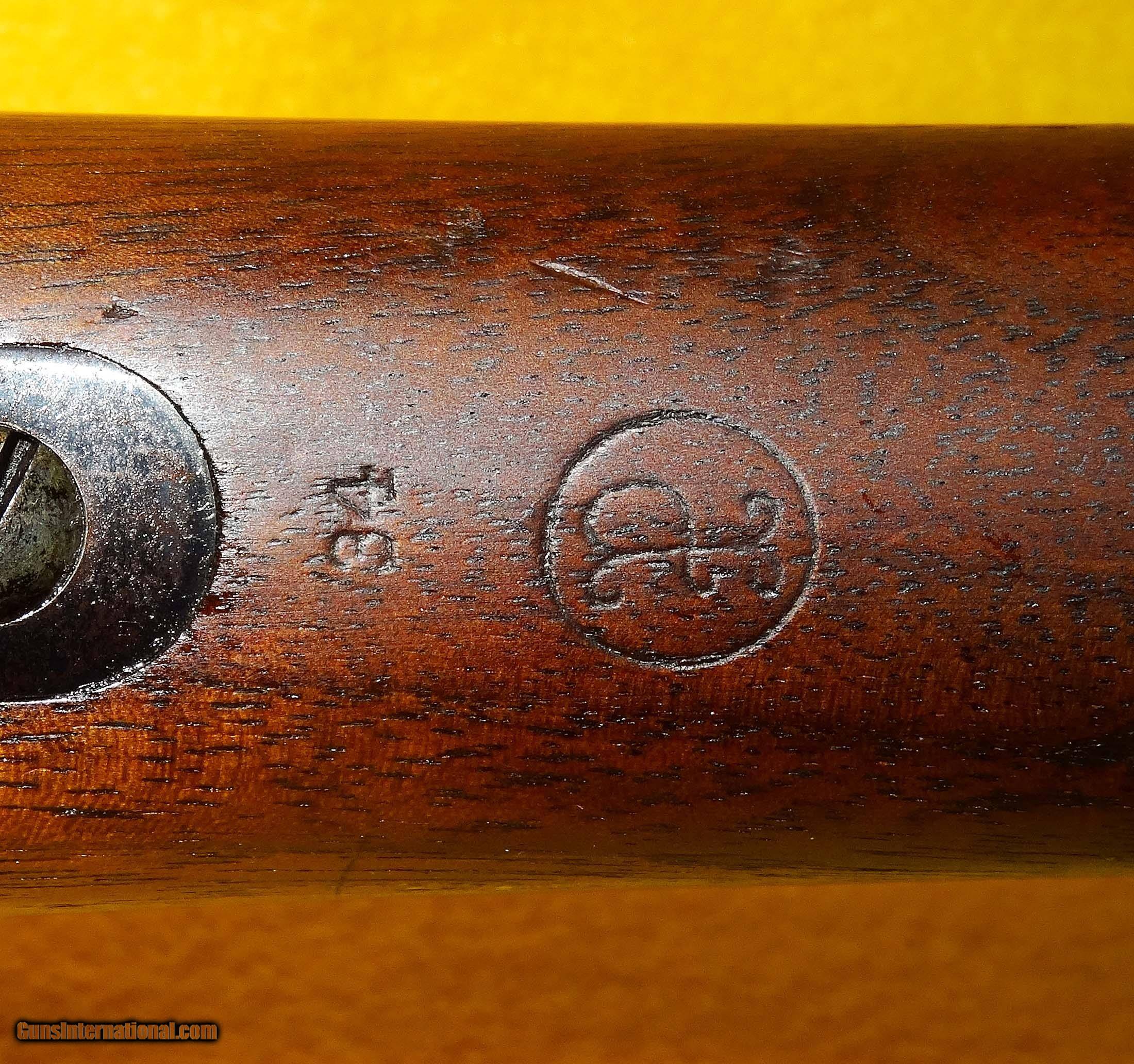 Description: U.S. SPRINGFIELD ARMORY 1898 KRAG-JORGENSEN IN .30-40 KRAG CAL., WITH 30" BARREL. COLOR BLUE. CONDITION 85%. SERIAL NUMBER 474625. U.S. SPRINGFIELD MODEL 1898 KRAG-JORGENSEN IN .30-40 KRAG CALIBER, THIS FIREARM HAS BEEN IN A U.S. ARSENAL FOR THE LAST 100 PLUS YEARS AND NEVER IN CIVILIAN HANDS, COMES WITH A BRIGHT SHINY MIRROR BORE, NICE (P) PROOF WITH 1903 CARTOUCHE, 1902 REAR SIGHT, STOCK CONDITION IS GOOD WITH SERVICE WEAR, METAL FINISH IS 85% WITH NICE PATINA, VERY NICE STOCK AND HAND GUARD, OVERALL CONDITION IS 85%, OUR STOCK # D633 SOLD |
