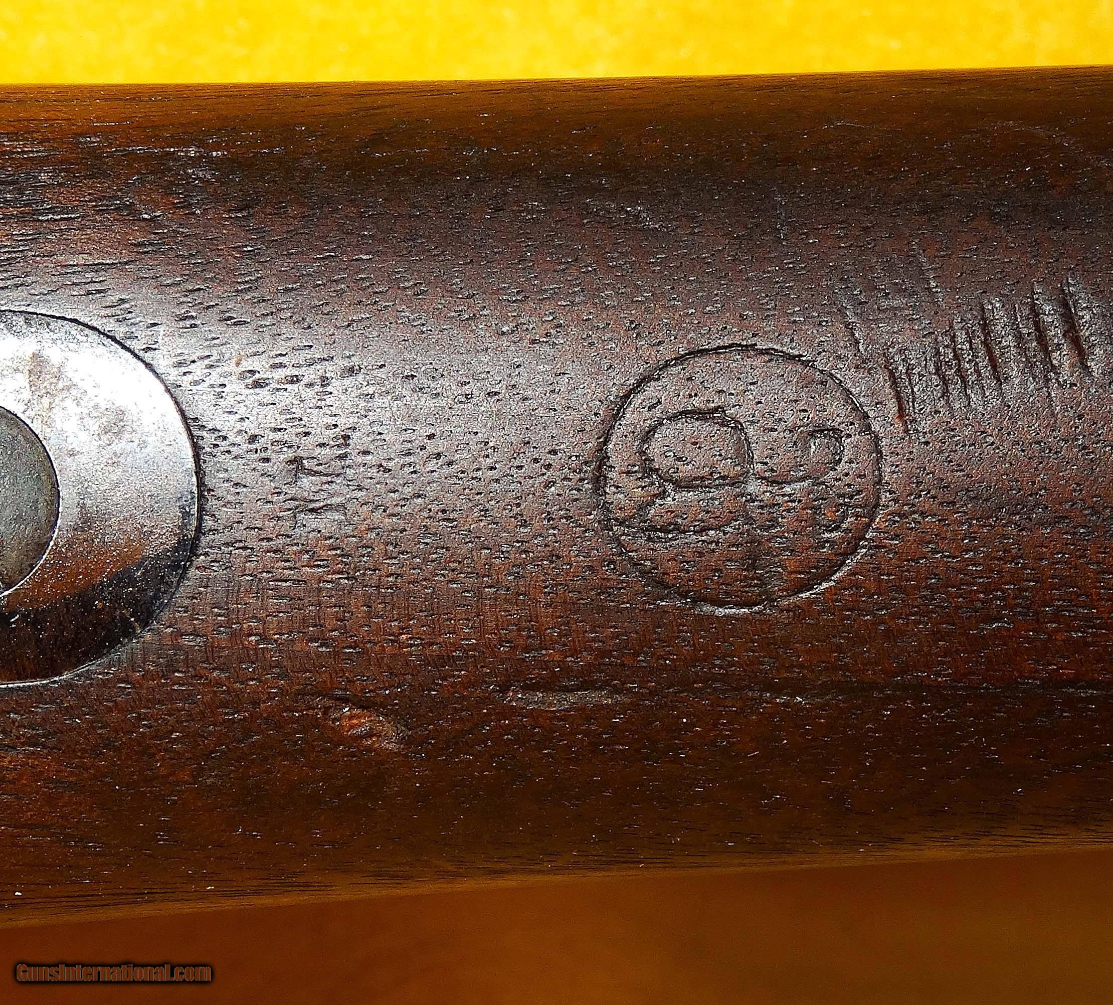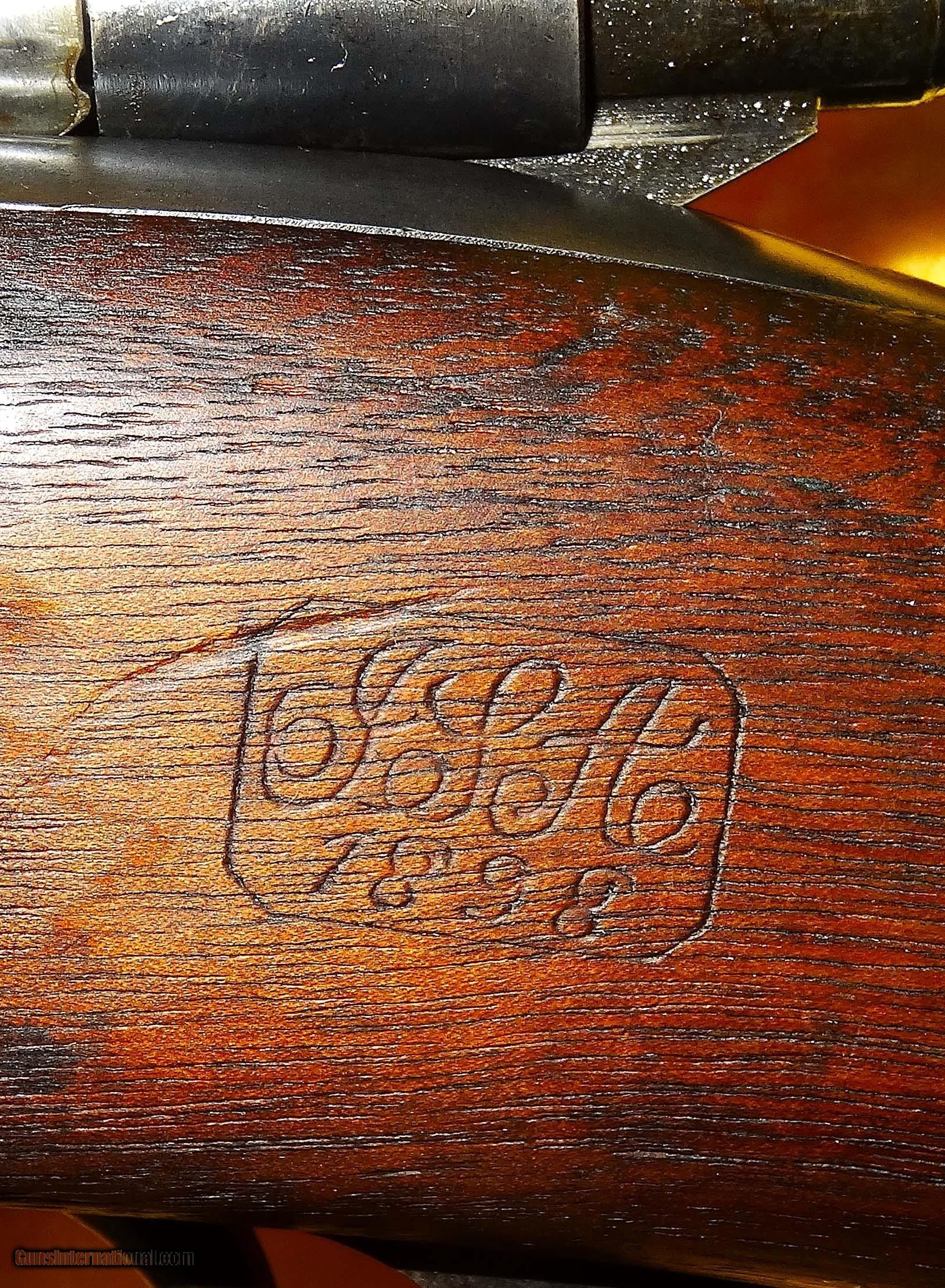 Description: U.S. SPRINGFIELD ARMORY 1898 KRAG-JORGENSEN IN .30-40 KRAG CAL., WITH 30" BARREL. COLOR BLUE. CONDITION 75%. SERIAL NUMBER 439068. U.S. SPRINGFIELD ARMORY MODEL 1898 KRAG-JORGENSEN IN .30-40 KRAG CALIBER SERIAL NUMBER 439068, THIS FIREARM HAS BEEN IN A U.S. ARSENAL FOR THE LAST 100 PLUS YEARS AND NEVER IN CIVILIAN HANDS, COMES WITH A BRIGHT SHINY MIRROR BORE, NICE (P) PROOF WITH 1898 CARTOUCHE, 1901 REAR WINDAGE LADDER SIGHT, STOCK CONDITION IS GOOD WITH SERVICE WEAR, METAL FINISH IS 80% WITH NICE PATINA, OVERALL CONDITION IS 75%, OUR STOCK # D635. SOLD |
