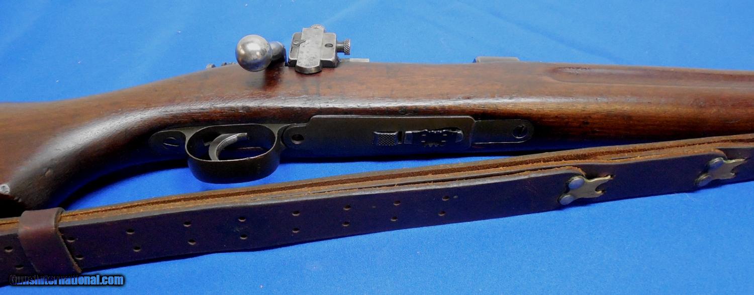 Description: SOLD /// U.S. Springfield Armory Model 1922 M1 Rifle, serial # 9271 B, cal. 22 LR, rifle has a "SA / (ordnance bomb) / 12-32" dated barrel with a bright excellent bore. The metal surfaces retain about 80% gray arsenal parkerizing. The bolt body is bright with minor light staining; it is pencil-numbered 633 on the front/rear portions of the bolt. The pistol grip walnut stock has crisp edges in the finger grooves and some nice straight contrasting grain showing; has minor handling dings and some shallow dents most likely from handling but nothing I’d consider drastic or alarming. There is a small area of white paint on the left side of the buttstock and depending how you look at it, it may be a number 8. The gun has its original front sight with its sight protector and the rear retains its correct Lyman 48 sight; the gun is not drilled and tapped. The receiver marking has been Armory-altered to reflect MI.1 and the capital letter "B" has been added to the end of the serial number. Included is a single magazine and a 1 1/4" military leather sling. Overall as described a nice example in good plus to very good condition. Inv.: # 2-1734 SOLD Curio/Relic: Yes |
