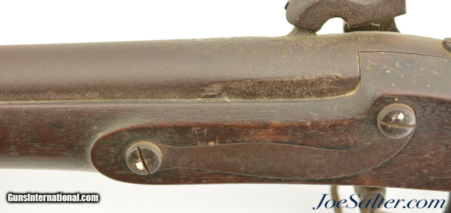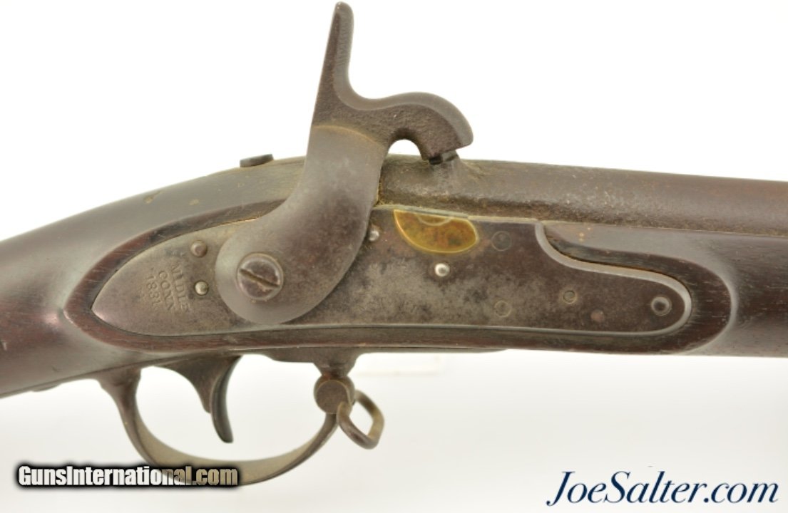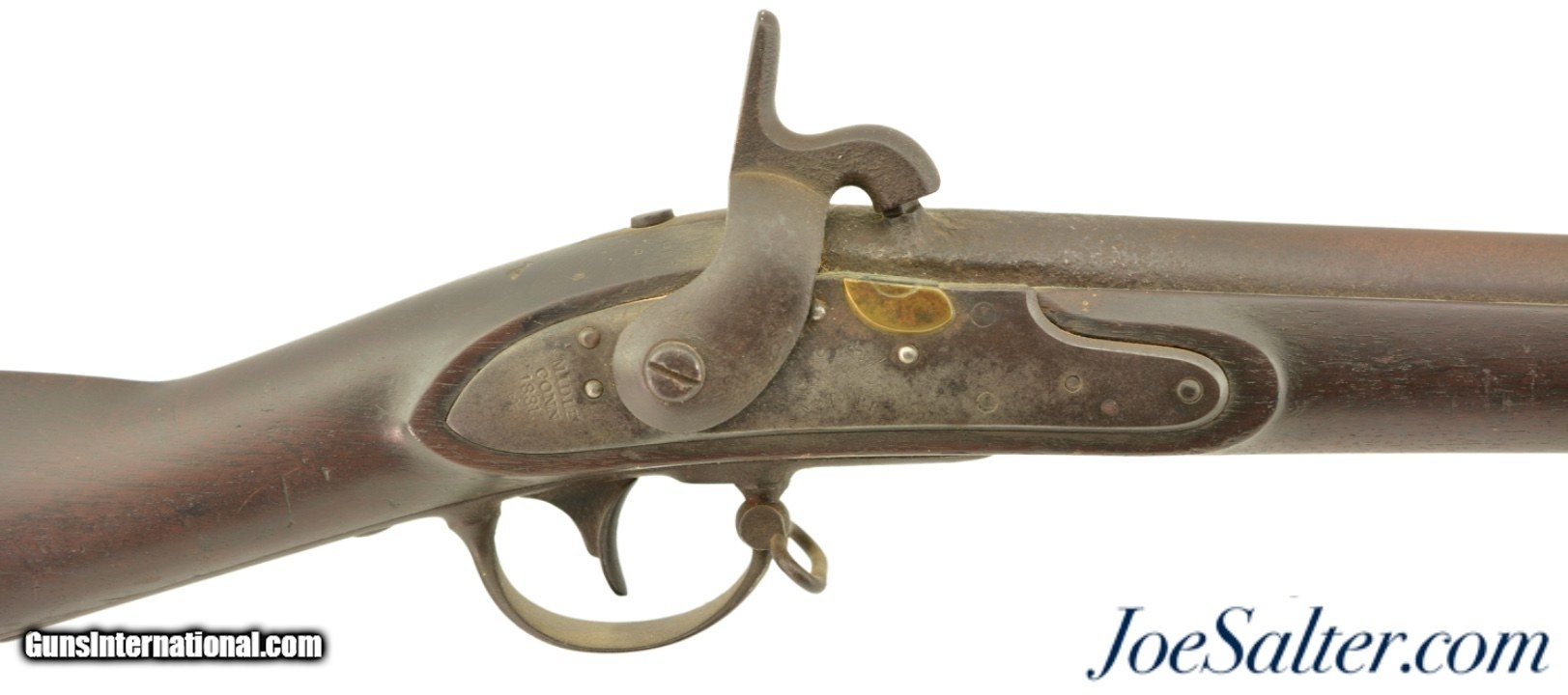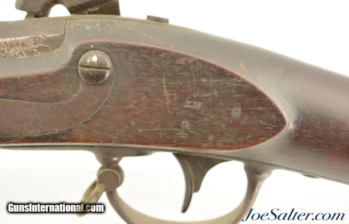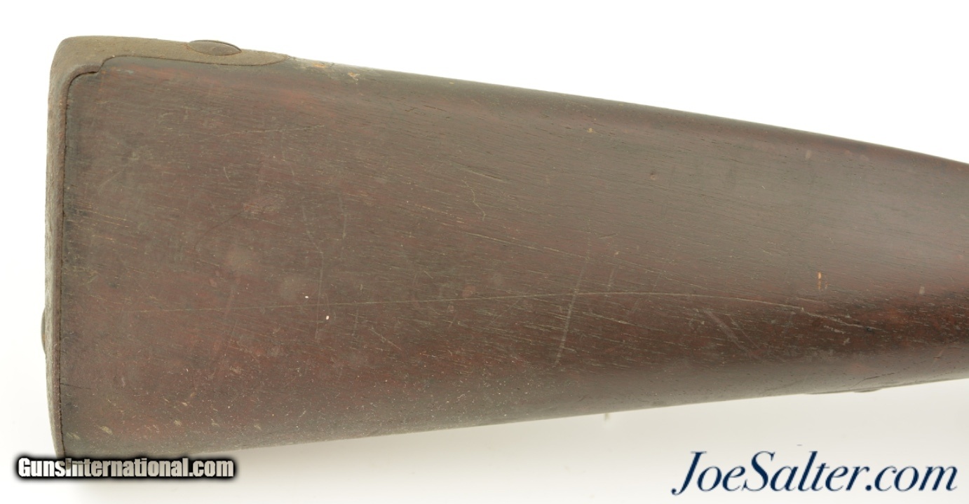 Description: NSN, .69 Caliber, 42" barrel with a good, lightly pitted bore. This musket has matching 1831 dates on the lockplate and barrel tang, with the metal having an overall dark, plum-brown patina, and mild pitting around the barrel breech. The "US / (sunburst) / N. STARR" and "MIDLTN / CONN / 1831" lockplate markings are still clear and legible, with an overall mottled gray-brown patina across the face. The musket was converted via the Cone, or Belgian method, and the remnants of the brass pan have turned to a mellow ochre patina. The walnut stock is in fine shape with scattered minor handling marks in the otherwise excellent original oil finish, with crisp "JH" (John Hawkins) inspector initials on the left side opposite the lock. The action is tight and fully functional, and the original iron ramrod is included. This is an attractive percussion conversion of a US Model 1816 Contract Musket, and would make a great addition to any collection. Antique SOLD Antique: Yes |