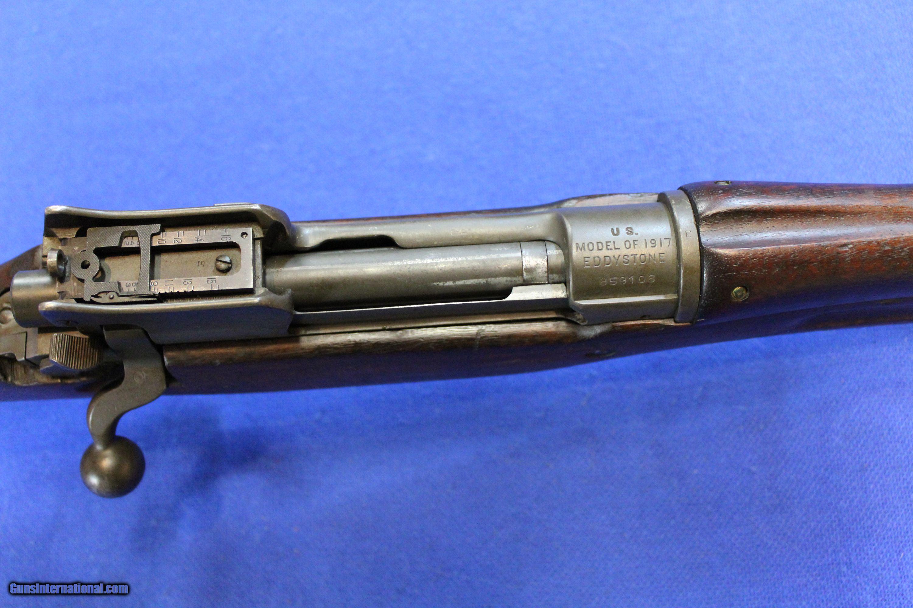 Description: Up for sale today is a US Eddystone Model of 1917 serial no. 859106 (1918 production) chambered in caliber .30-06. This excellent original Model 1917 rifle has excellent original finish on both wood and metal parts. The stock shows prominent cartouches, and the barrel has a very good bore, and a barrel date of “E 7-18.” An excellent piece of WWI history and a great shooter as well. All Pennsylvania residents please add 6% sales tax. If paying with a credit card a 4% service charge will be added to the total price of the sale. SOLD Curio/Relic: Yes Manufacturer: US Eddystone Model: 1917 Serial Number: 859106 Caliber Info: .30-'06 Condition: Excellent Original Metal Condition: Excellent Original Wood Condition: Excellent Original Bore Condition: Very Good |