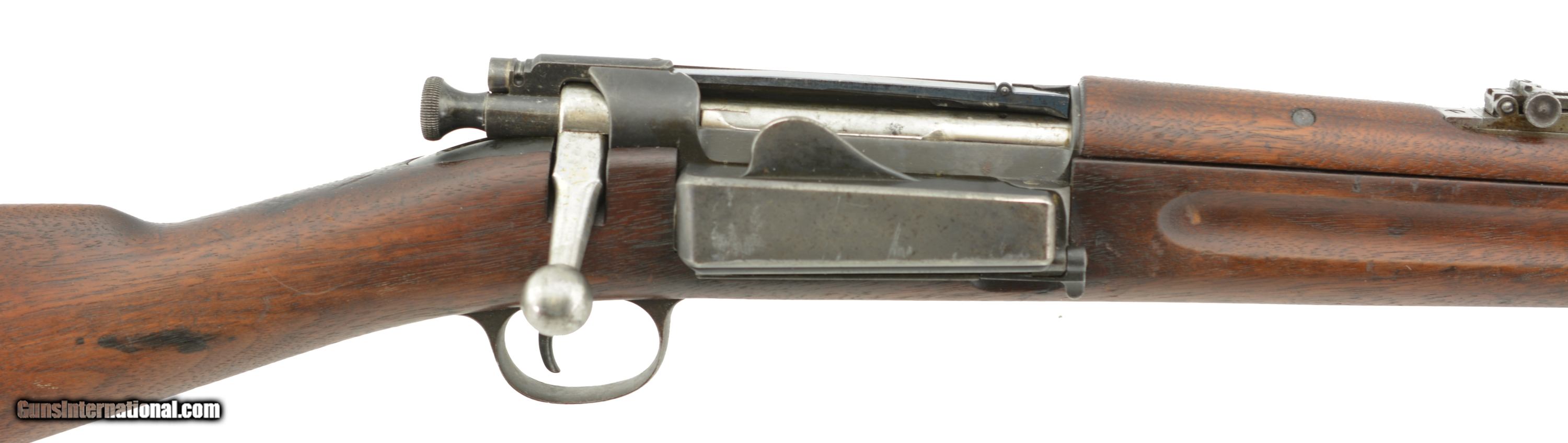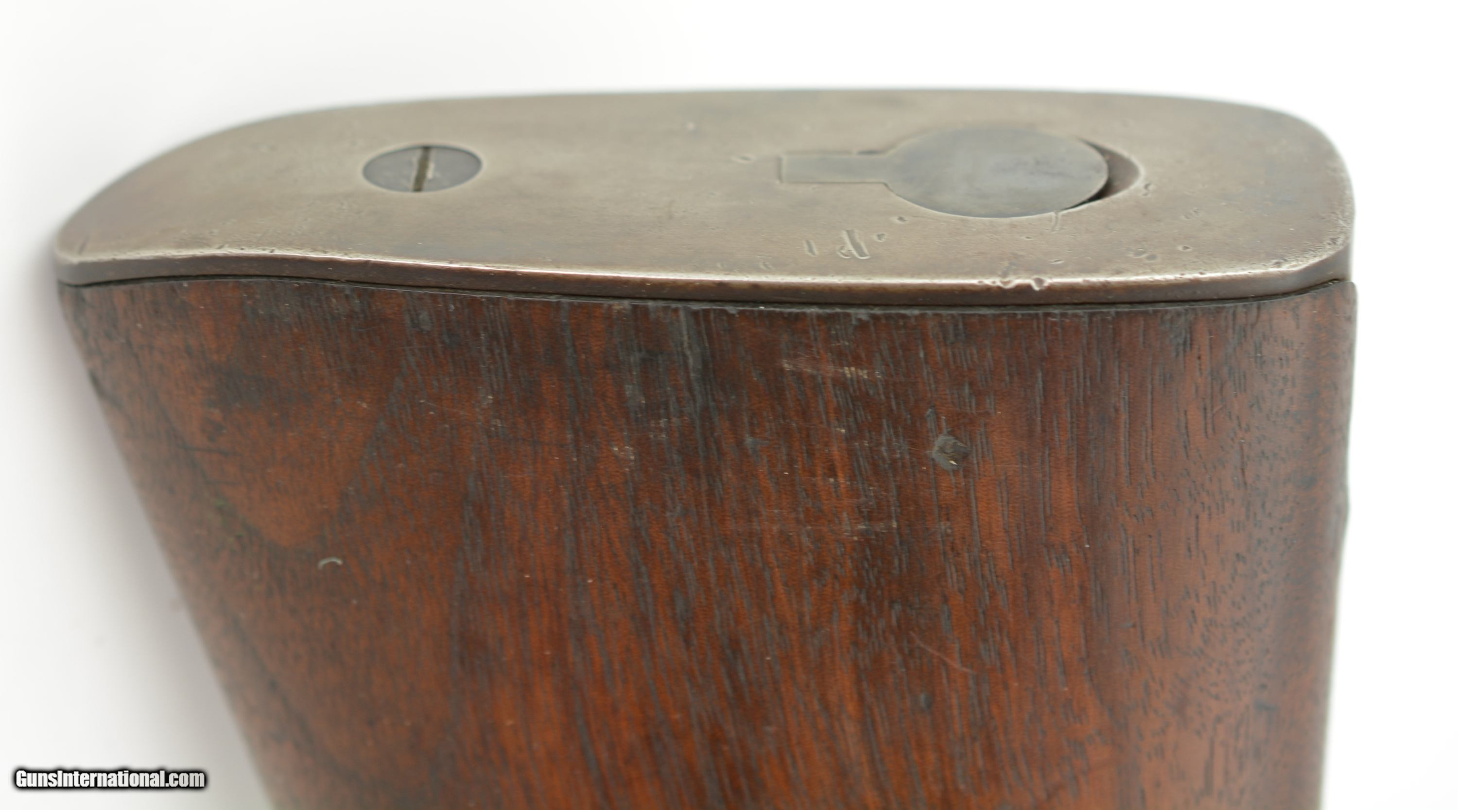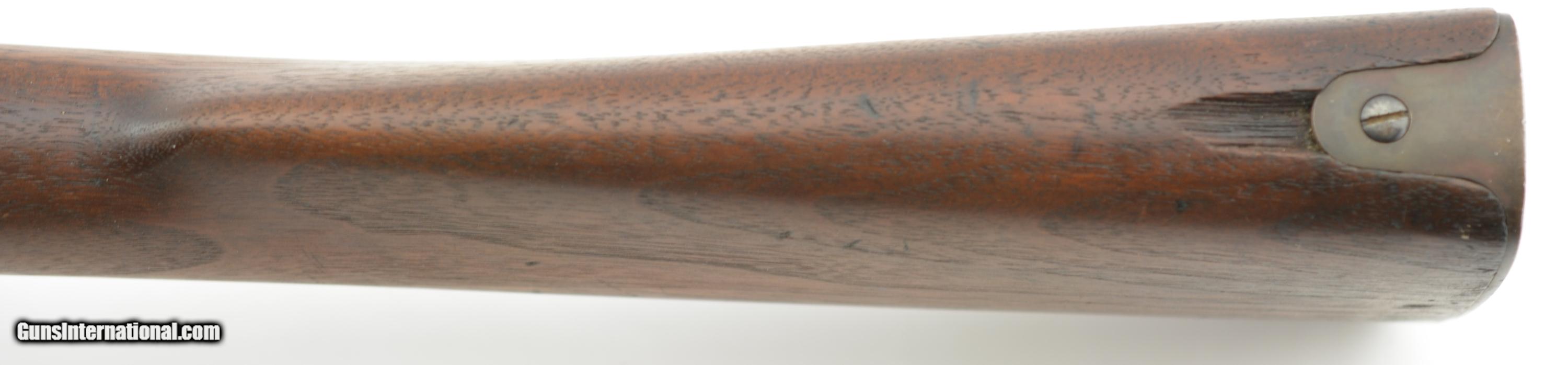 Description: Serial #353766, .30-40 Krag, 22" barrel with a very good, bright bore that has a small amount of freckling within the grooves at the breech and one erosion toward the muzzle. This carbine retains 85-90% of the original blue finish on the barrel, band, and buttplate, with minor silvering at the muzzle, magazine cover, trigger guard bow, and sheet metal front sight protector. The balance of the metal has a uniform mottled gray patina with some hints of muted color case-hardening still visible on the safety. The extractor retains 95-97% of its original brilliant niter blue finish and the bolt, finished armory bright, has mild freckling while retaining much of the original blue on the shroud. The walnut stock and handguard are likewise in fine condition with small handling marks and minor scuffs scattered about the original oil finish (including a fairly large surface chip at the buttplate tang). The left side of the wrist has a crisp "JSA/1901" cartouche and "P" proof on the underside. This is a splendid '99 Krag carbine in fine overall condition with lots of the original finish remaining. FFL or C&R SOLD Curio/Relic: Yes Manufacturer: Spfld Model: Krag Serial Number: 353766 Caliber Info: .30-40 Gauge Info: .30-40 |
