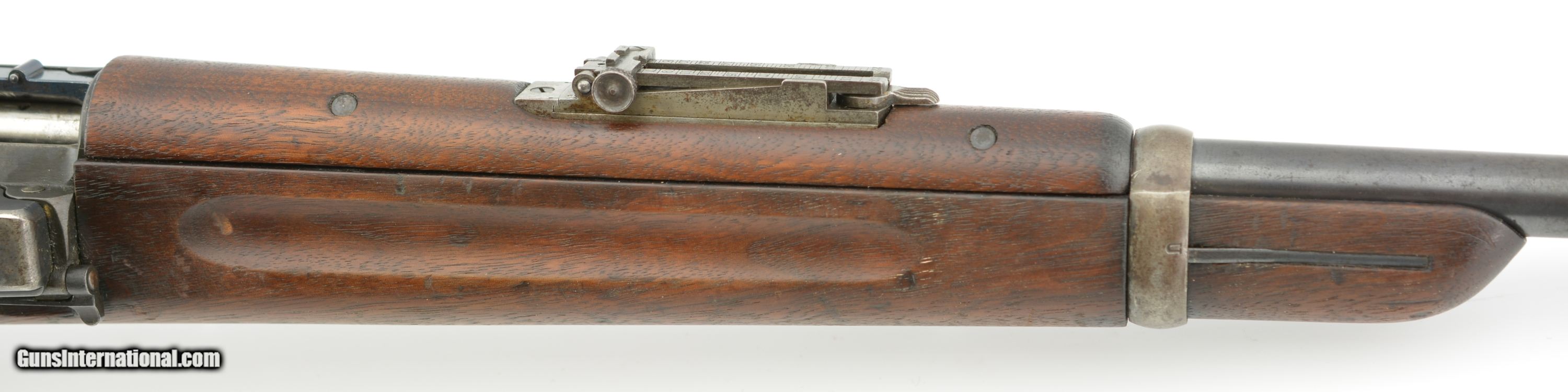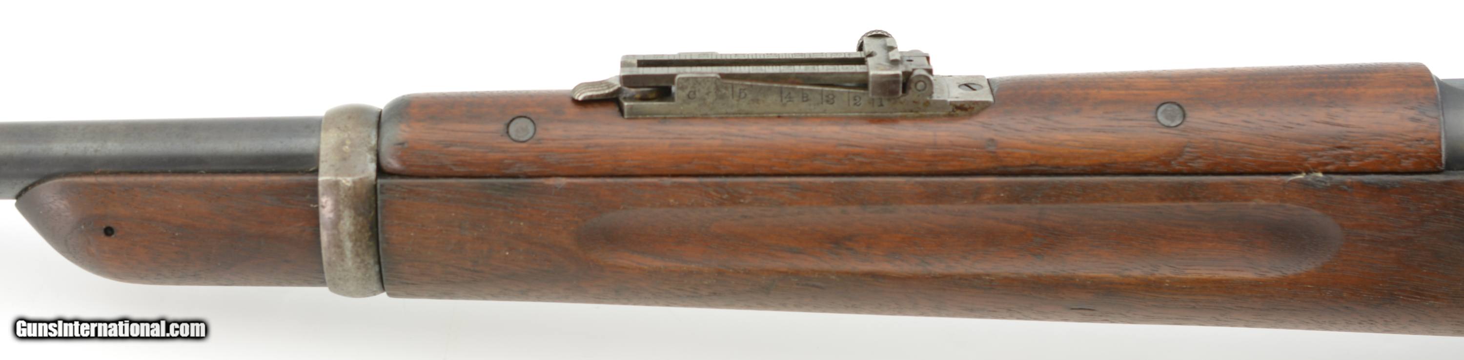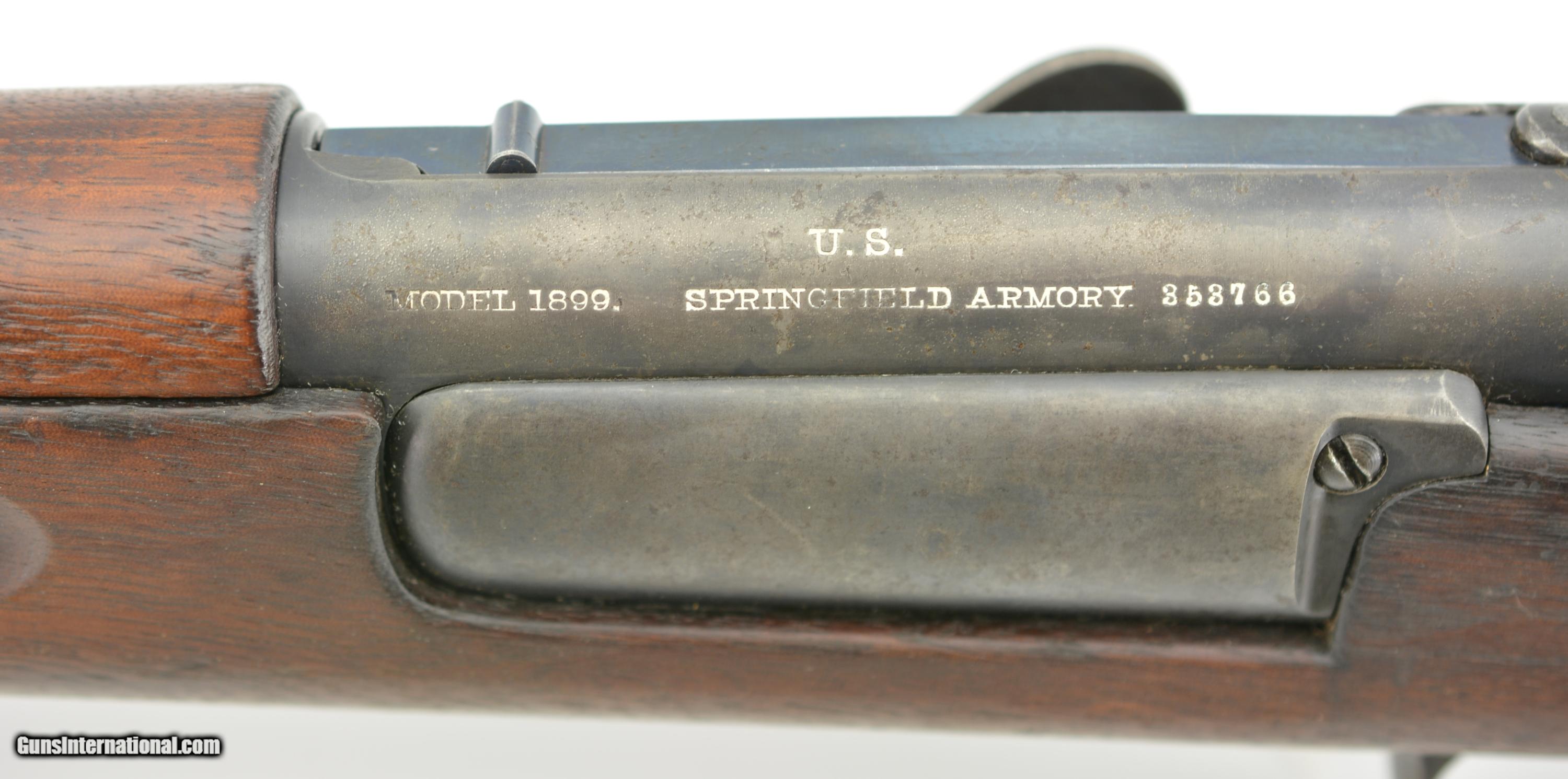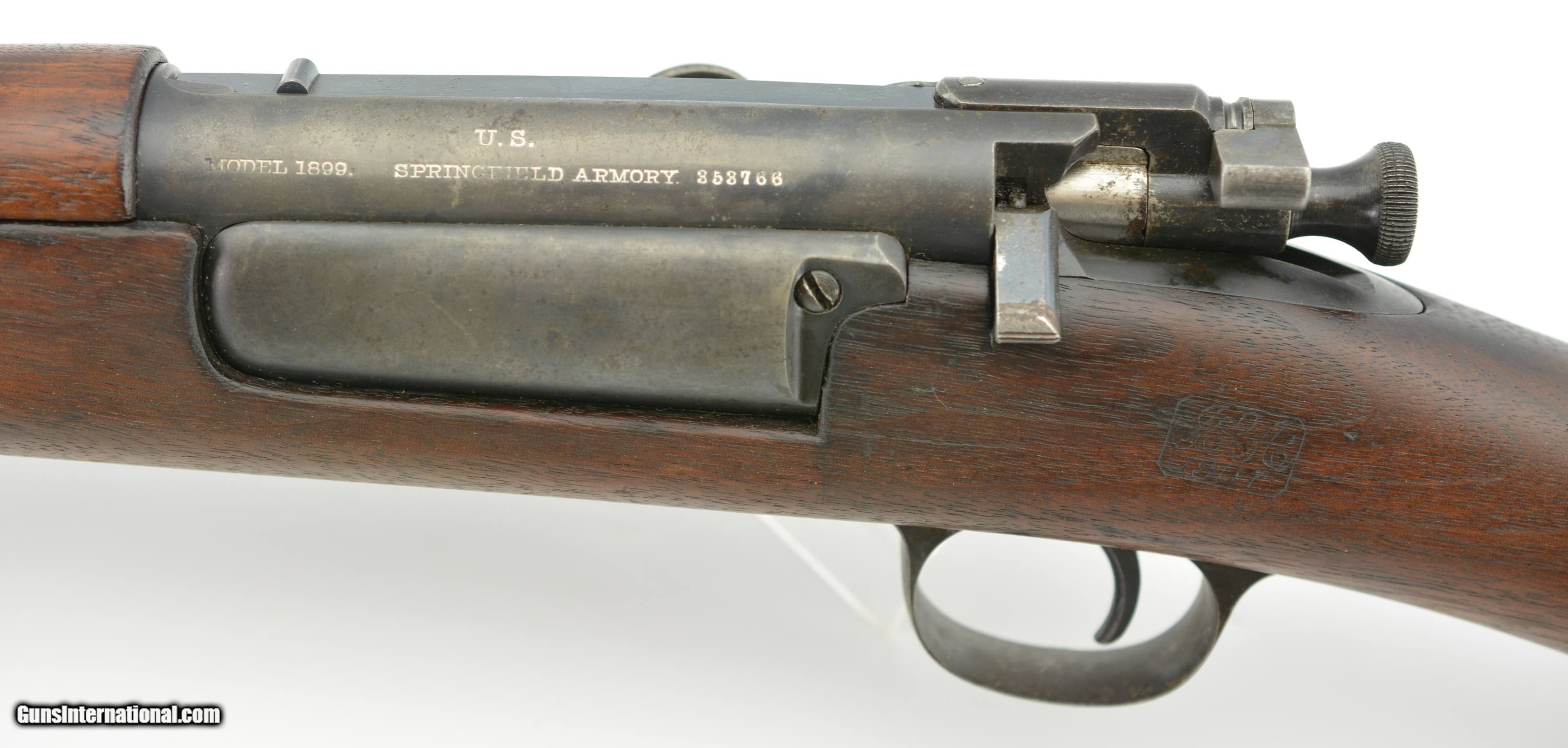 Description: Serial #353766, .30-40 Krag, 22" barrel with a very good, bright bore that has a small amount of freckling within the grooves at the breech and one erosion toward the muzzle. This carbine retains 85-90% of the original blue finish on the barrel, band, and buttplate, with minor silvering at the muzzle, magazine cover, trigger guard bow, and sheet metal front sight protector. The balance of the metal has a uniform mottled gray patina with some hints of muted color case-hardening still visible on the safety. The extractor retains 95-97% of its original brilliant niter blue finish and the bolt, finished armory bright, has mild freckling while retaining much of the original blue on the shroud. The walnut stock and handguard are likewise in fine condition with small handling marks and minor scuffs scattered about the original oil finish (including a fairly large surface chip at the buttplate tang). The left side of the wrist has a crisp "JSA/1901" cartouche and "P" proof on the underside. This is a splendid '99 Krag carbine in fine overall condition with lots of the original finish remaining. FFL or C&R SOLD Curio/Relic: Yes Manufacturer: Spfld Model: Krag Serial Number: 353766 Caliber Info: .30-40 Gauge Info: .30-40 |