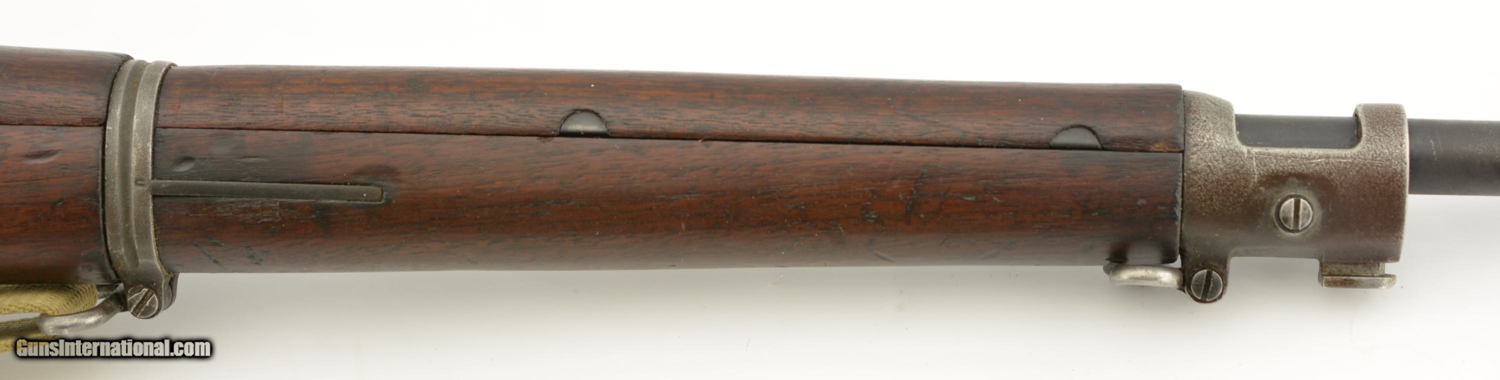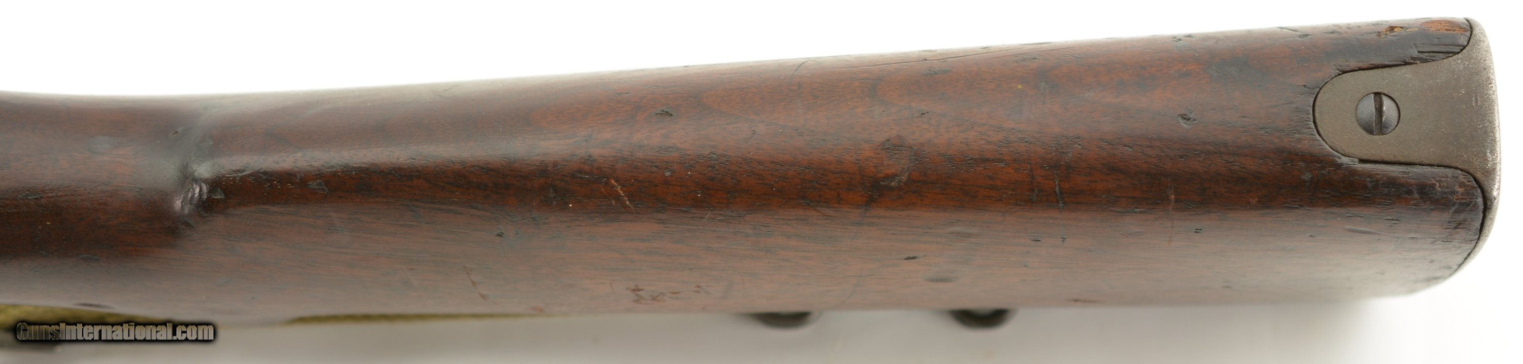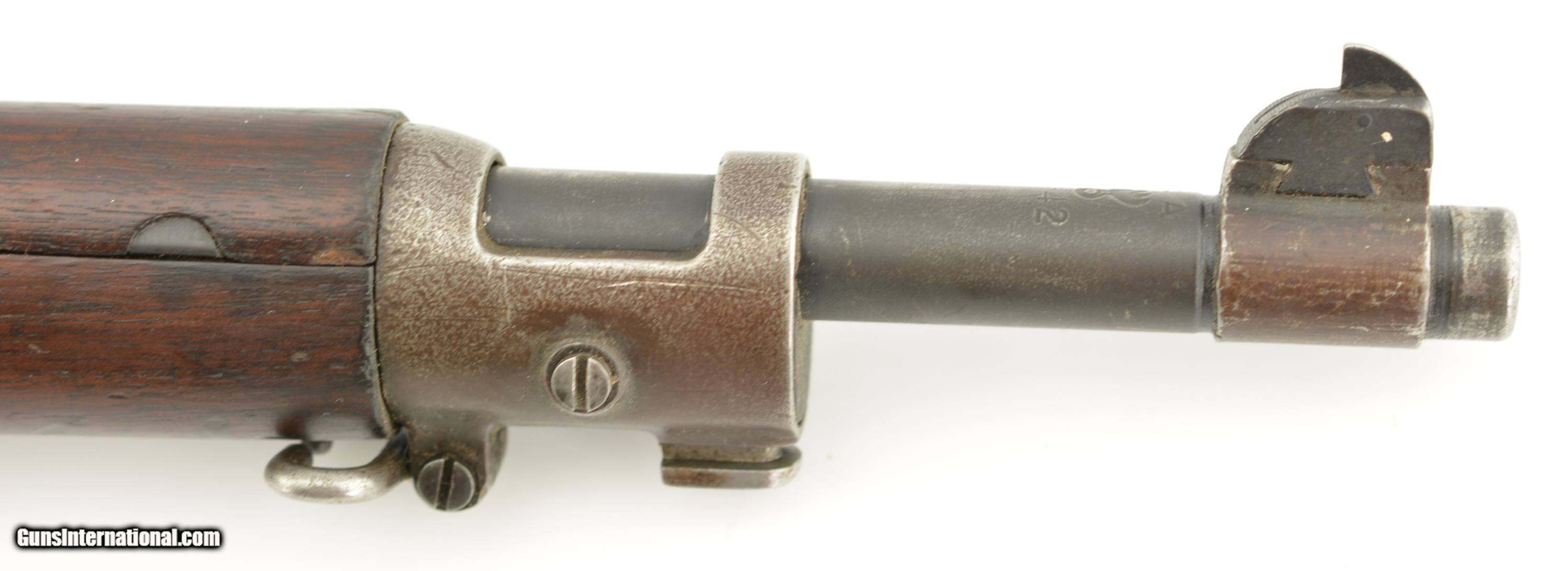 Description: Serial #11560, .30-06, 24" barrel with a very good bore that has mild freckling within the grooves. This rifle (with a first year of production, 1904-made receiver) has an "SA / 8-42" dated WW2 barrel. The barrel has 70-75% of the original parkerized finish remaining, while the receiver has a commensurate amount of Du-Lite blue remaining. The single heat treated, straight-handled bolt has a matching finish with some silvering along the edges and bearing surfaces, and fading on the handle. The unmarked, Type C walnut stock is in about good condition, with numerous small handling marks and blemishes throughout, as well as a series of peen marks intentionally added to the knurled steel buttplate. A WW2 khaki M1 sling is fitted. This is an interesting rifle, with a very early Rock Island '03 receiver, and would make a neat addition to a collection of American military longarms. FFL or C&R SOLD Curio/Relic: Yes Manufacturer: Rock Island Model: 1903 Serial Number: 11560 Caliber Info: .30-06 Gauge Info: .30-06 |