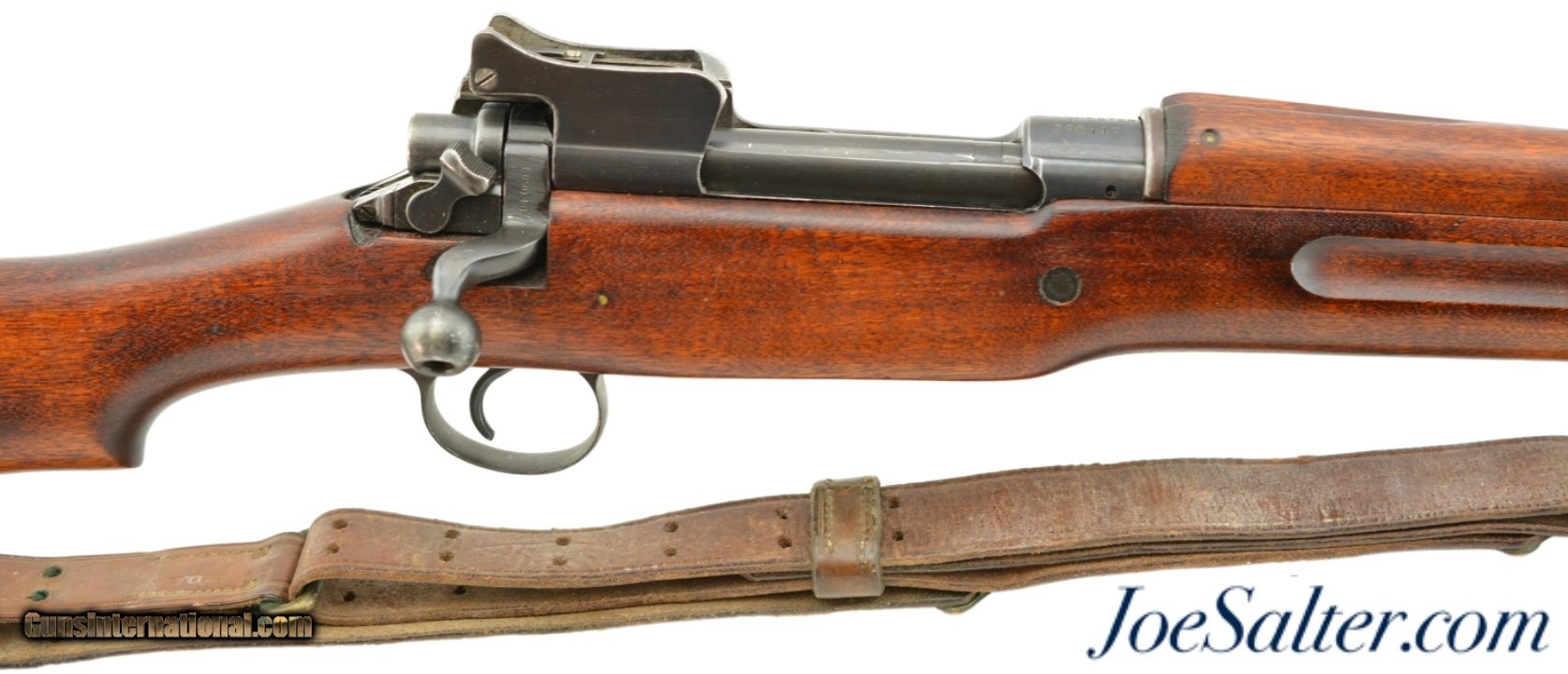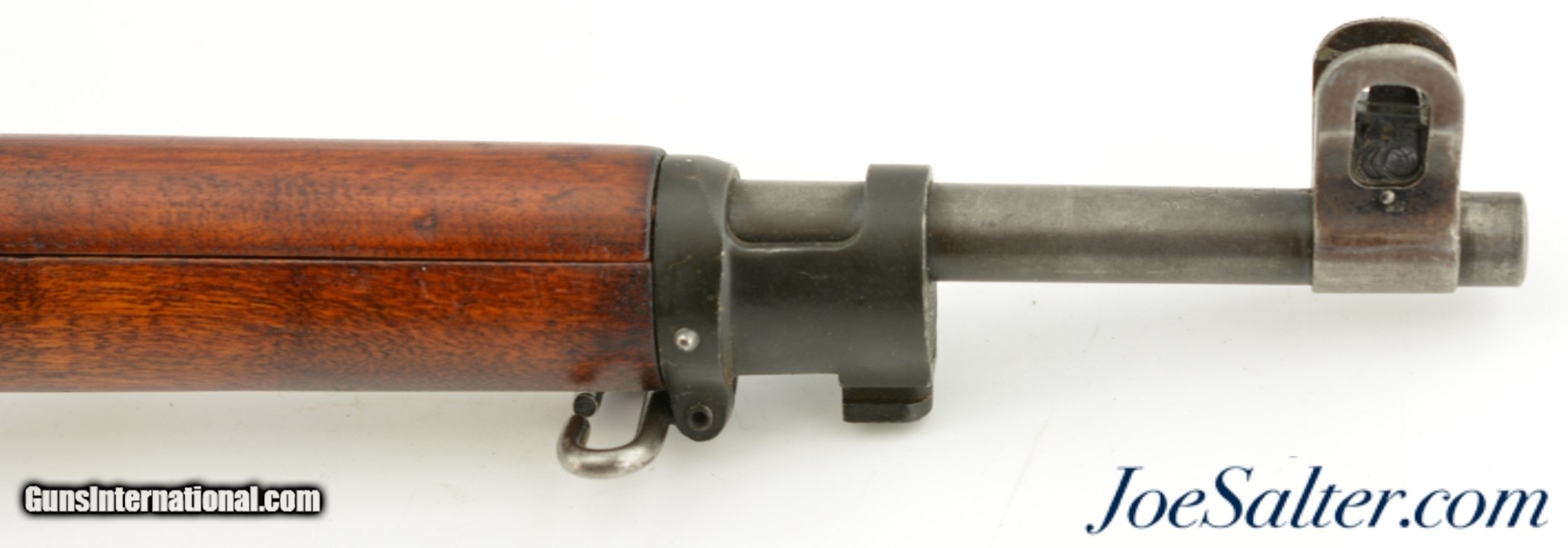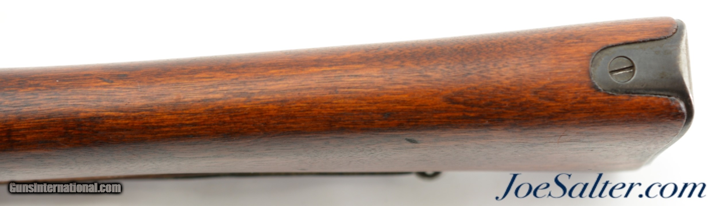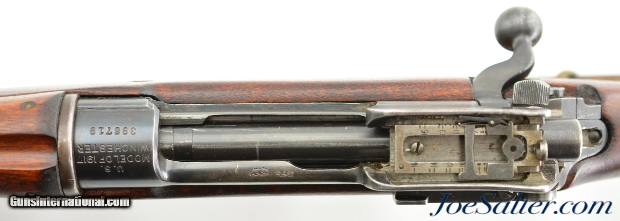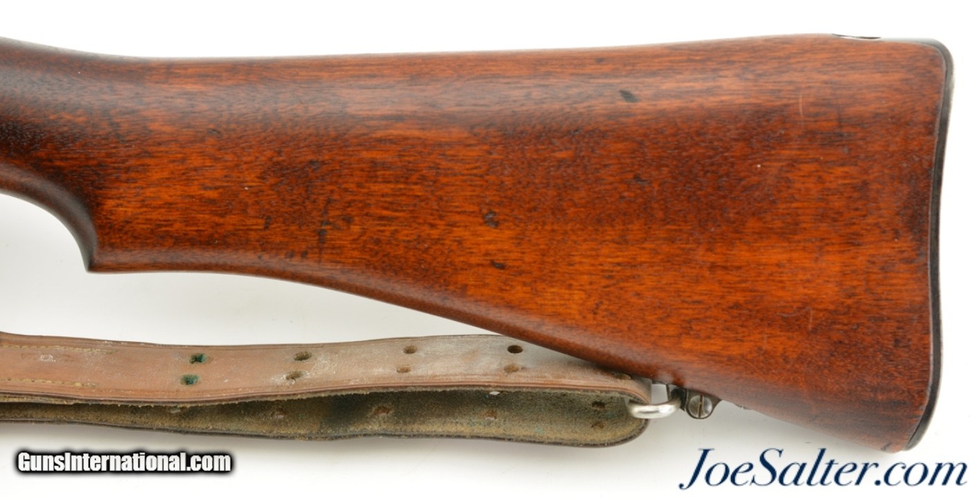 Description: Serial #396719, .30-06, 25" barrel with an excellent, bright bore. This is a handsome rifle that has an 8-18 dated, "W" marked barrel and correct "W" marked parts. The metal retains 85-90% of the original brushed blue finish with gray fading at the muzzle, along the high and exposed edges, as well as on the bearing surface of the bolt. The bolt was numbered at the base of the handle at some point, possibly by British armorers during WW2, but does not match the rifle serial number (469046), and there is a small import stamp on the underside of the barrel just ahead of the forend. The "W" marked walnut stock and handguard are in fine shape with only minor handling marks scattered about the armory refreshed military oil finish. The rifle has a 1918 dated, Model 1917 leather sling installed, and also has a correct metal oiler in the stock compartment. This is a fine example of a desirable Winchester-made Model 1917, that was never parkerized for WW2. FFL or C&R SOLD Curio/Relic: Yes |