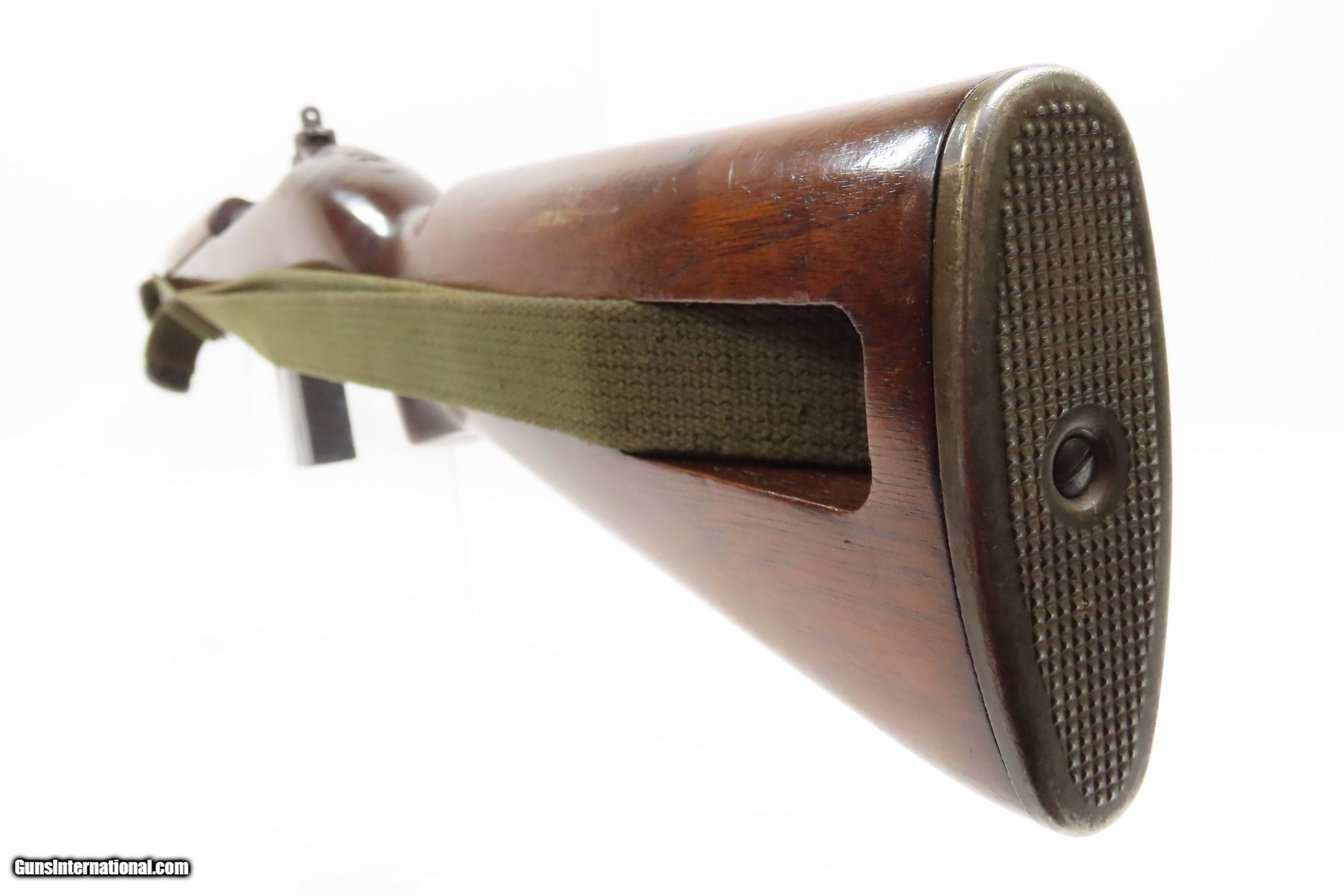 Description: WORLD WAR II Era U.S. UNDERWOOD M1 Carbine .30 SUPPORT TROOP Rifle WWII C&R CROSSED CANNONS Cartouche w/CANVASSLING Here we present a C&R U.S. Underwood M1 Carbine Semi-Automatic Rifle, manufactured in the second block between July of 1943 and March of 1944 at the Underwood Typewriter Company of New York City. This .30 caliber semi-automatic rifle was first used by the United States Armed Forces on October 22, 1941. Of the 6,110,730 carbines made of all types built during the war, Underwood manufactured 9% of the total between 1942 and 1944. Prior to World War II, U.S. Army Ordnance received many reports that the full-size M1 Garand was too heavy and cumbersome for most support troops, such as mortarmen and radiomen to carry. During prewar and early war field exercises, it was found that the M1 Garand impeded these soldiers' mobility, as a slung rifle would frequently catch on brush, bang the helmet and tilt it over the eyes. Many soldiers found the rifle slid off the shoulder unless slung diagonally across the back, where it prevented the wearing of standard field packs and haversacks. Additionally, Germany's use of glider-borne and paratroop forces to launch surprise ‘blitzkrieg’ attacks behind the front lines generated a request for a new compact infantry weapon to equip support troops. The M1 carbine was also one of the most cost-effective weapons used by the United States military during World War II. At the beginning of World War II, the average production cost for an M1 carbine was approximately $45, about half the cost of an M1 rifle at approximately $85 and about a fifth of the cost of a Thompson submachine gun at approximately $225. The .30 Caliber carbine ammunition was also far cheaper to produce than the standard .30-06 ammunition; used fewer resources, was smaller, lighter, faster and easier to make. These were major factors in the United States military decision to adopt the M1 carbine, especially when considering the large numbers of weapons and ammunition manufactured and transported by the United States during World War II. This example has many early features! The overall condition is good. This example has been refinished. Strong action. Solid stock with minimal handling evidence. “circle/P” is stamped on the pistol grip. Crossed cannons on the right buttstock. “HI” is marked in the sling well. The bore has dimmed and maintains serviceable rifling. Good canvas sling. The underwood markings on the barrel have worn and show as “------ood”. Other markings are legible. Replacement handguard. Own the original! This firearm is classified as a Curio & Relic. Barrel is 18 inches. Caliber: .30 Carbine Overall condition as seen in photos. Very Fast. Very Safe. FREE SHIPPING. Will need to be sent to your local FFL or C&R licensee. This firearm is classified as a Curio & Relic. Guaranteed AUTHENTIC & Includes CERTIFICATE OF AUTHENTICITY. ancestryguns $2450 #250733 Curio/Relic: Yes Price: $2,450.00 Buy Now Pay with