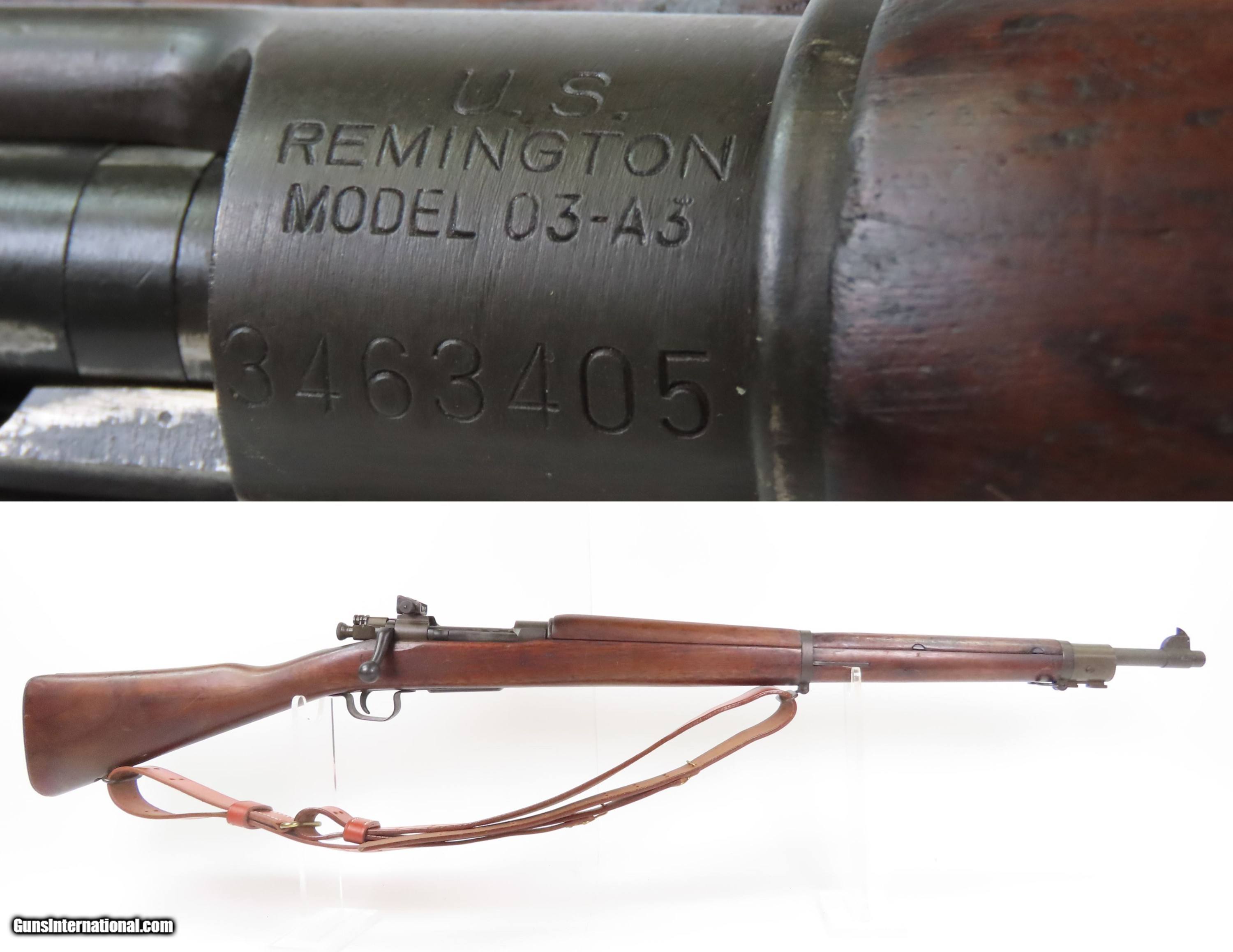 WORLD WAR II U.S. Remington M1903A3 Bolt Action C&R .30-06 Rifle with SLING Made in 1943 “R.A. / FLAMING BOMB / 2-43” Barrel