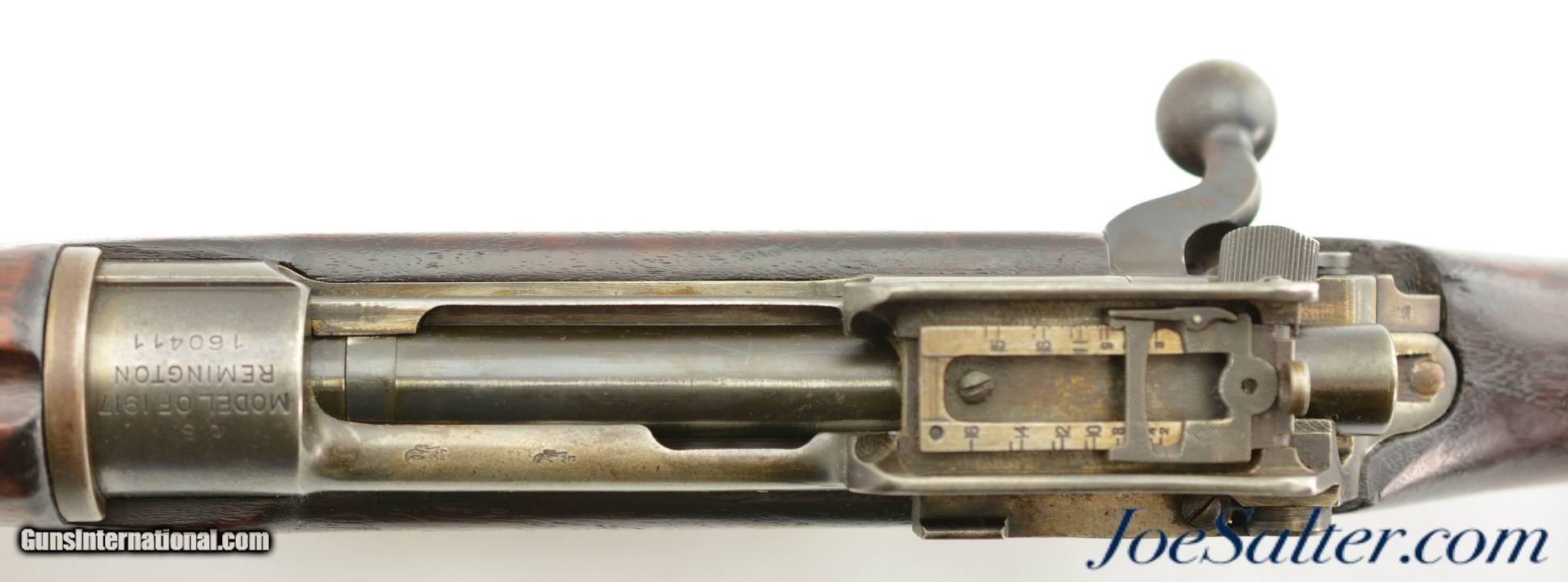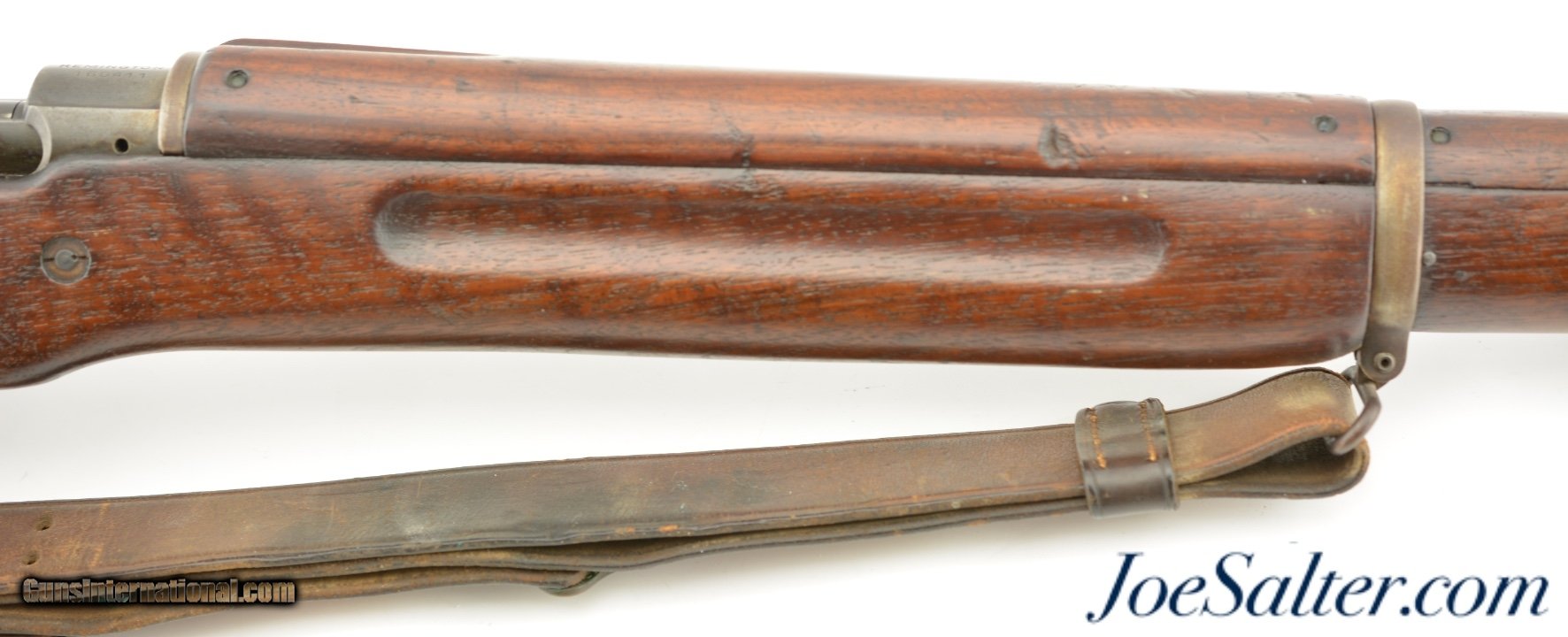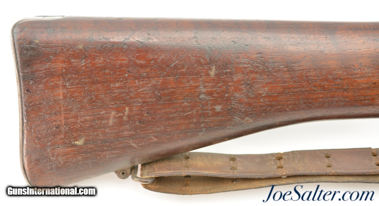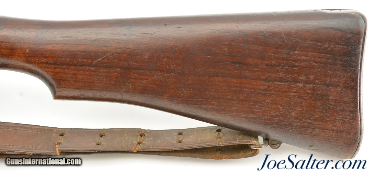 Description: Serial #160411, .30-06, 26" barrel with a very good, bright bore that has some minor pitting along the lands. This is a handsome rifle that has a 2-18 dated, "R" marked barrel and an "E" marked, Eddystone bolt. The metal has retained 75-80% of the original brushed blue finish, with silvering at the muzzle, and gray fading along the raised edges and contact points. The markings are crisp and clear, and the "R" marked stock and handguard are in fine condition, with minor handling marks and blemishes scattered about the added varnish finish. Additionally, the rifle is fitted with a Model 1907 type leather sling that is in good, serviceable condition, with crazing and minor flaking along the edges. A period US nickel steel oiler is included in the stock compartment. This is a nice example of a Model 1917 Enfield, and is in very good condition overall. FFL or C&R; SOLD Curio/Relic: Yes |